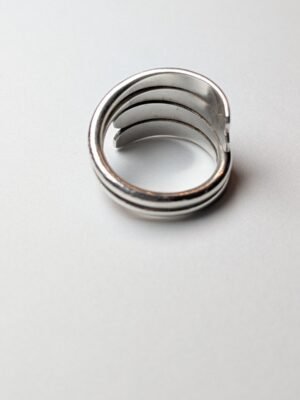 The sleek silver colour and wave pattern make it a versatile accessory that can be worn on its own or paired with other rings for a charming look.