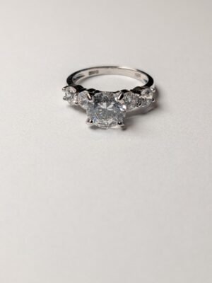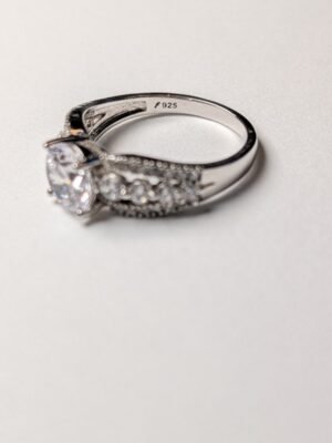 The round cubic zirconia stone set in 925 sterling silver creates a classic and elegant look. There is one small cz stone missing on the outter edge, please see pictures.