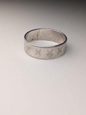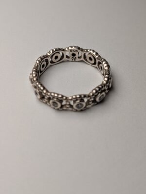 With a metal purity of 925 sterling silver, the ring is hallmarked and features a band style design.