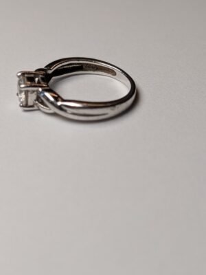 The ring is hallmarked, features beautiful clear cubic zirconia stones set in sterling silver, and has a ring size of O 1/2.