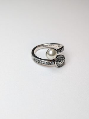The Pandora Sterling Silver Luminous Glow White Crystal Pearl Clear CZ Ring is a stunning piece of fine jewellery designed for women.