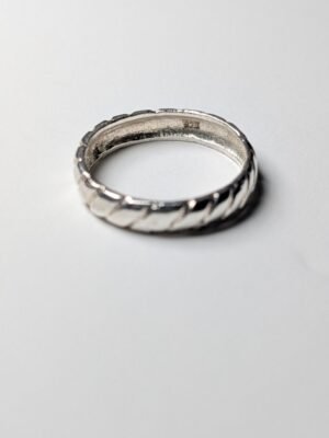 With a metal purity of 925 sterling silver, the ring is hallmarked and features a band style design.