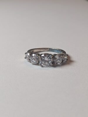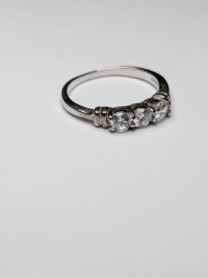 This vintage sterling silver CZ 3 stone ring is a beautiful piece of fine jewellery. The ring is made of 925 silver with 3 CZ gemstones, and it is hallmarked for authenticity.