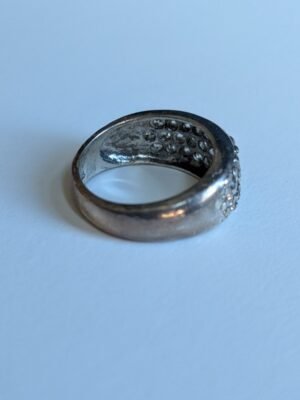 This vintage sterling silver ring features a clear gemstone set in a classic design, perfect for adding a touch of elegance to any outfit.