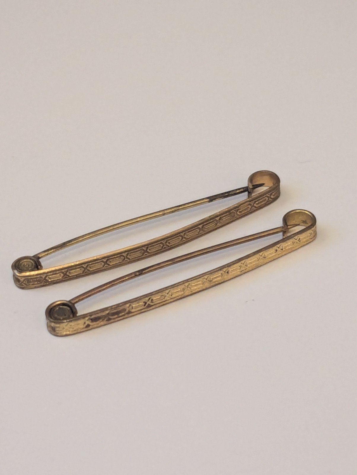 Antique Pair Of Edwardian/Victorian Gold Tone Pin Brooches