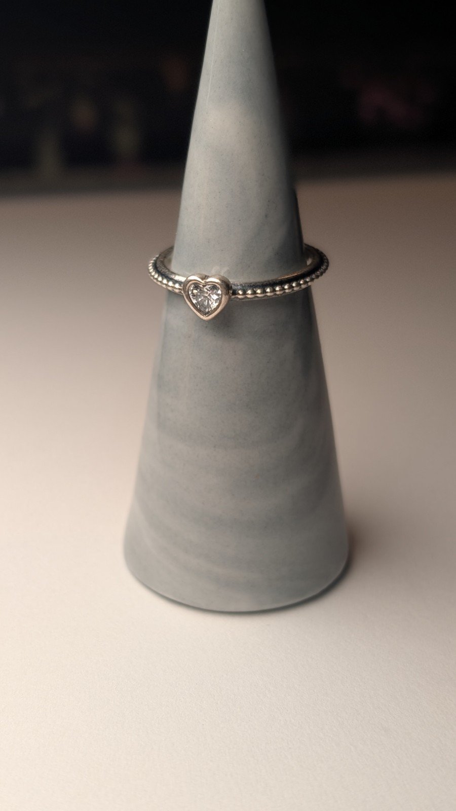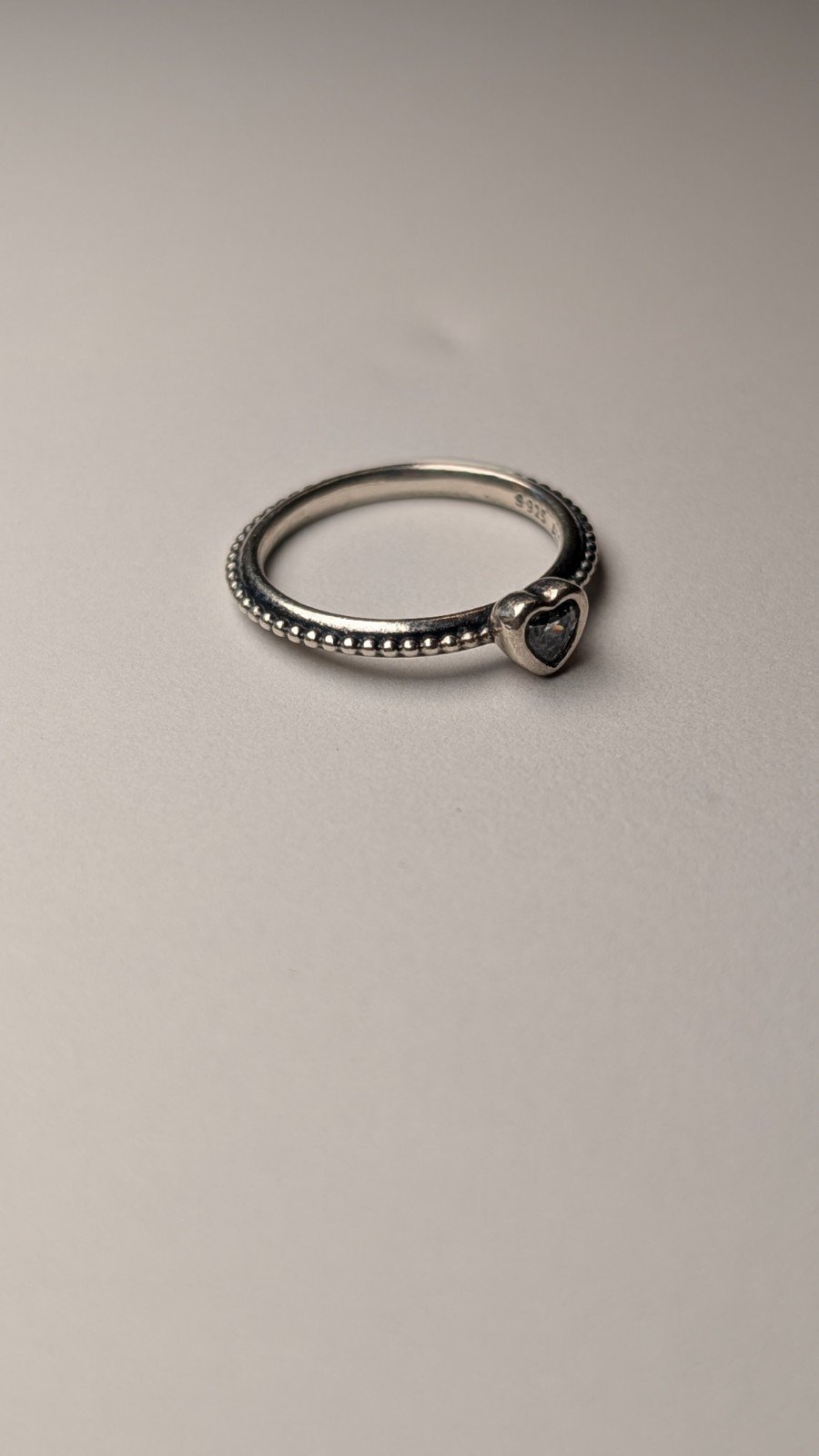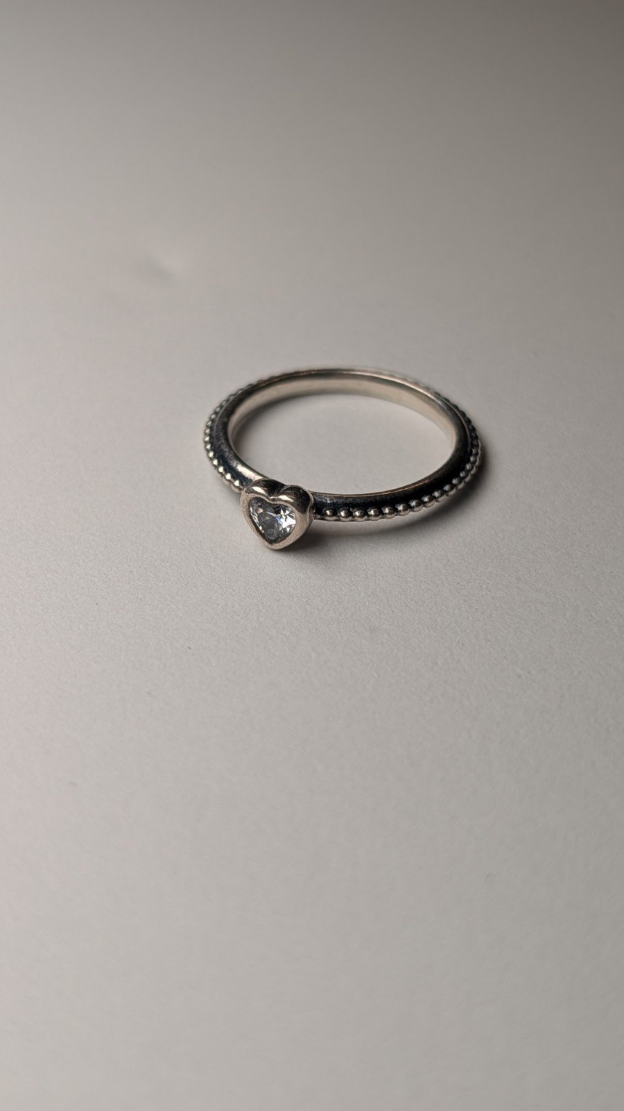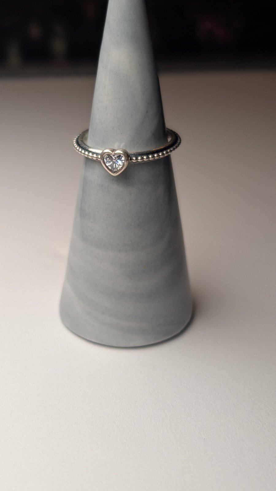 This Genuine Pandora Sterling Silver Elevated Clear Heart Ring in size L 3/4 is a stunning piece of jewellery.