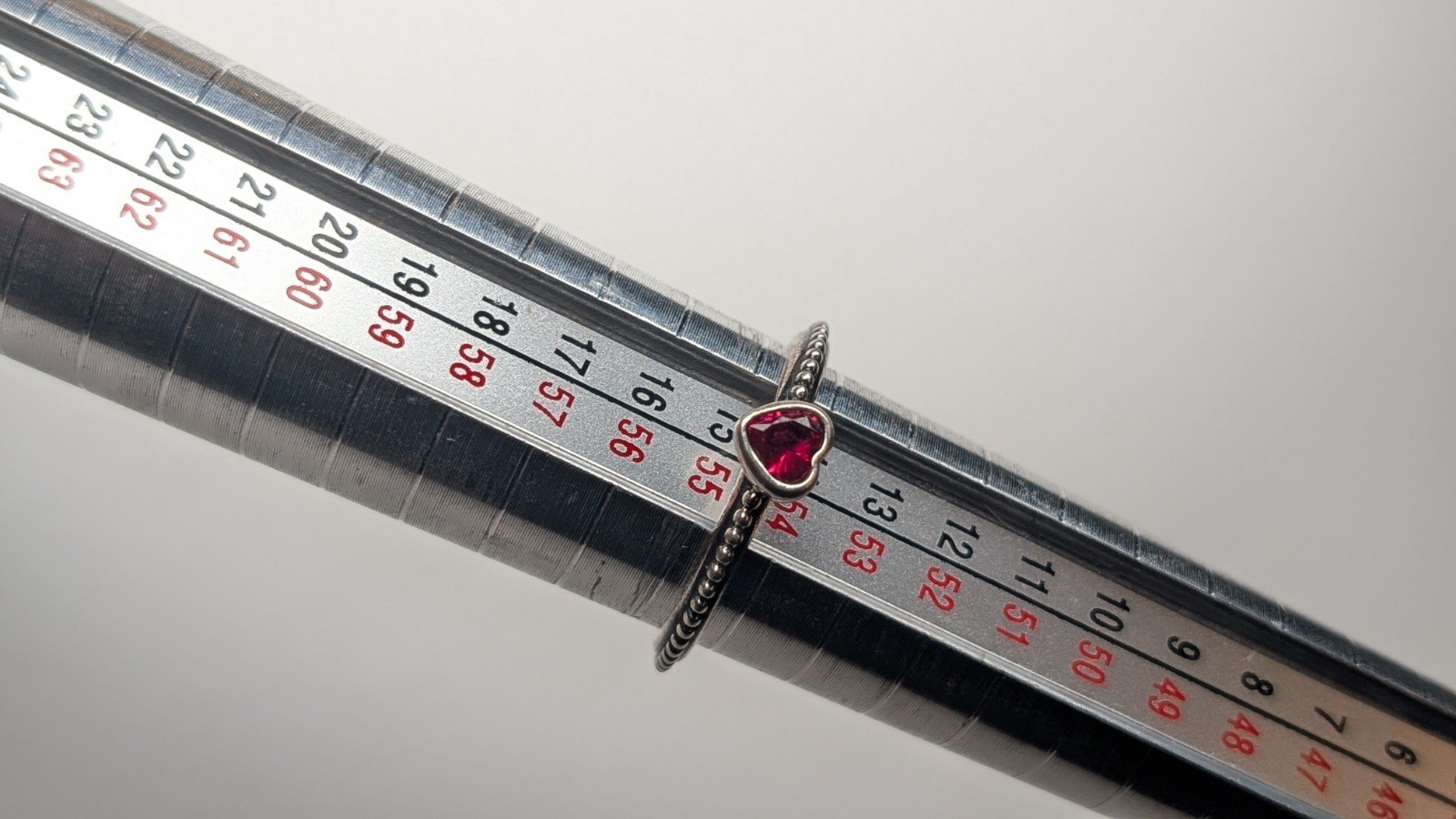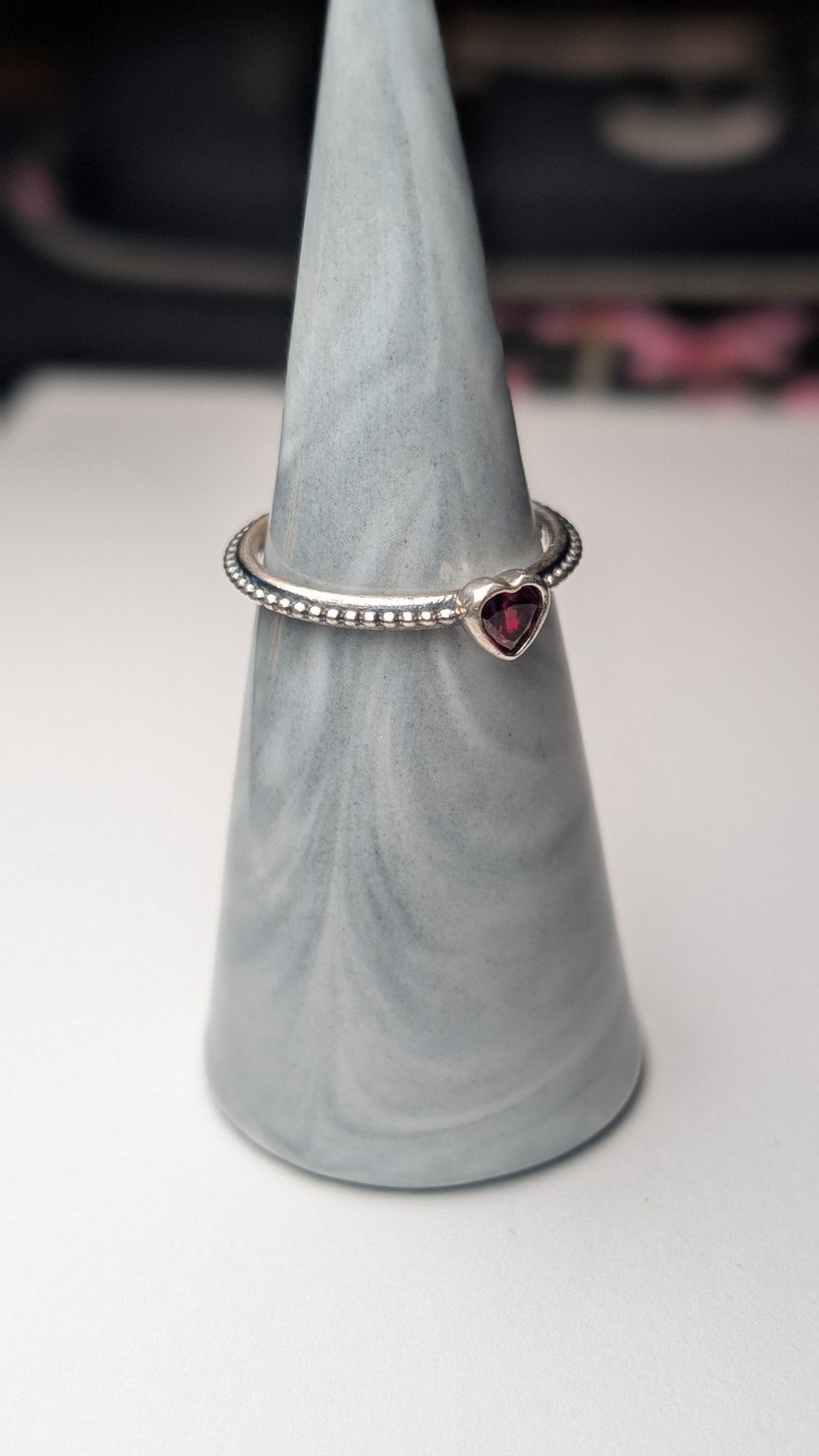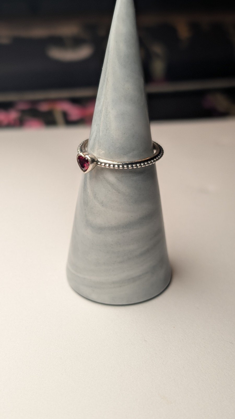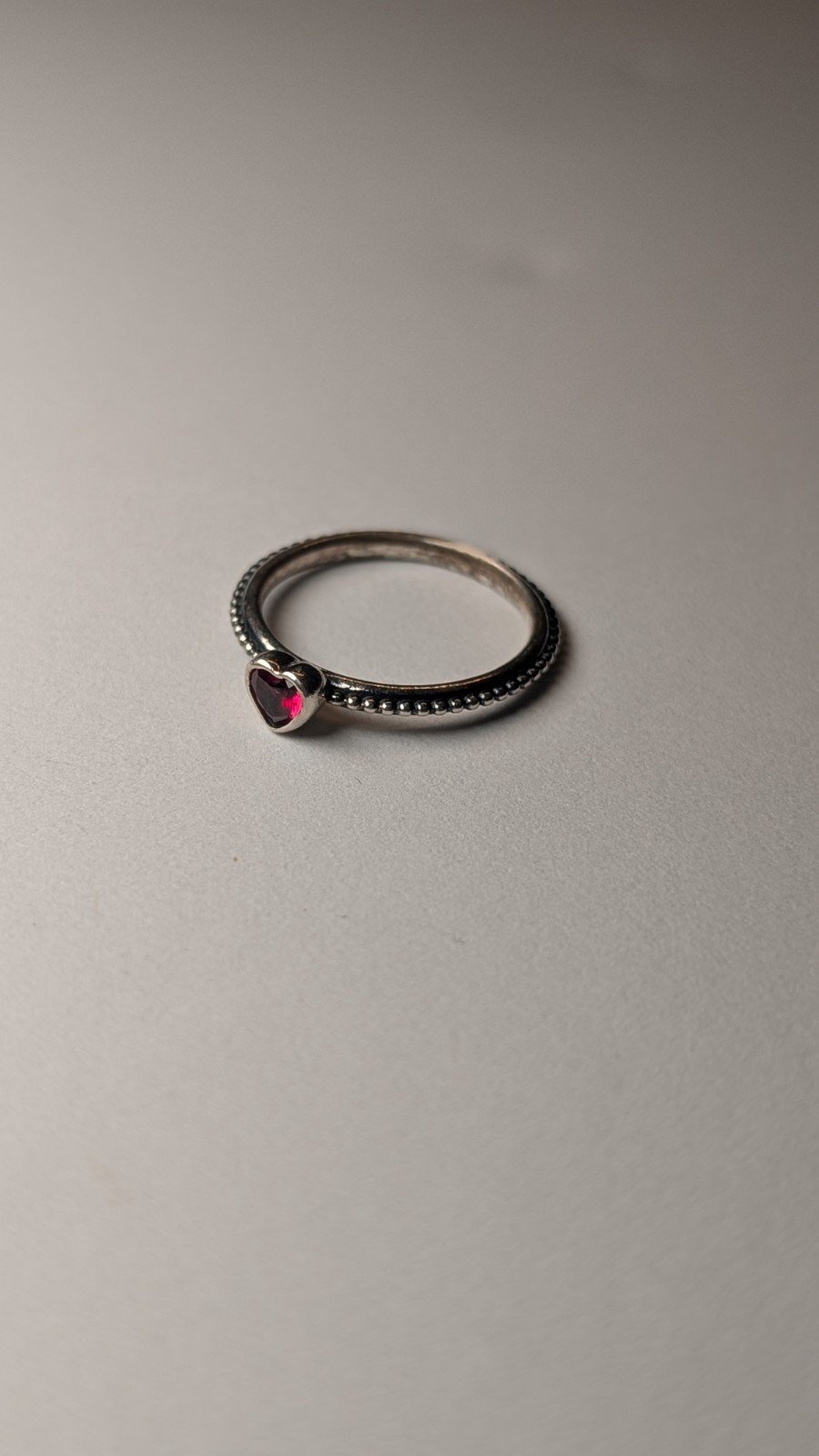 Made from 925 silver, the ring features a red crystal as the main stone.