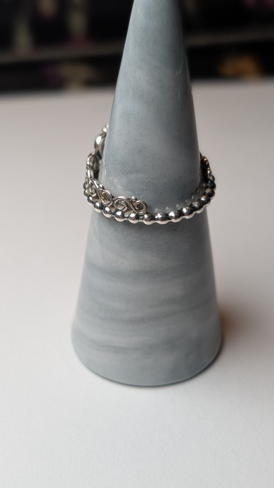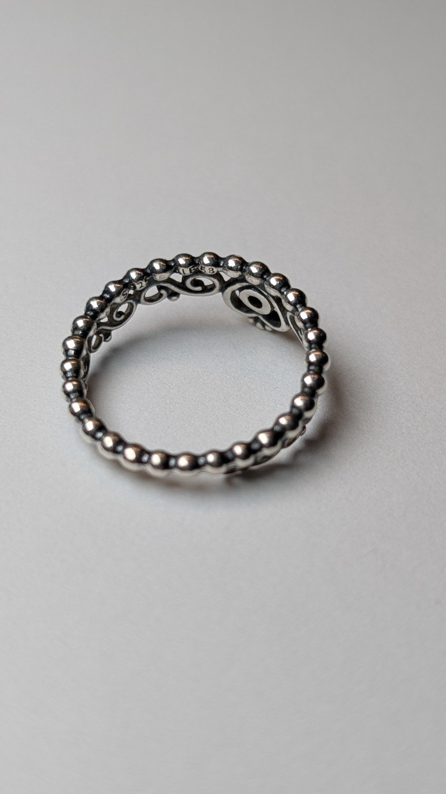 Made from high-quality sterling silver, the ring features intricate beadwork and is hallmarked with ‘S925’ purity.