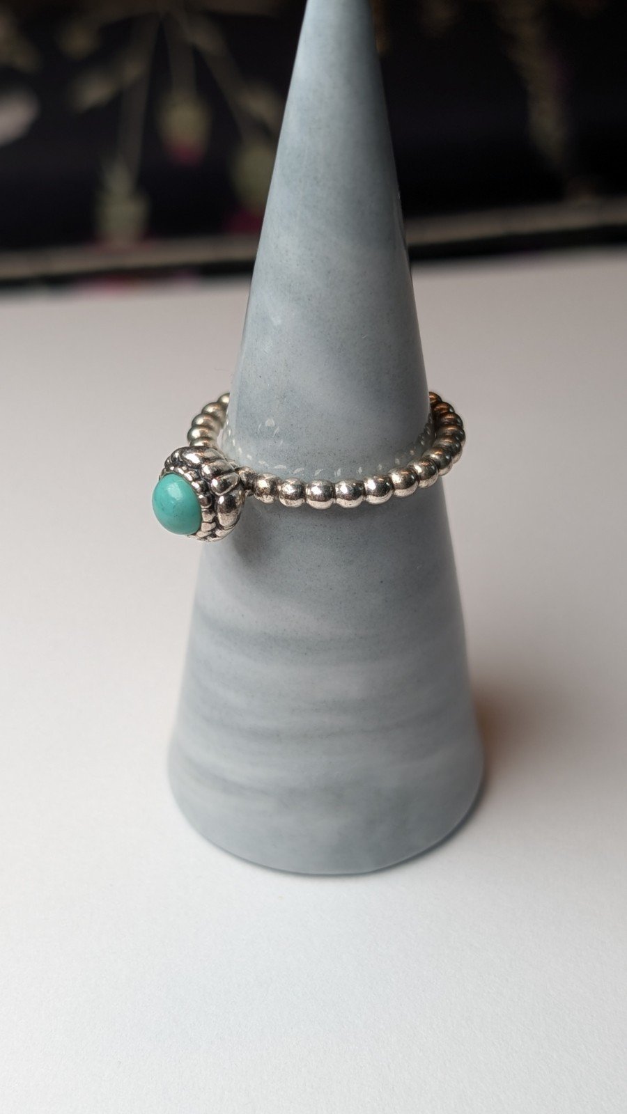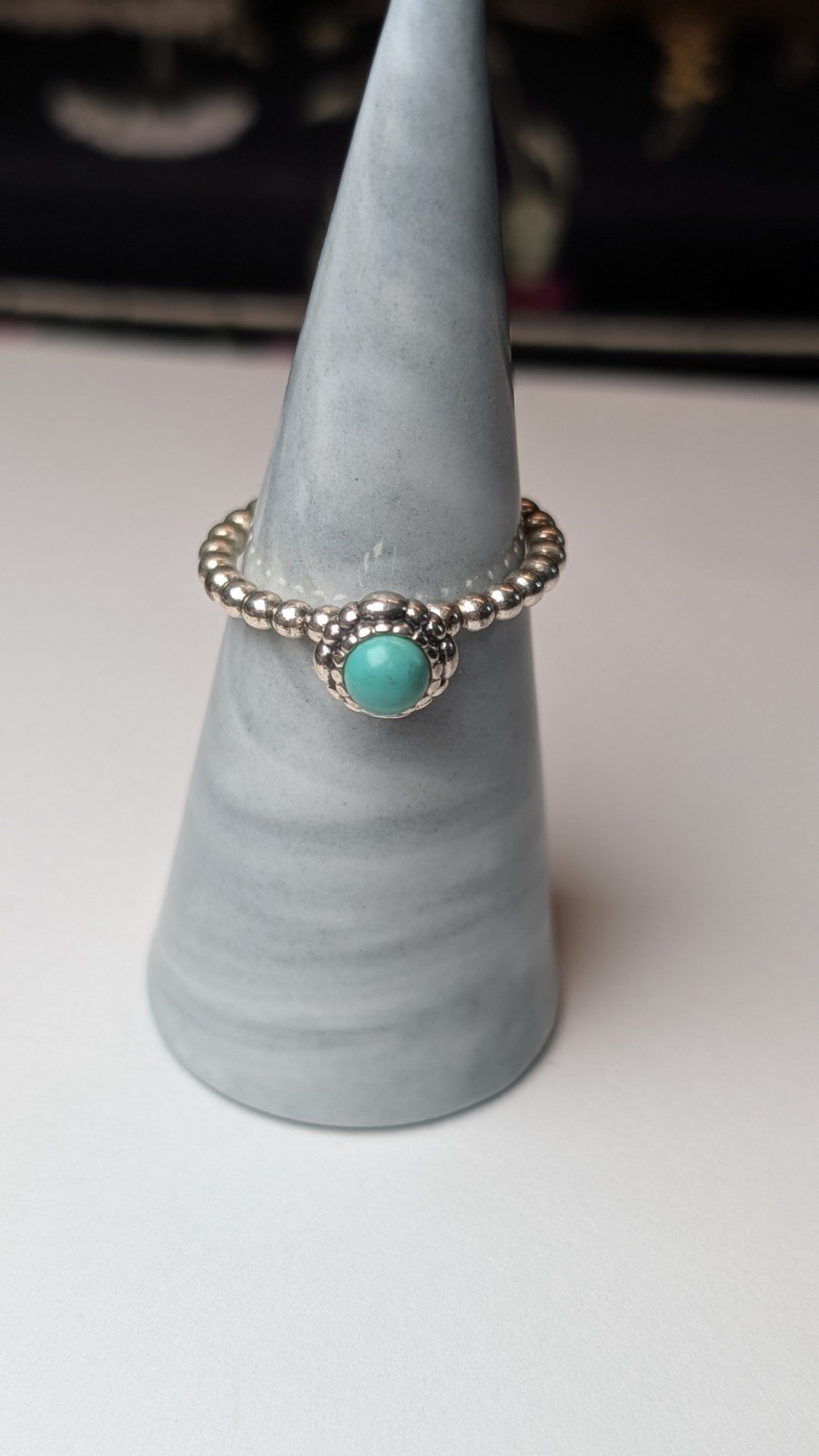 This Genuine Pandora Sterling Silver Turquoise December Birthstone Ring in size O 1/2 is a stunning piece of fine jewellery.