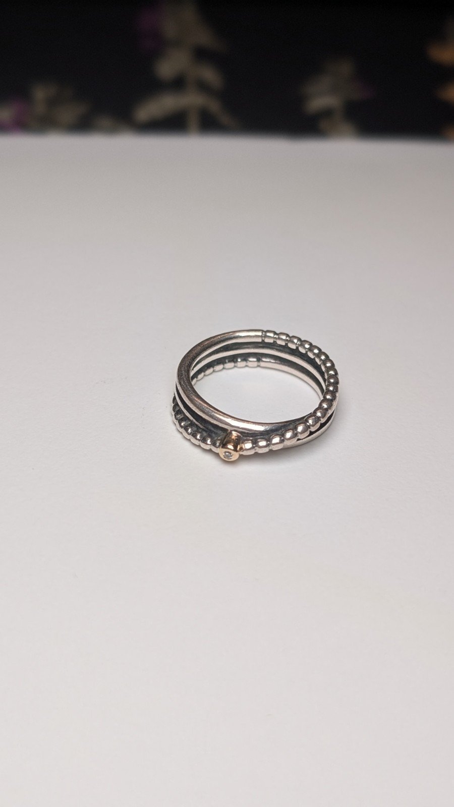 Genuine Sterling Silver & 14k Gold Pandora Rising Star Diamond Ring | Size L 1/2