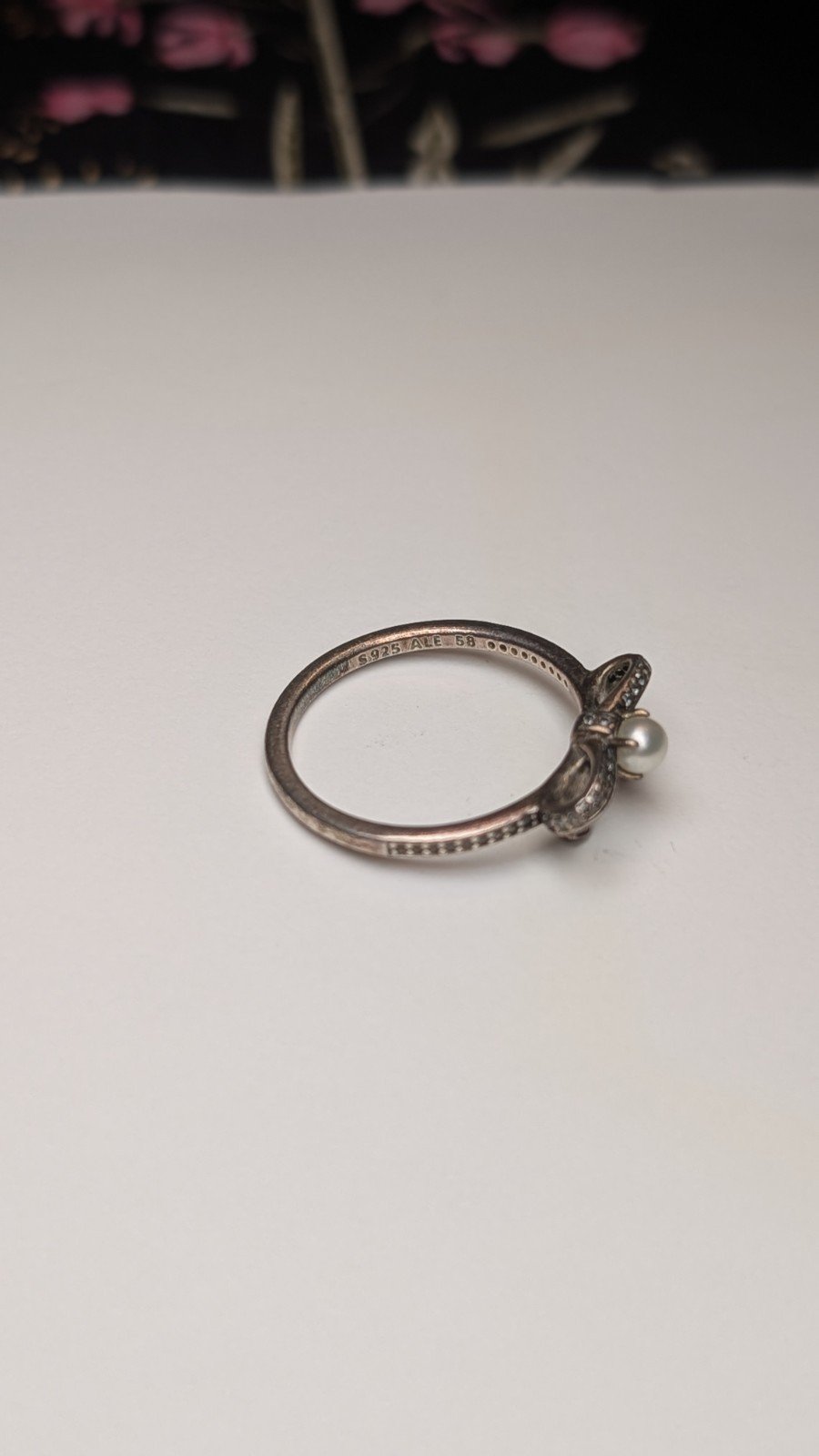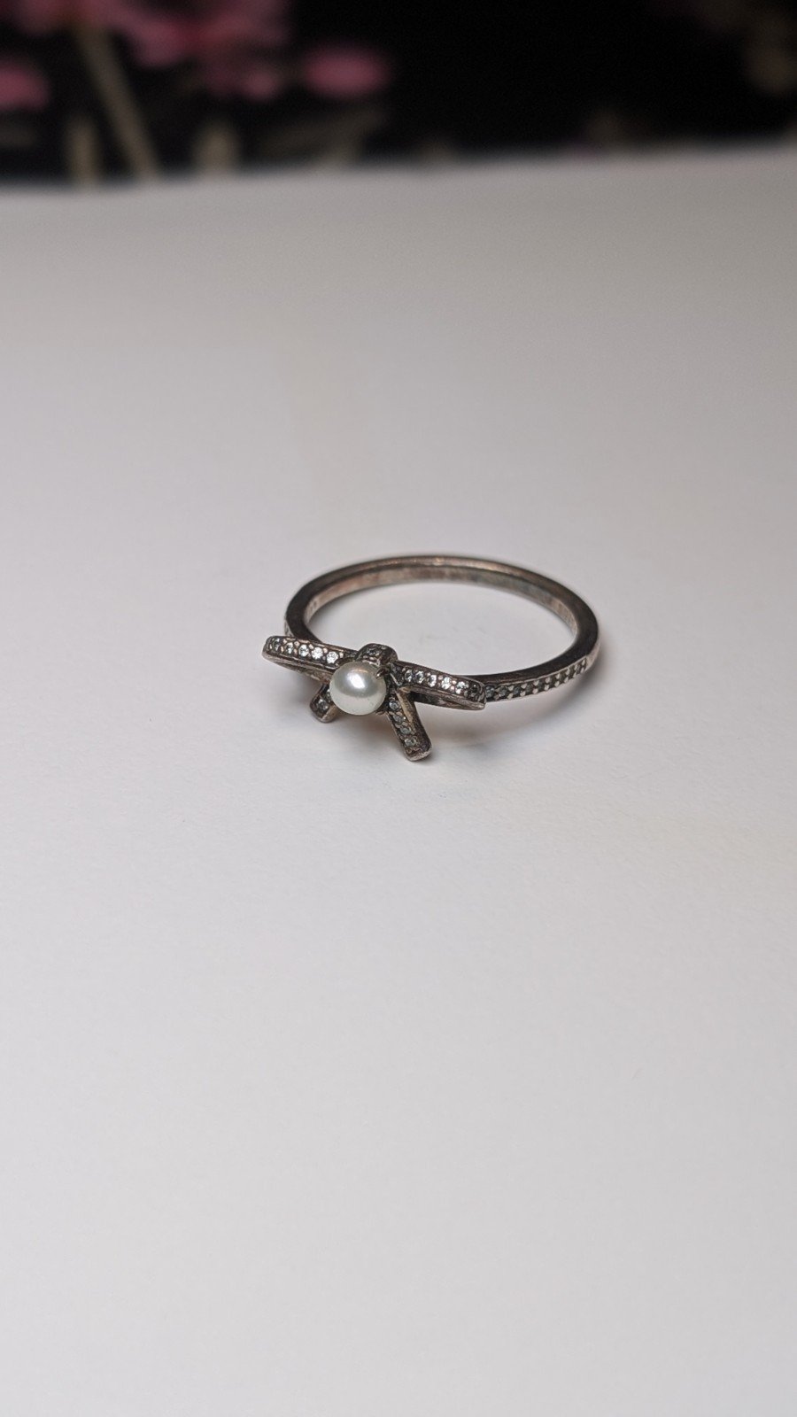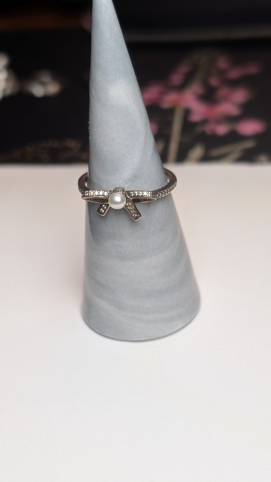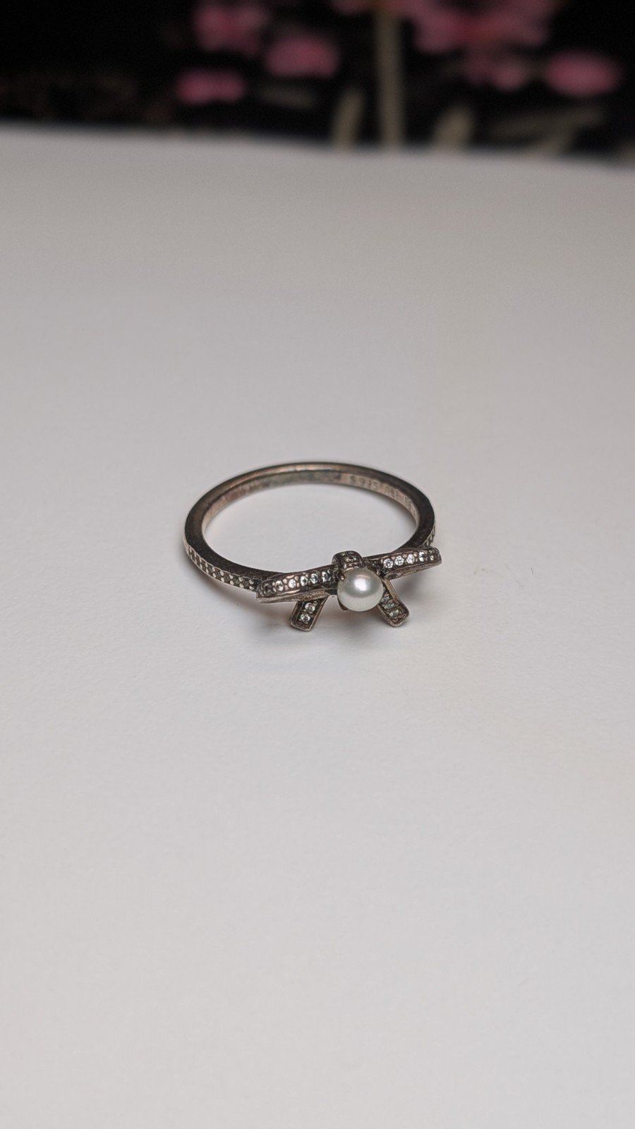 Genuine Sterling Silver Pandora Pearl Bow Ring | Size Q 1/2 | S925 ALE Silver