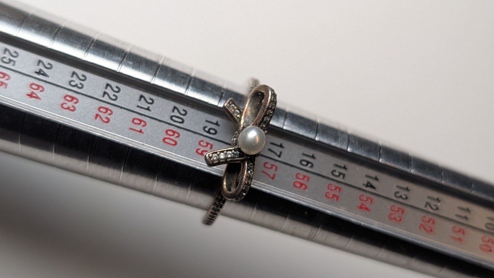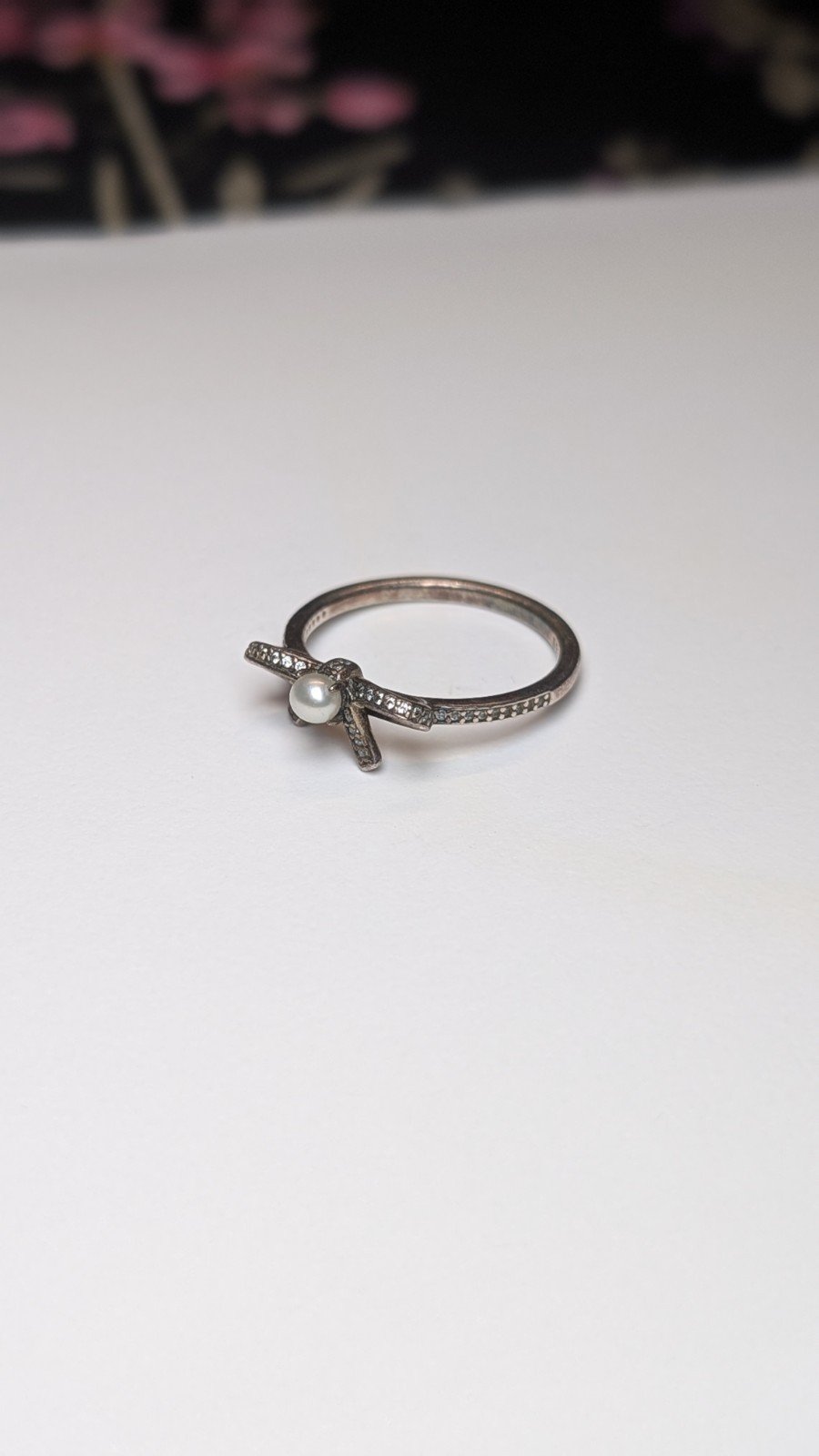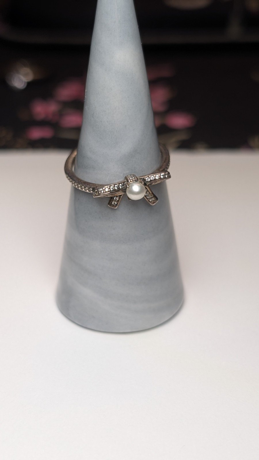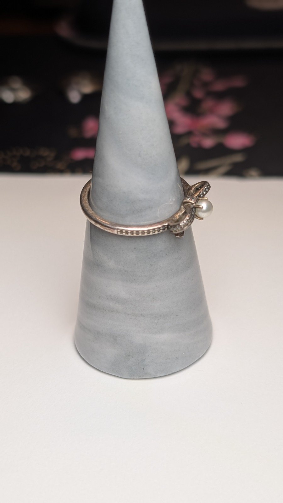 Genuine Sterling Silver Pandora Pearl Bow Ring | Size Q 1/2 | S925 ALE Silver