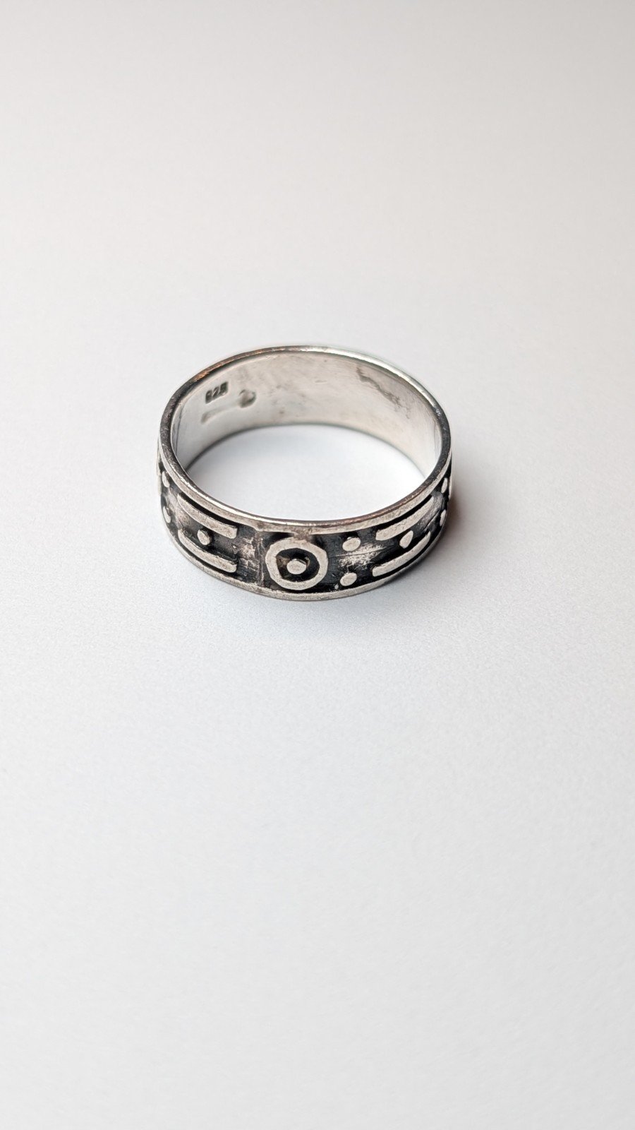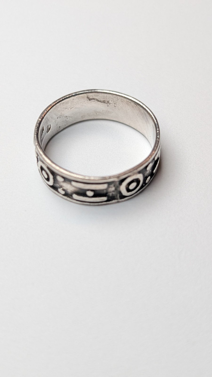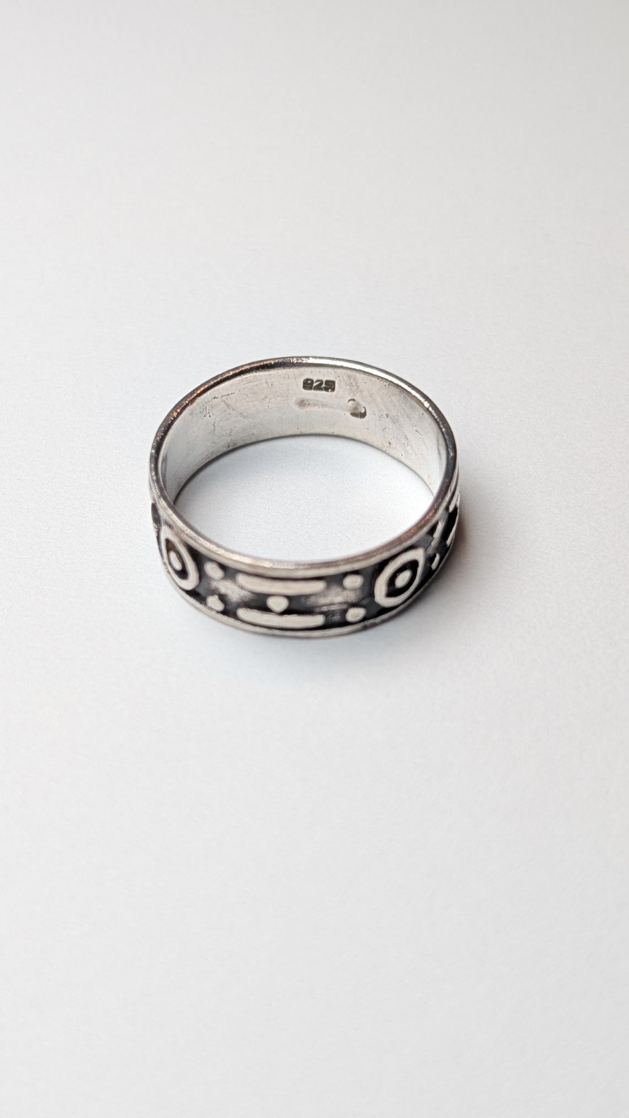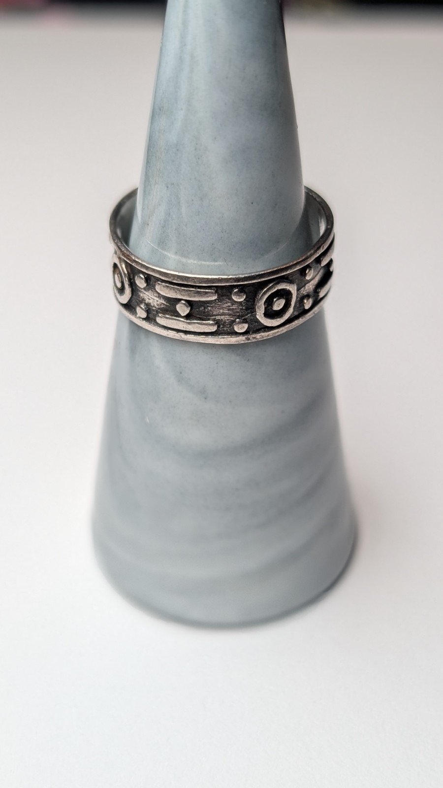 This sterling silver pattern band ring is a vintage piece hallmarked with 925 silver purity.