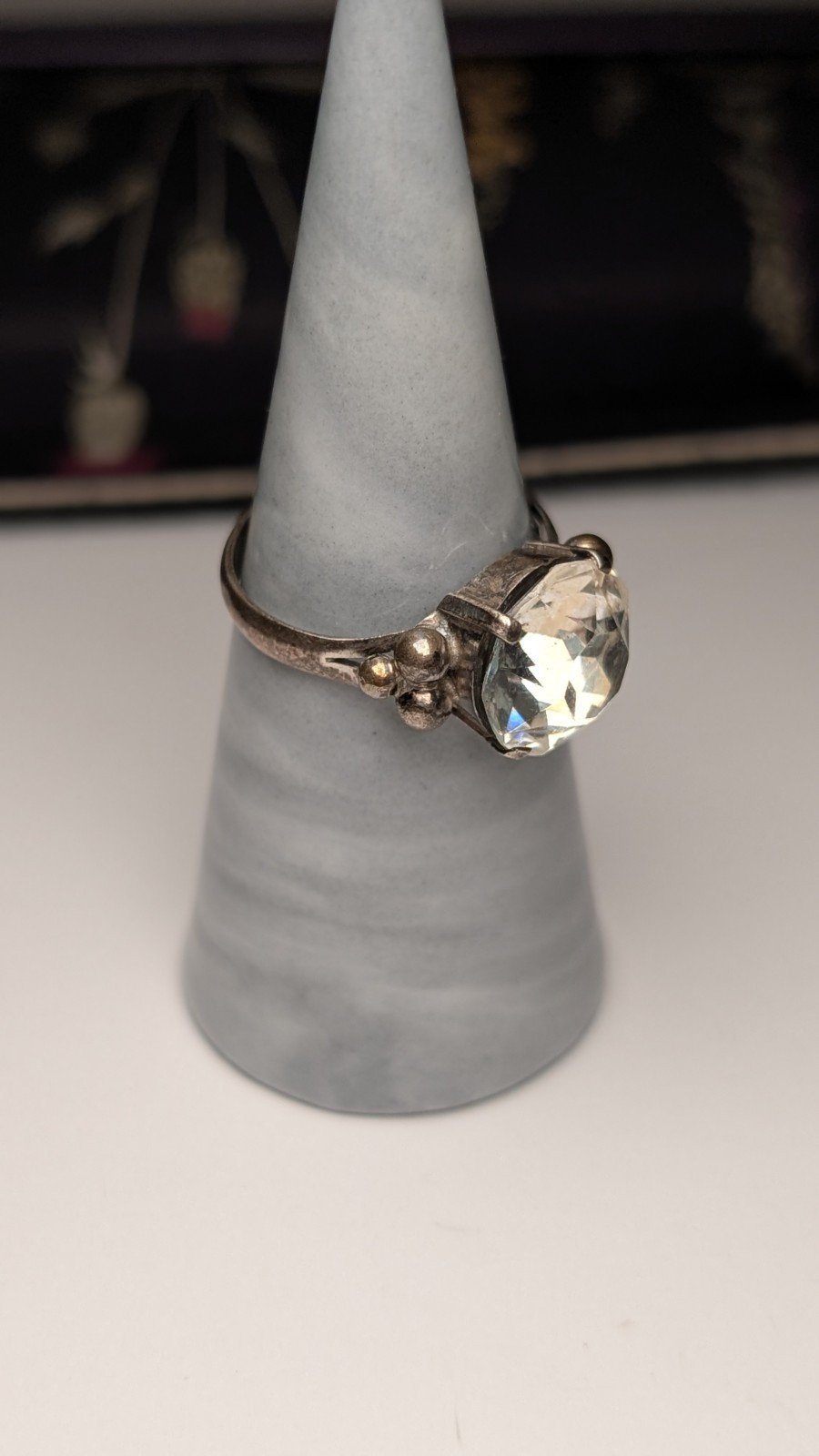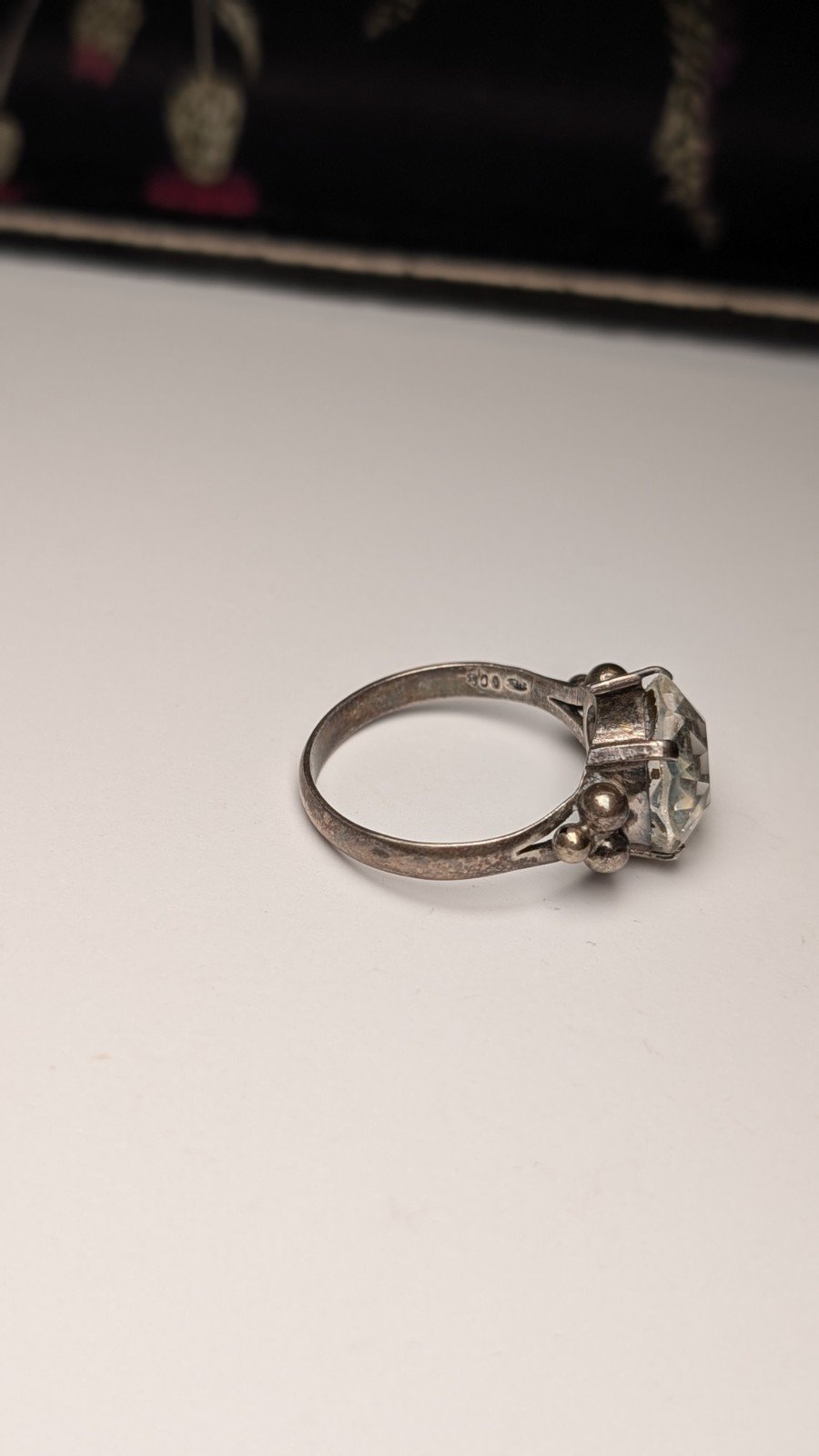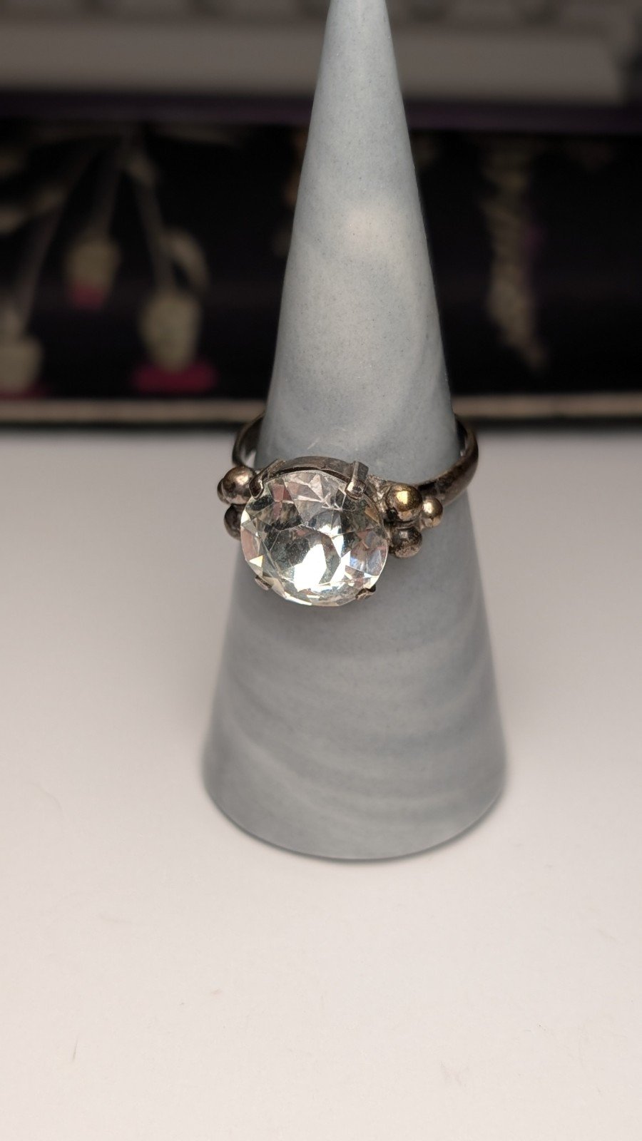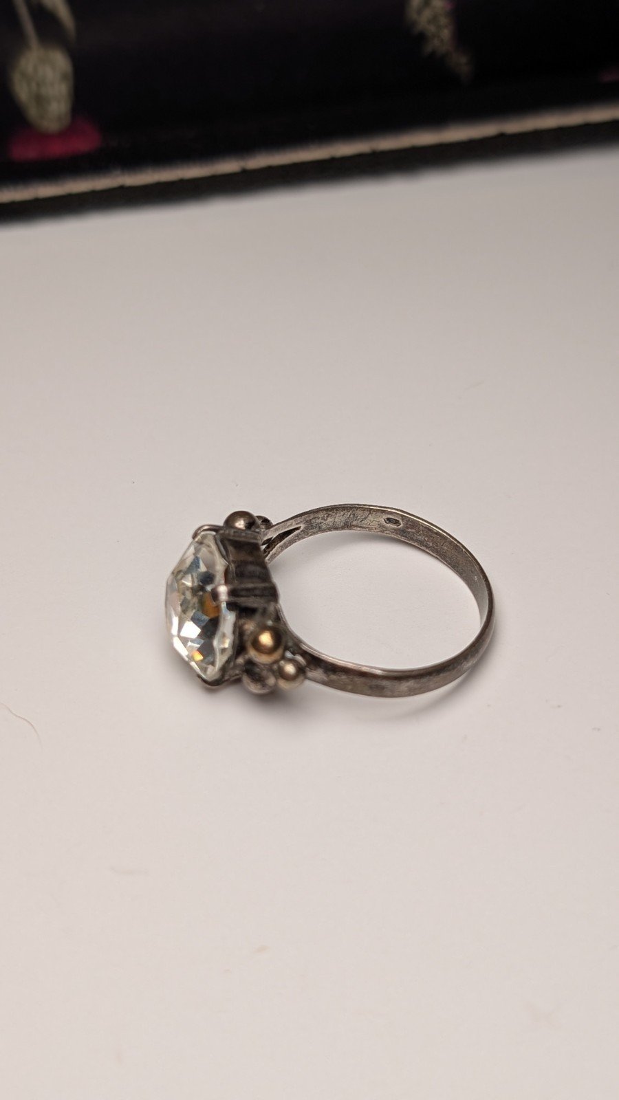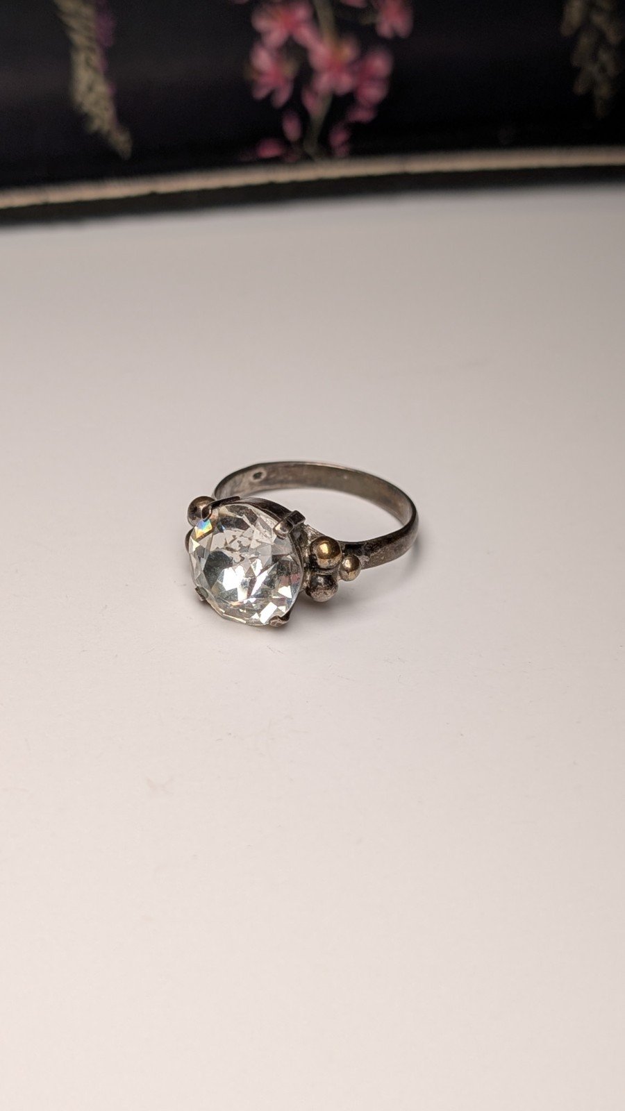 Vintage 800/1000 Silver Clear Gemstone Ring | Size S 1/2 | 800 Silver