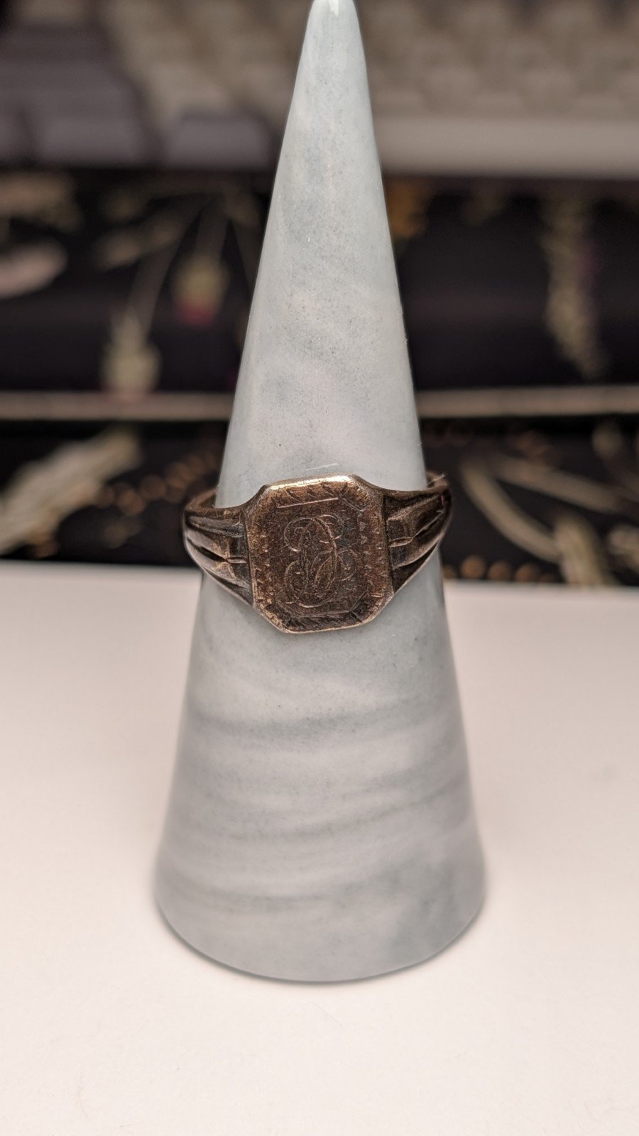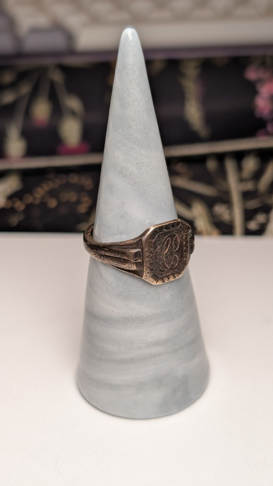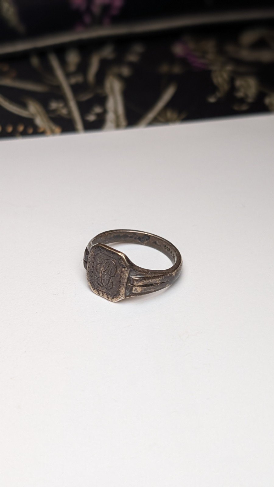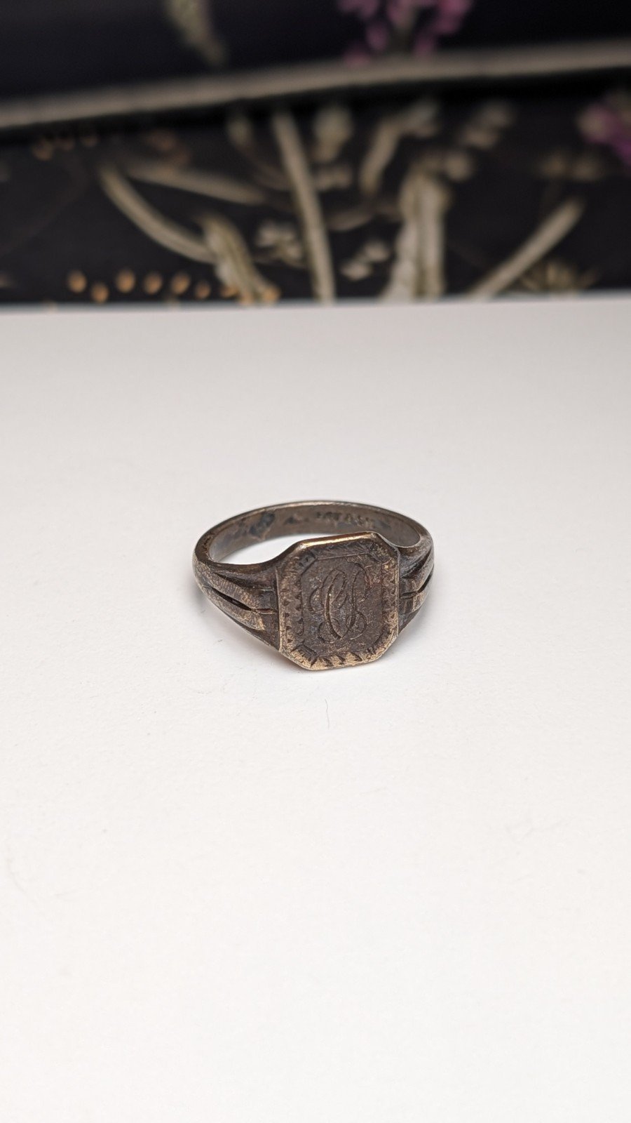 Be the first to review “Vintage 9ct Plated Sterling Silver Engraved Signet Ring | Size R | 925 Silver”