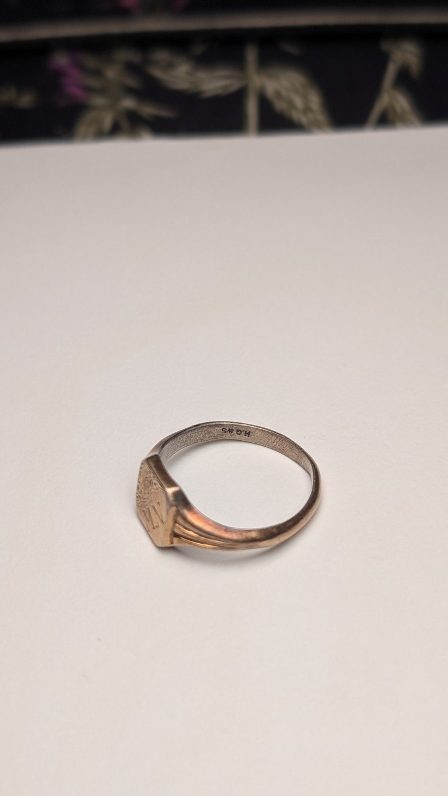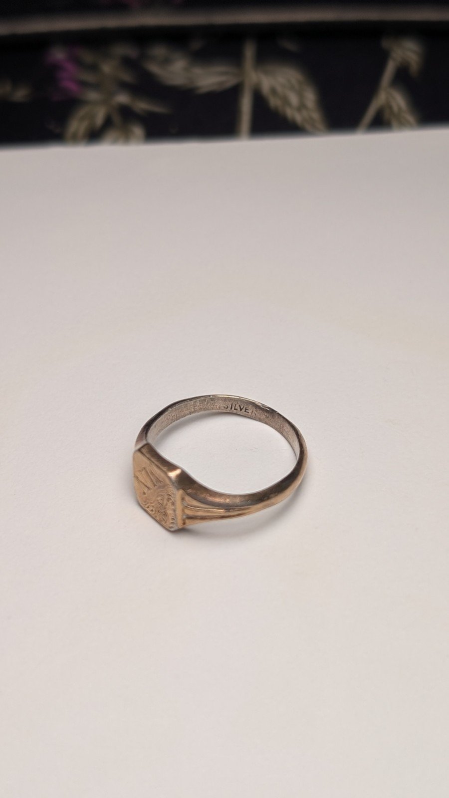 Vintage 9ct Plated Sterling Silver Inscribed M.N Signet Ring | Size N | 925