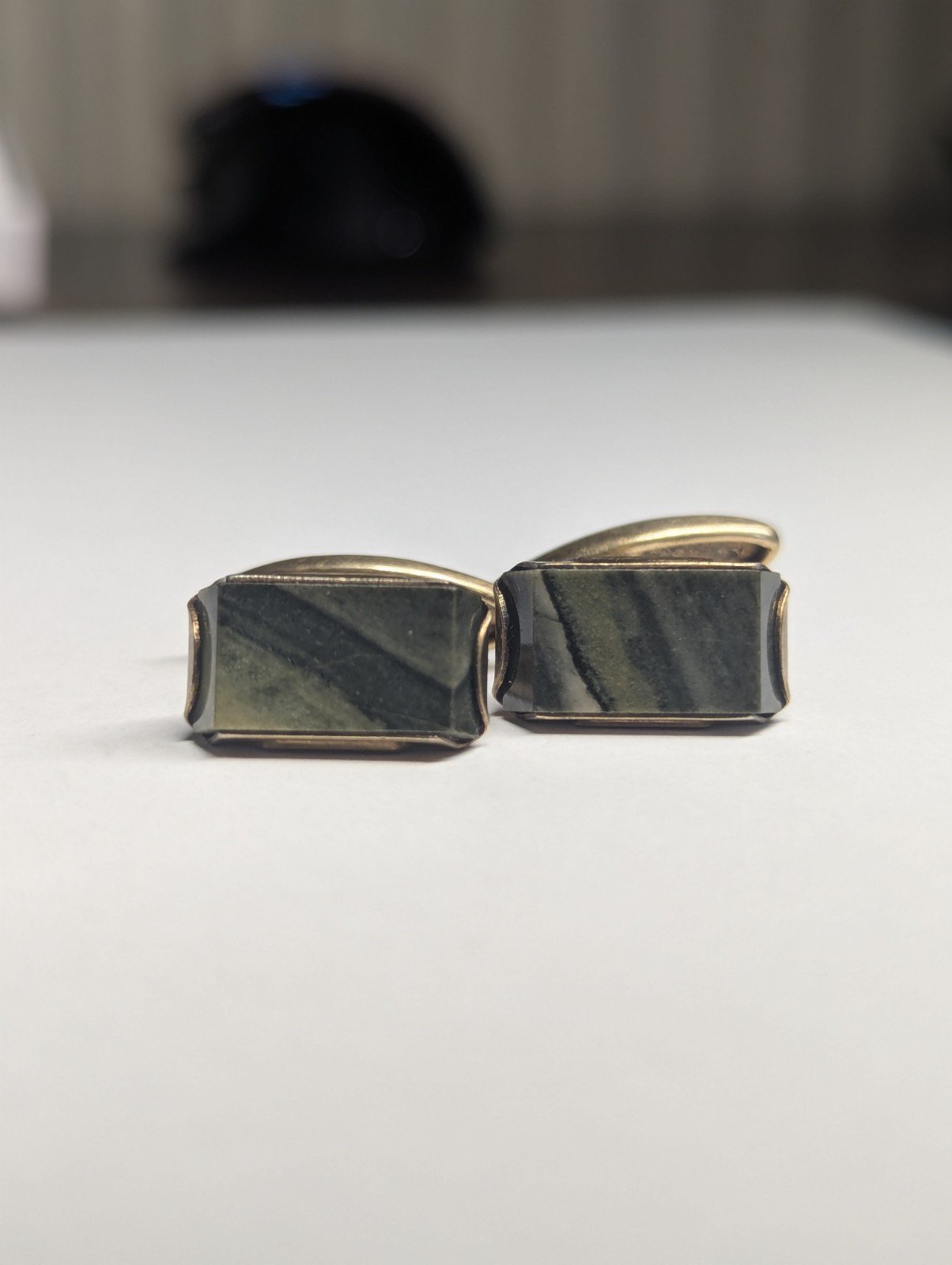 This product consists of two sets of vintage/antique Russian .875 silver men’s cufflinks featuring natural gemstones in a gold tone colour.