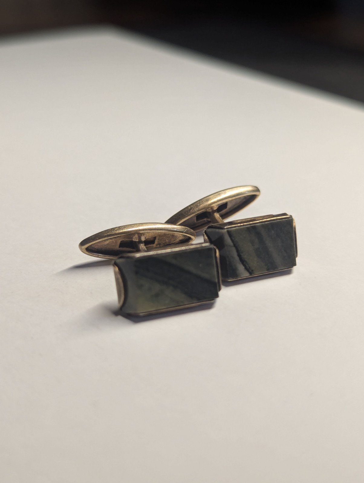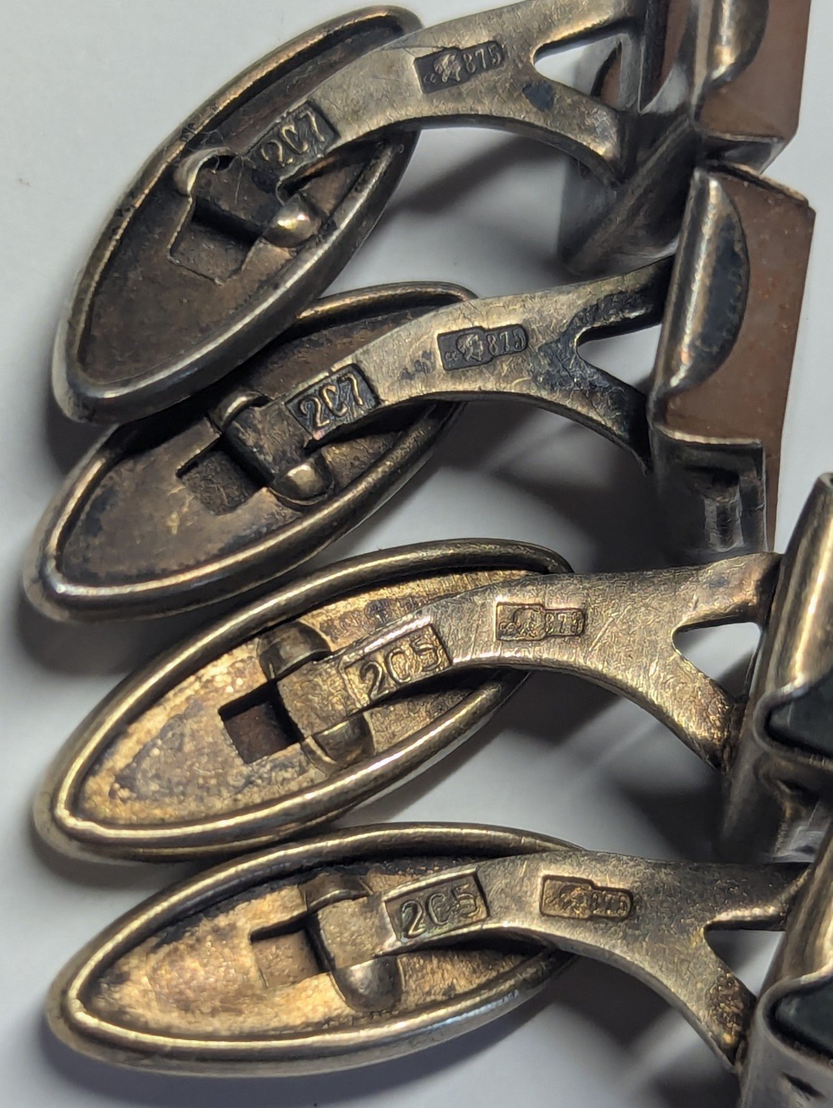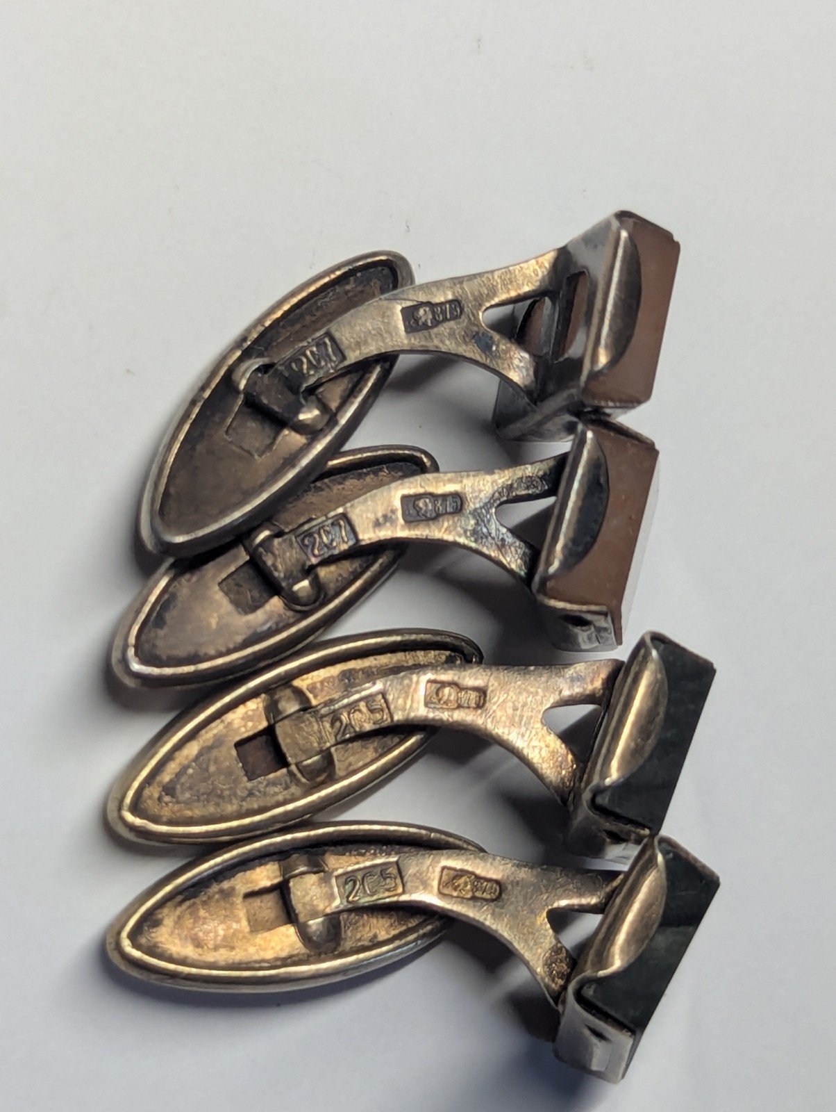 Vintage/Antique Russian .875 Silver Mens Gemstone Gold Tone Cufflinks. 2 Sets.