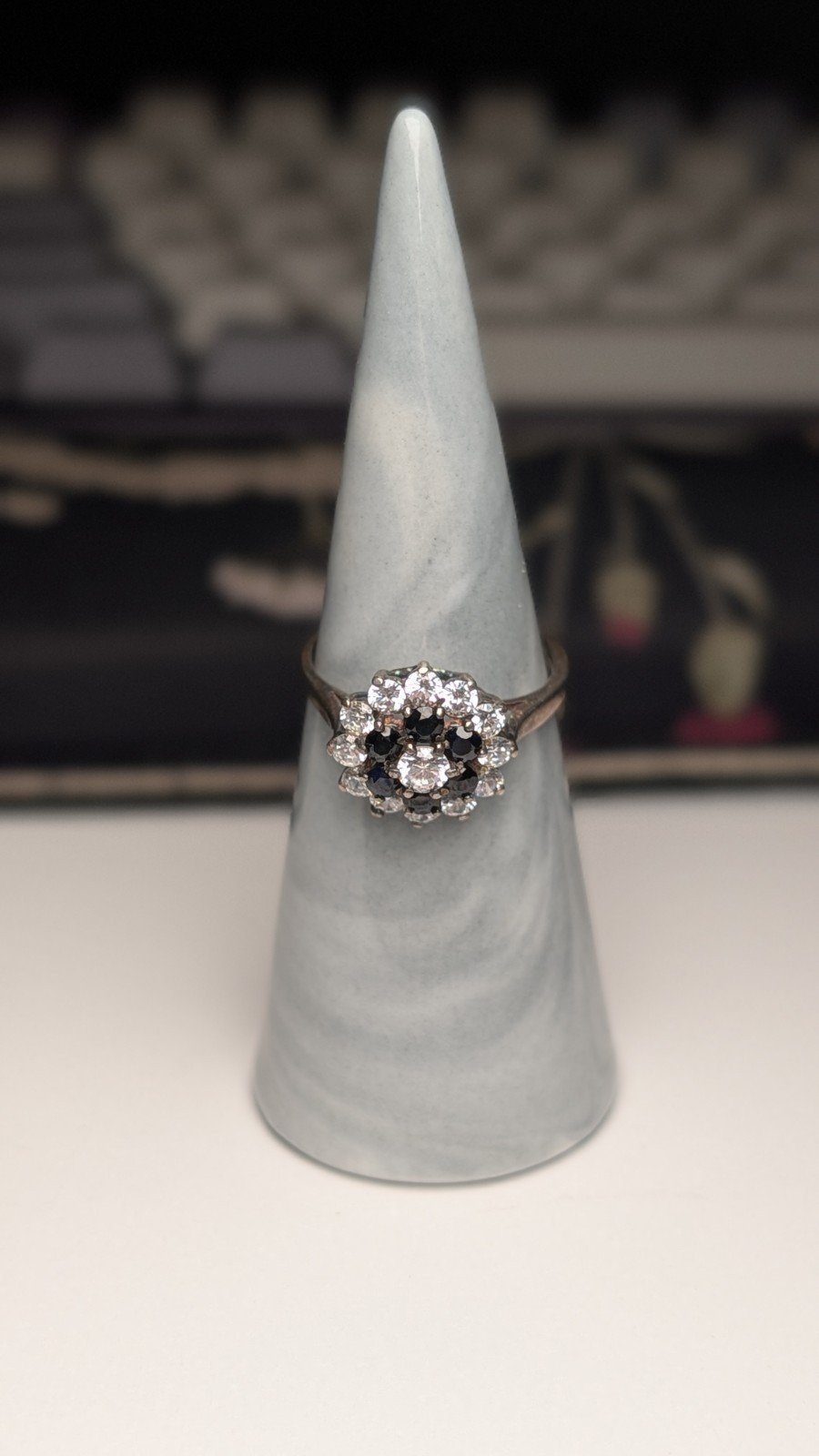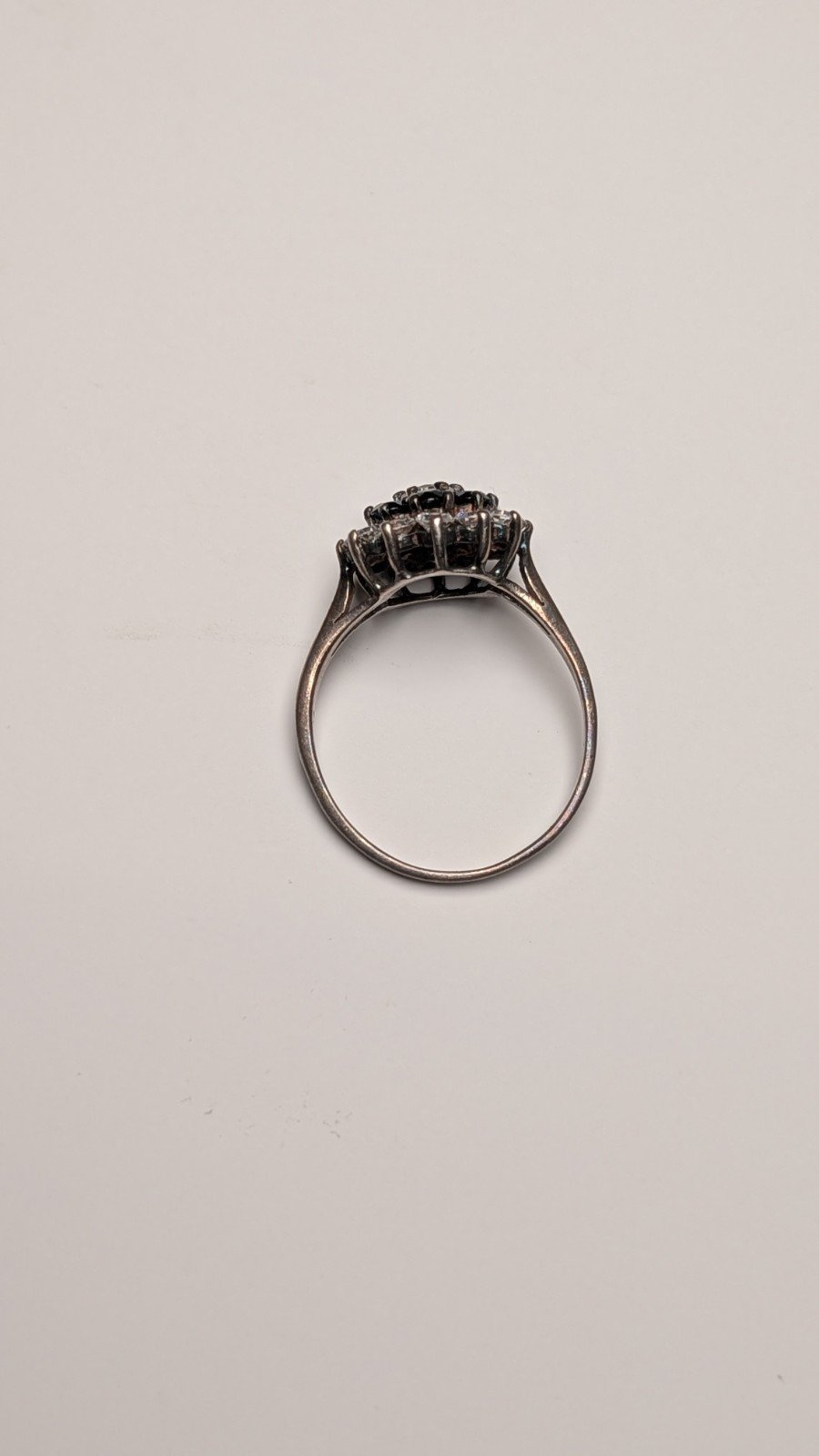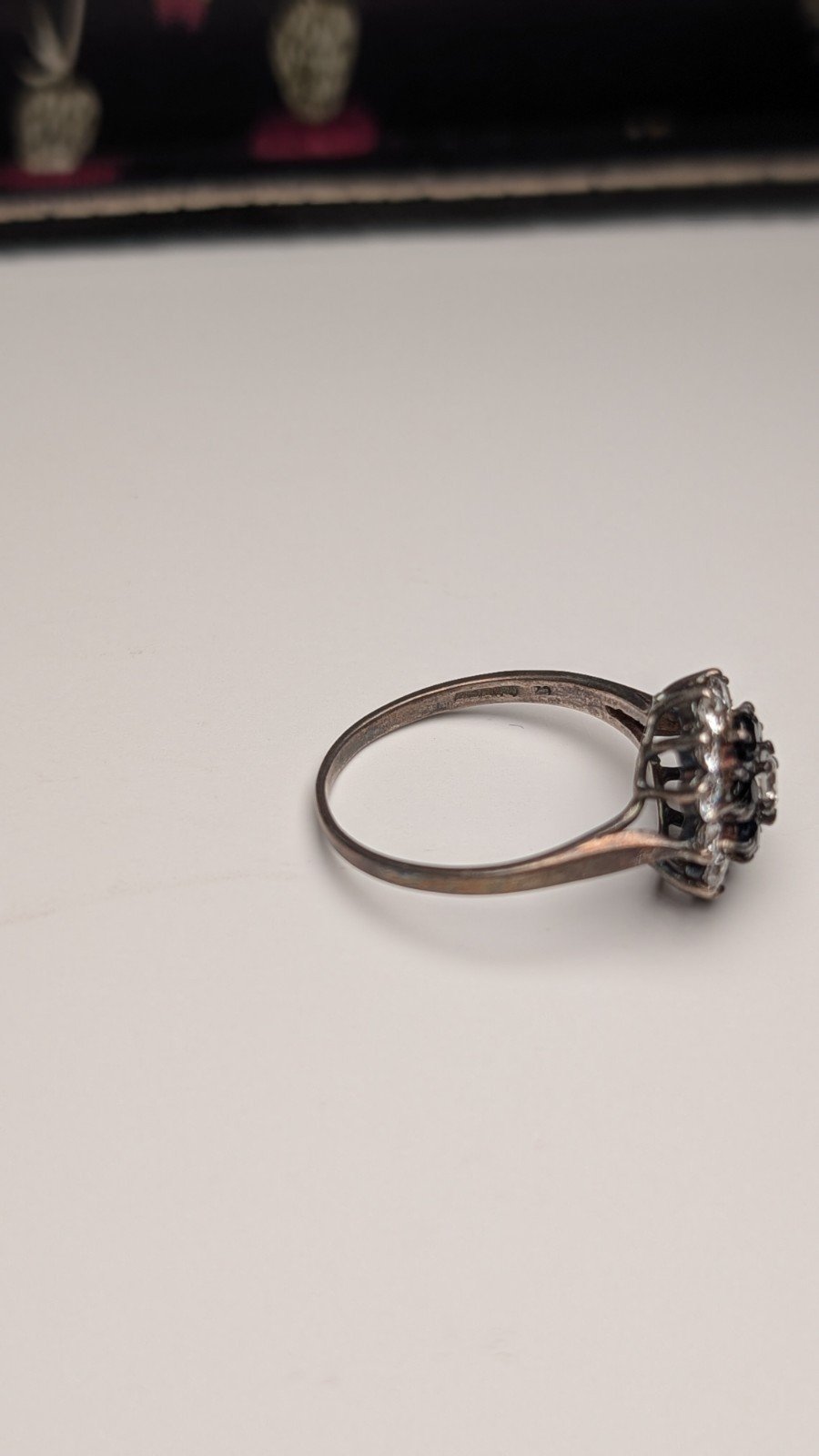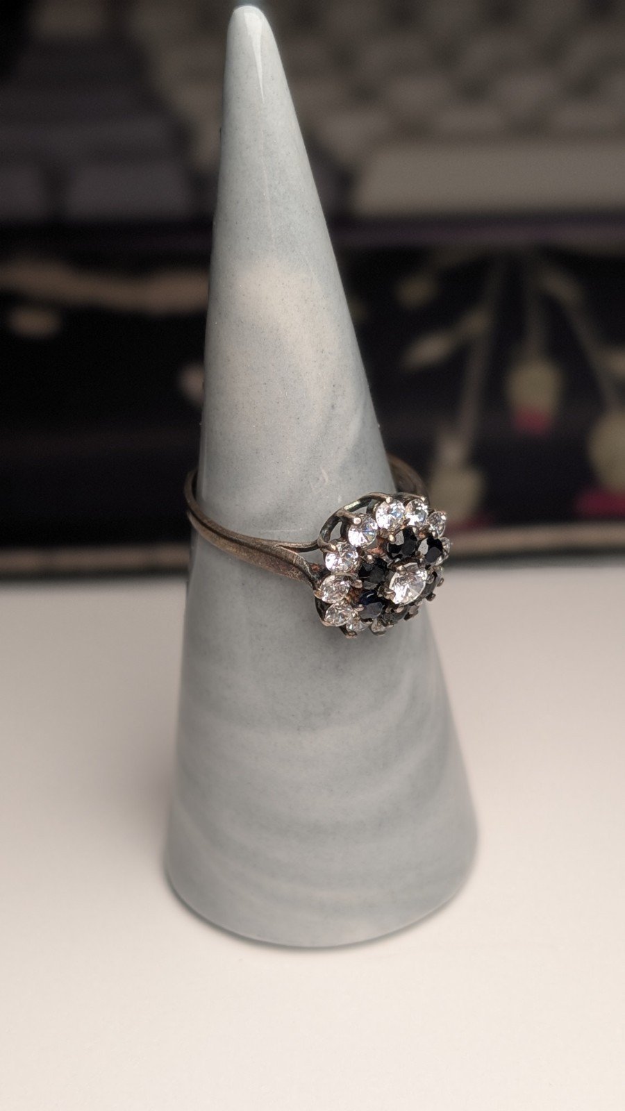 Vintage Sterling Silver 1885 Cluster Ring Clear/Blue Gemstone Ring | Size O 1/2