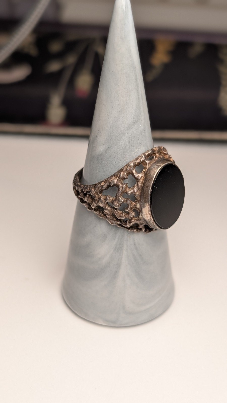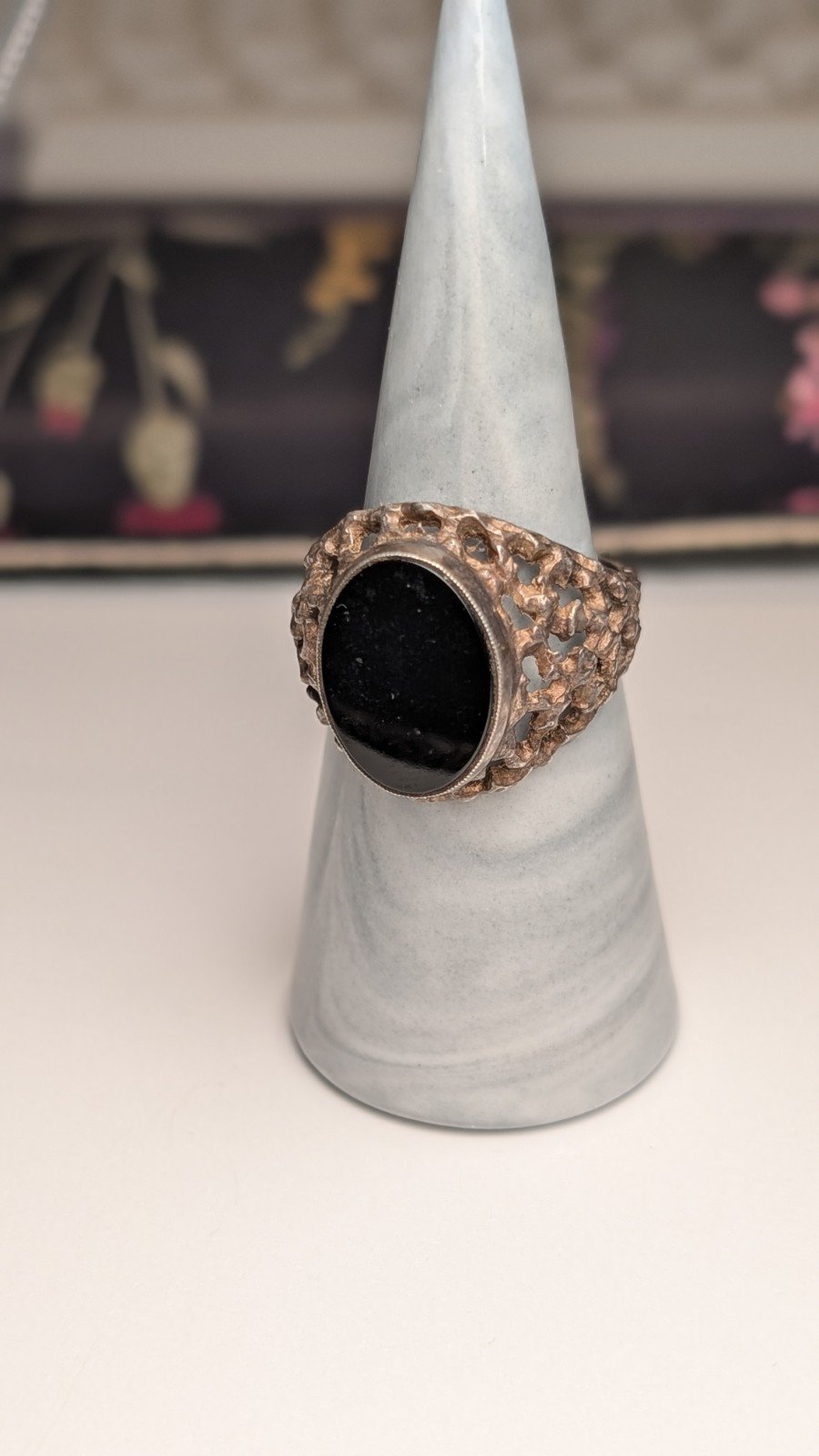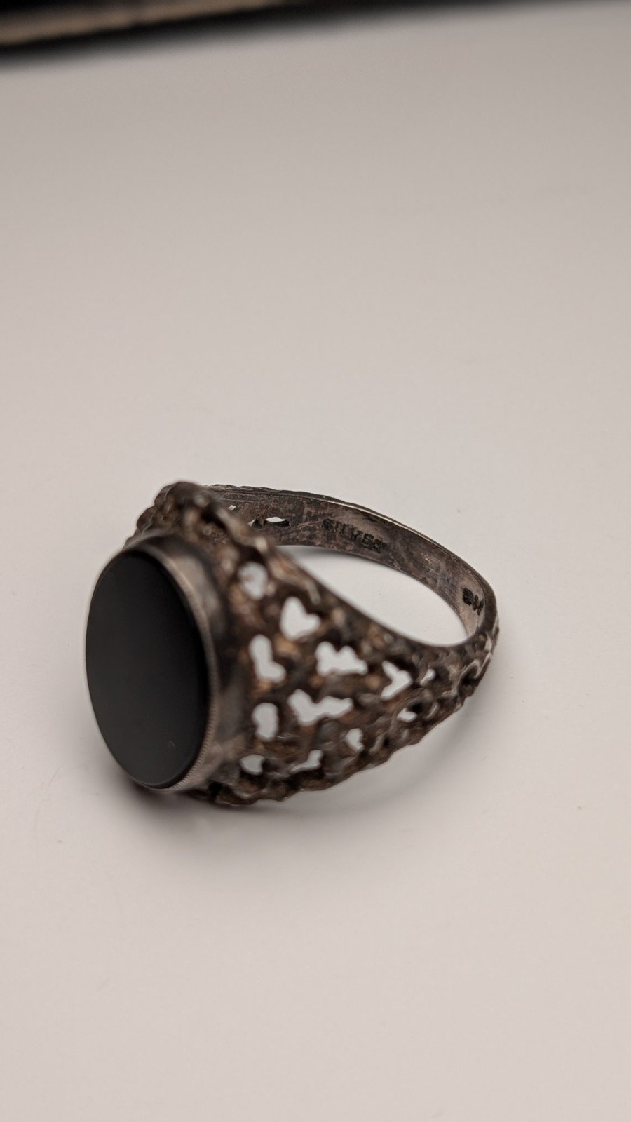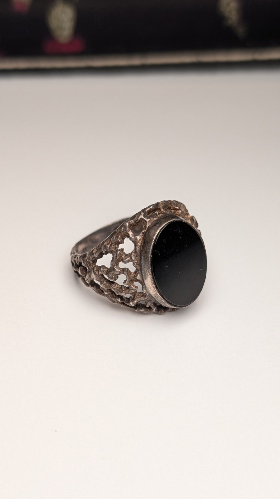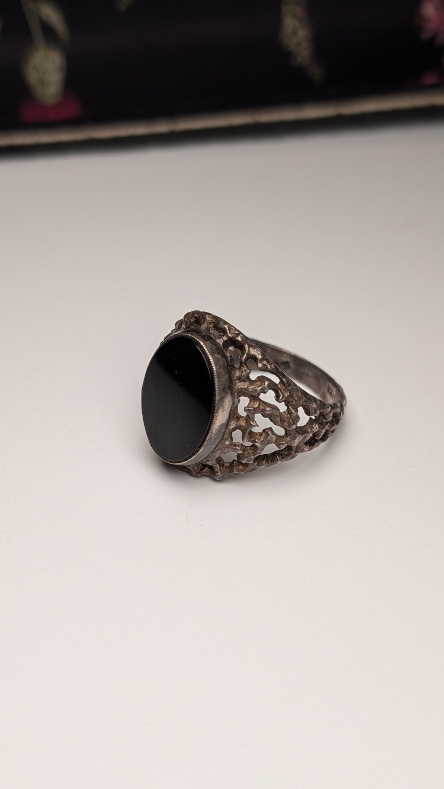 Vintage Sterling Silver 1975 Men’s Flat Faced Black Onyx Signet Ring | Size S
