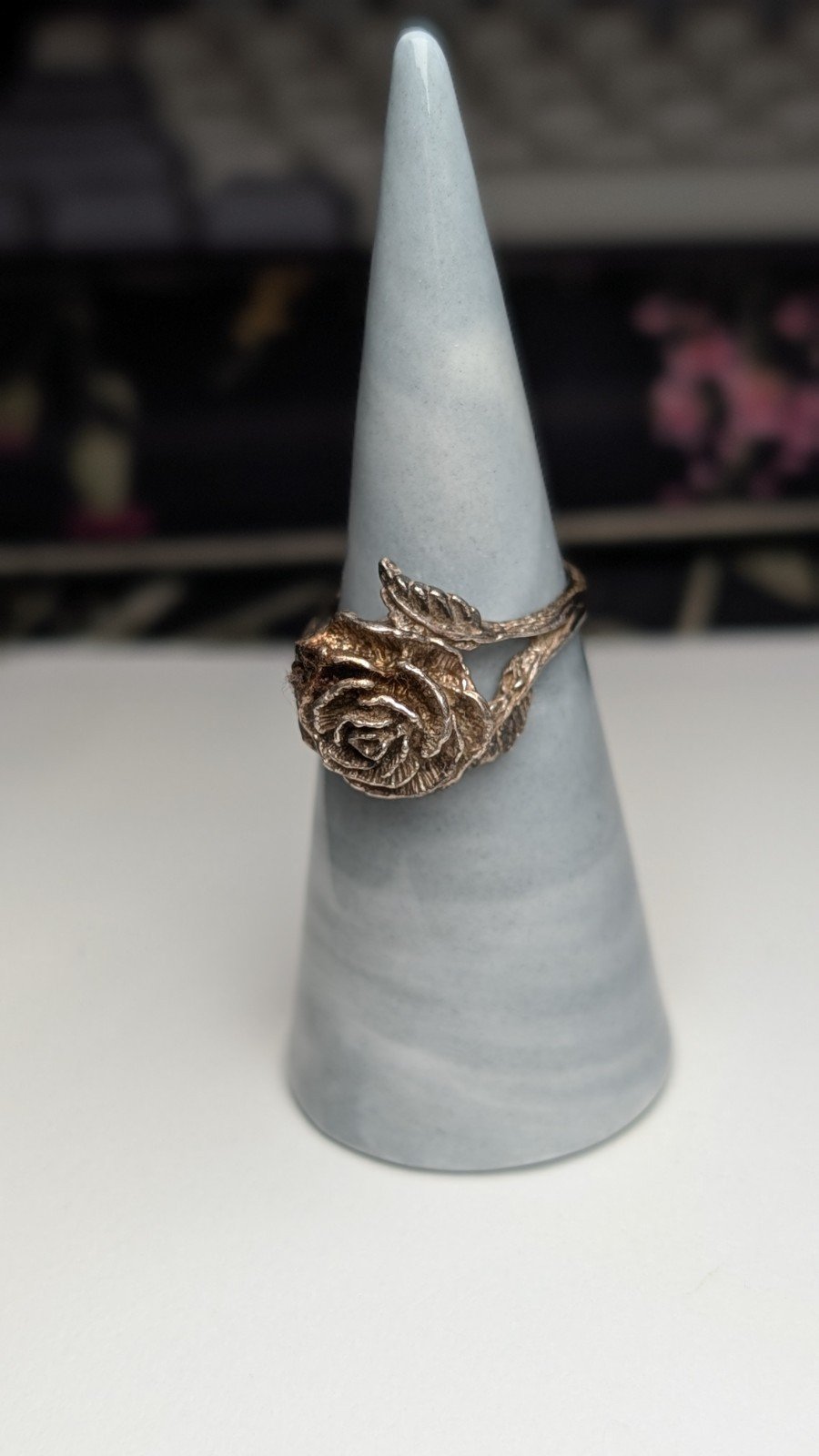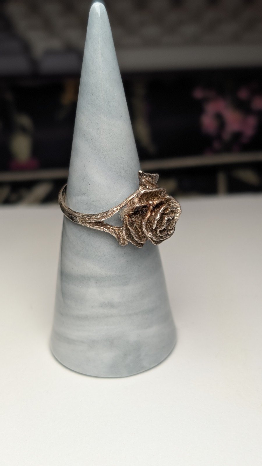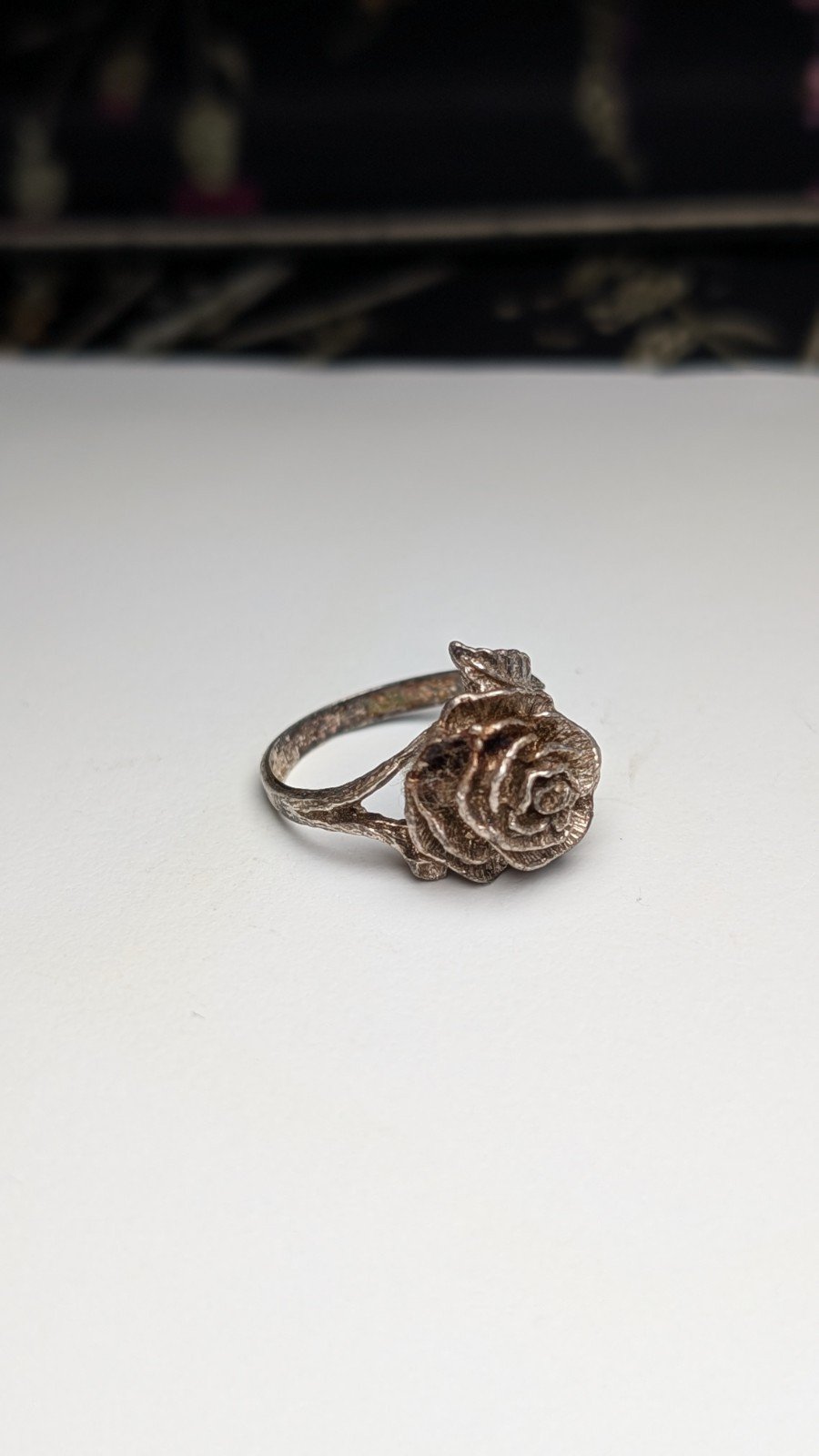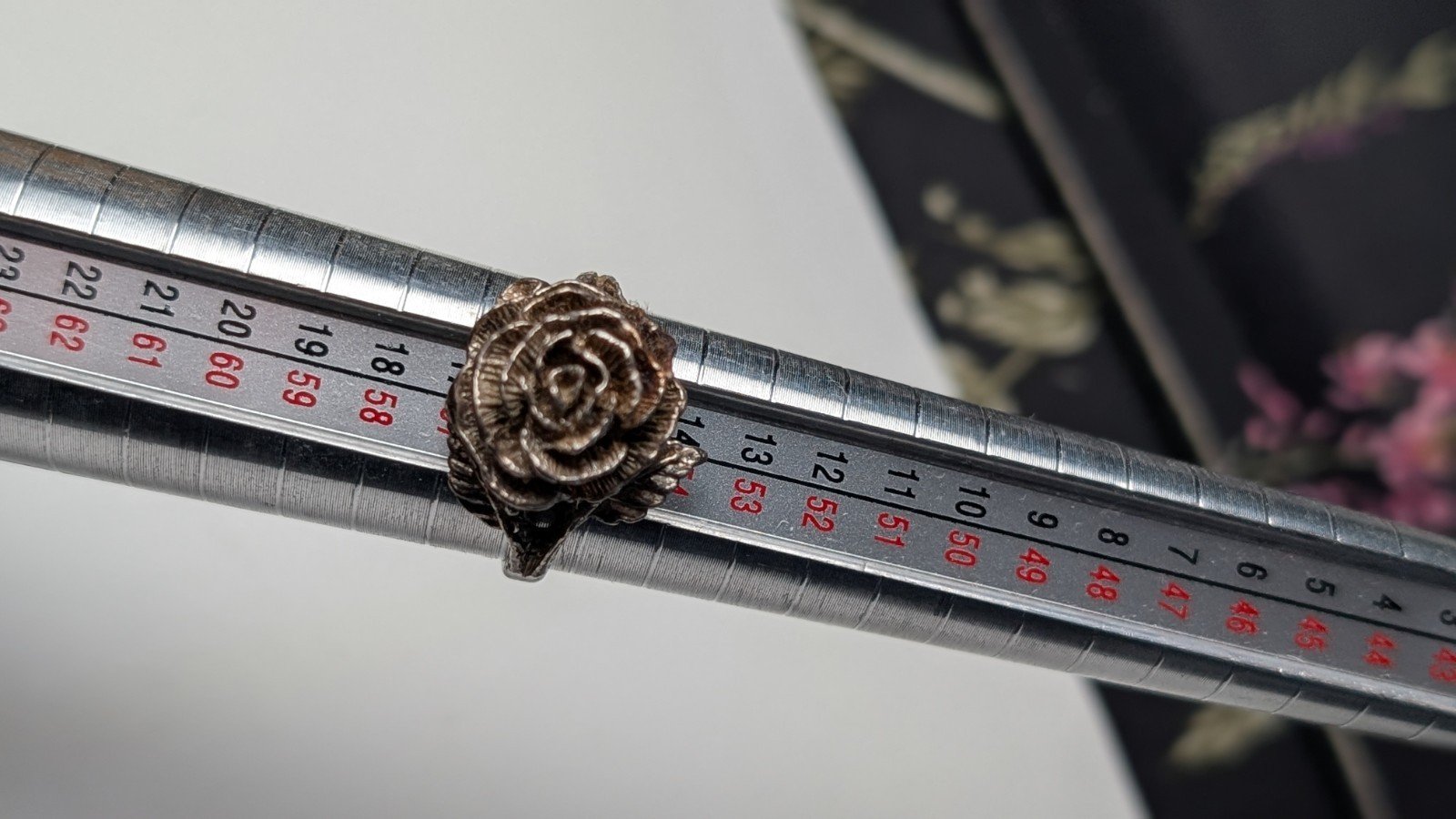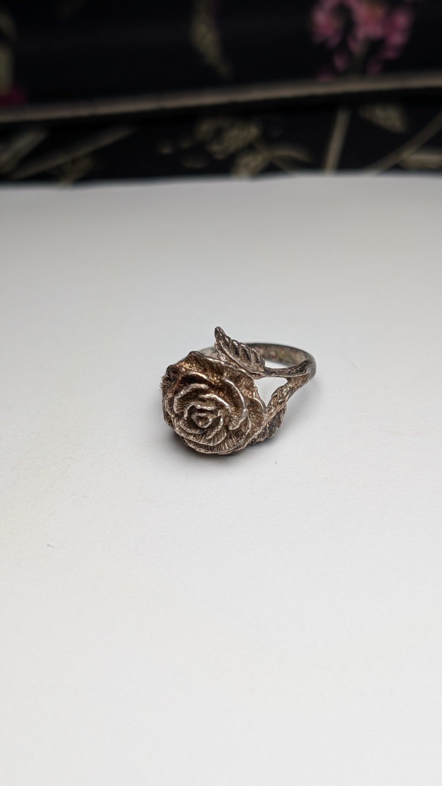 Vintage Sterling Silver 1975 Rose Flower Ring | Size O 1/2 | 925 Silver
