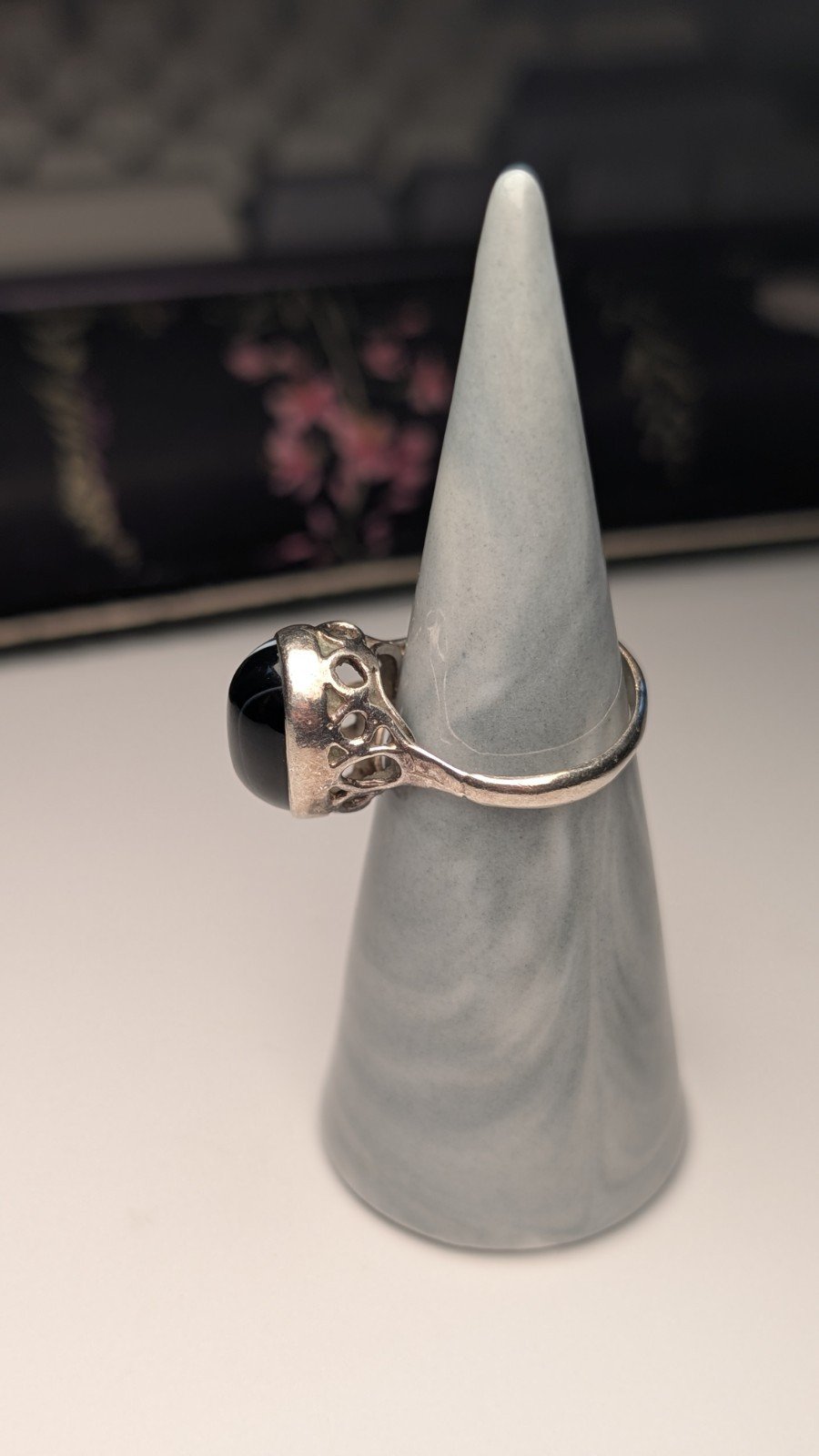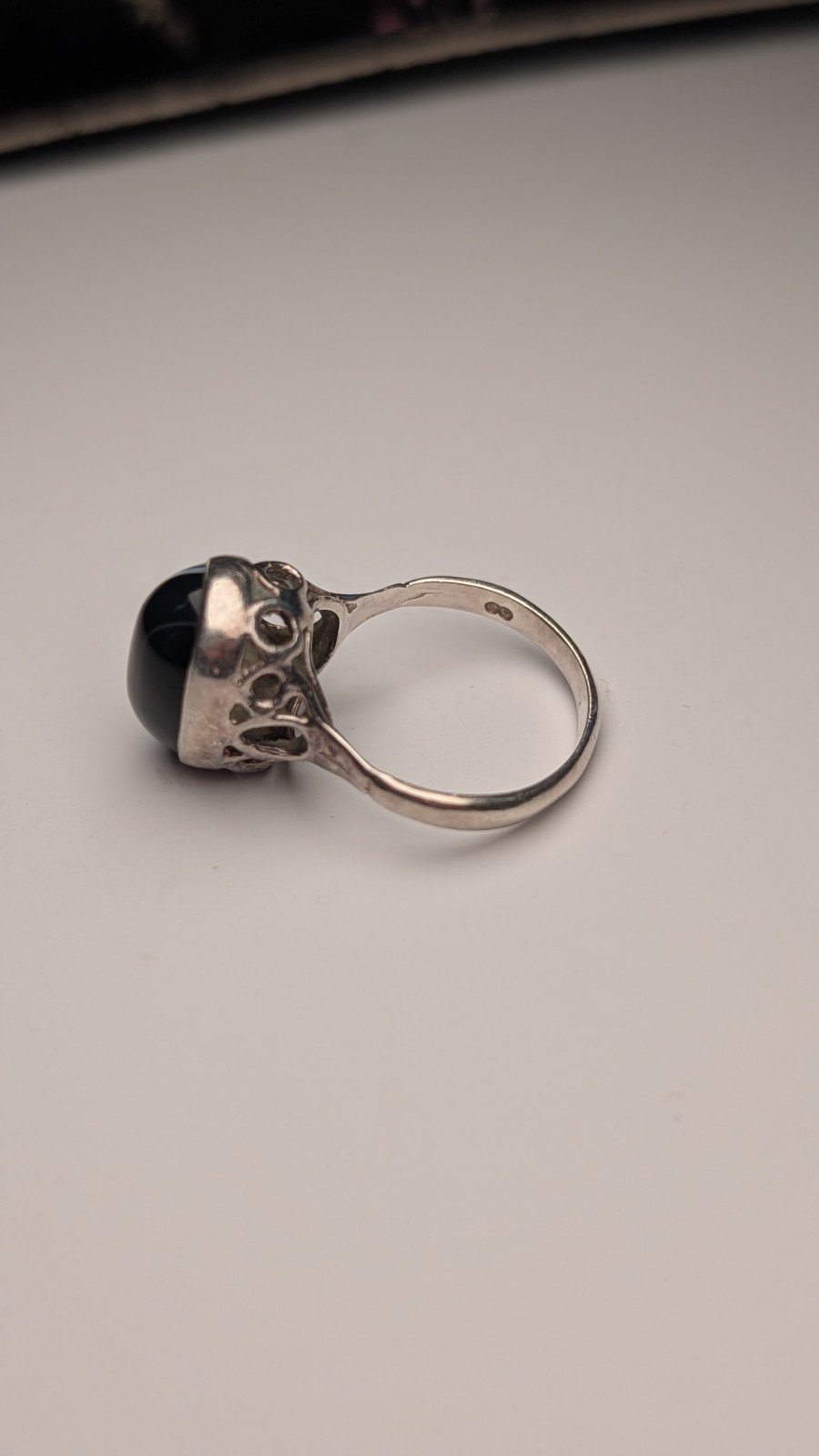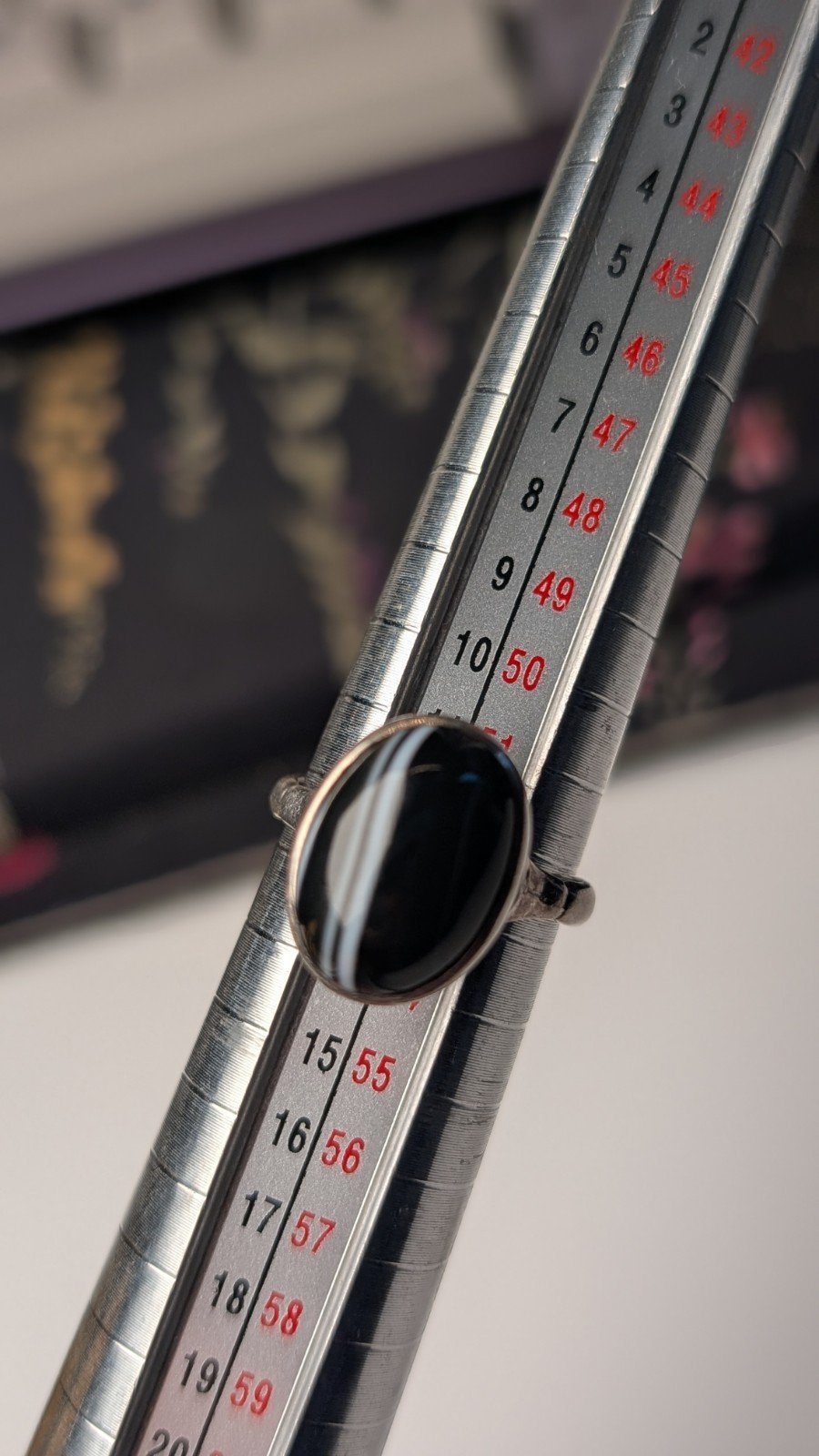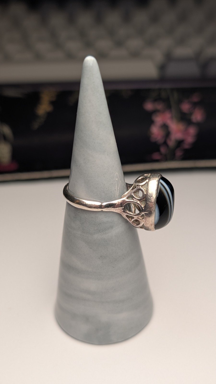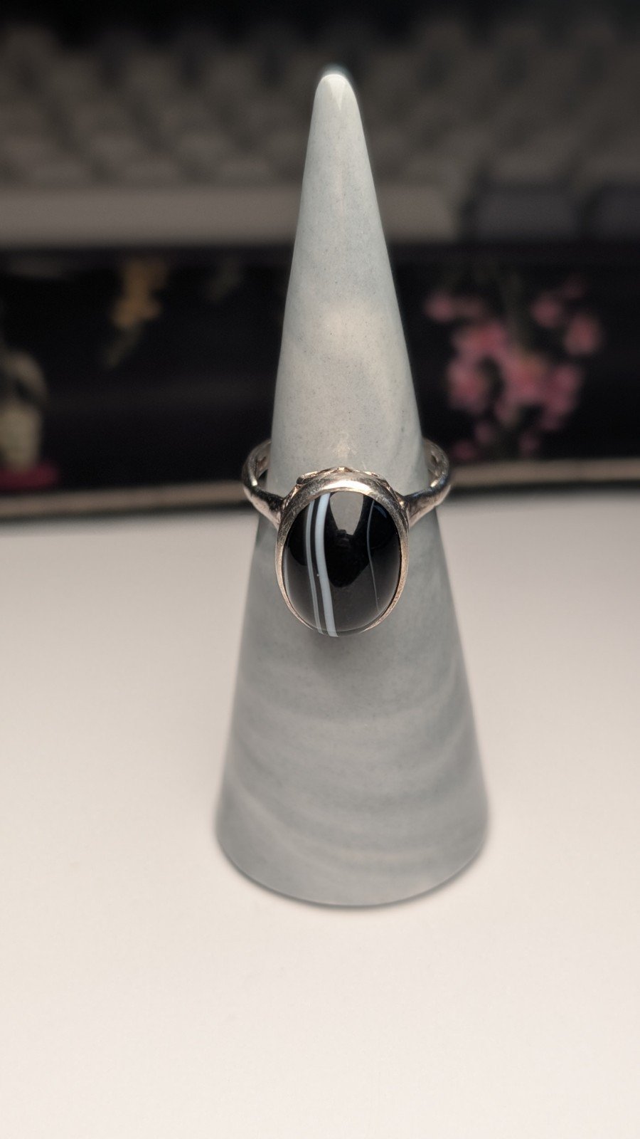 Vintage Sterling Silver 1976 London Black / White Banded Agate Ring | Size M