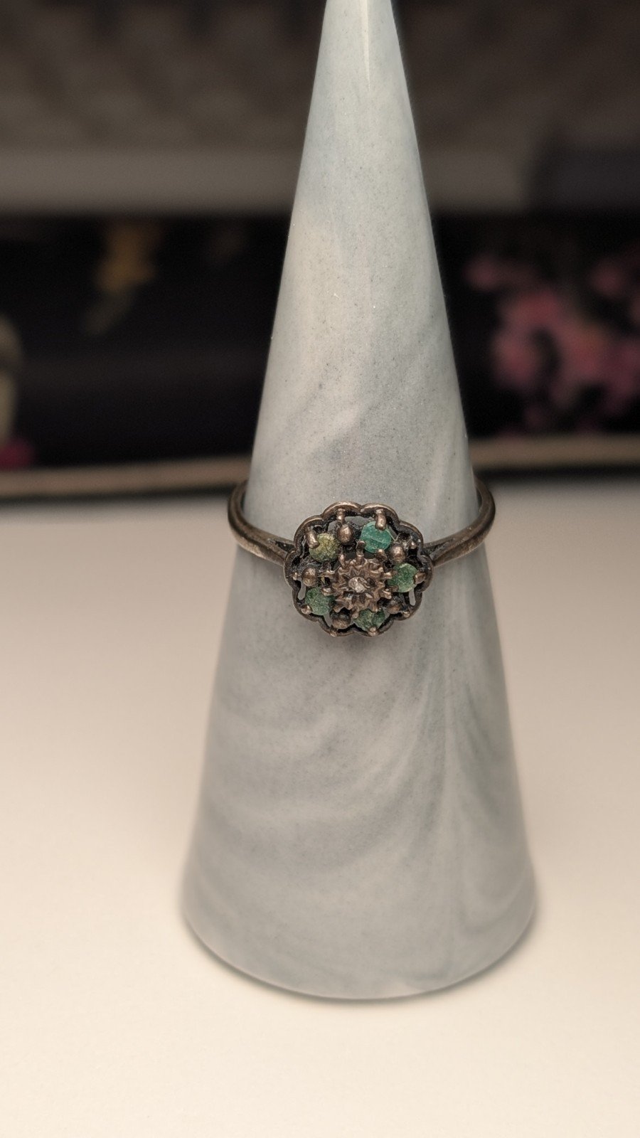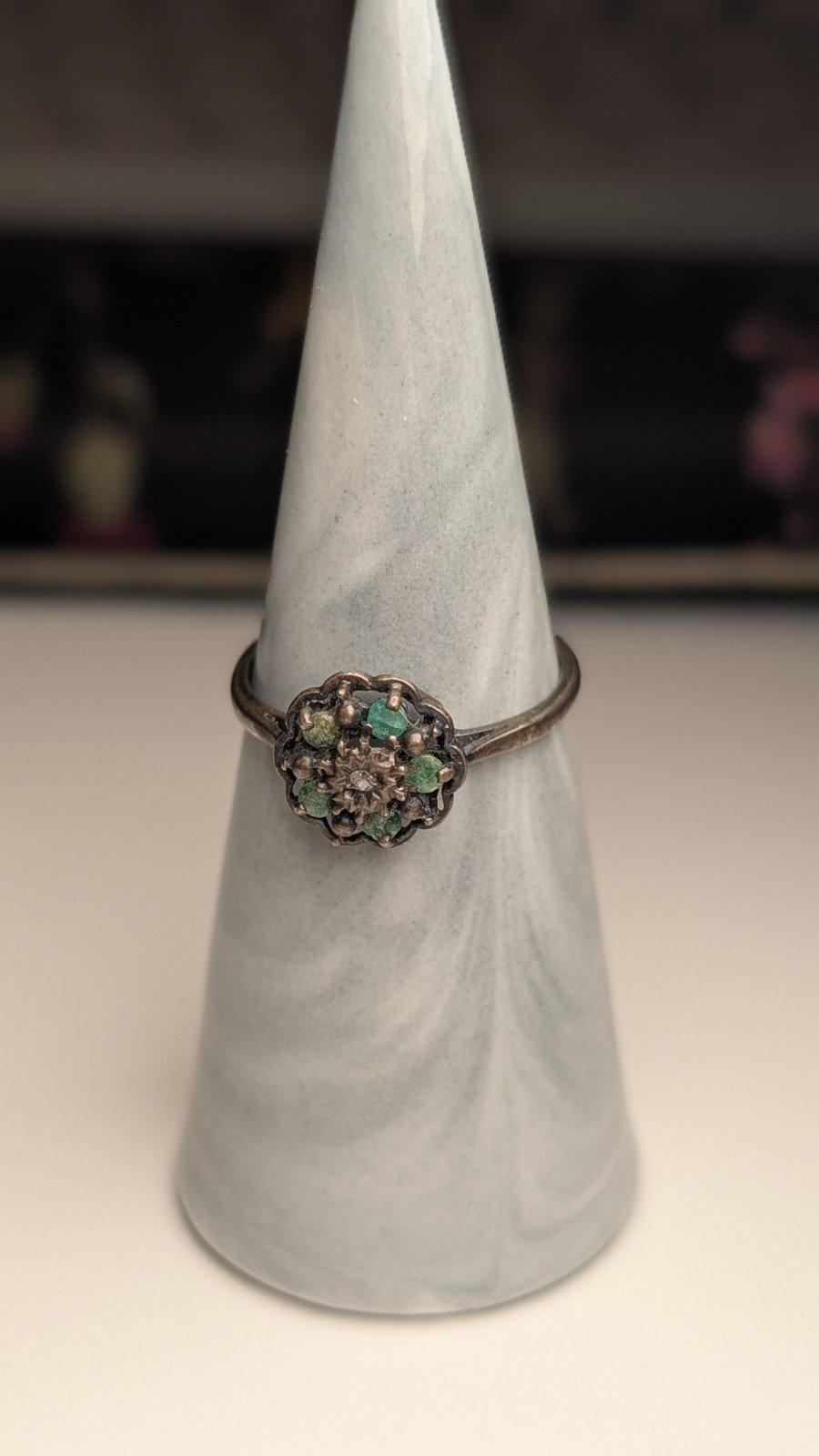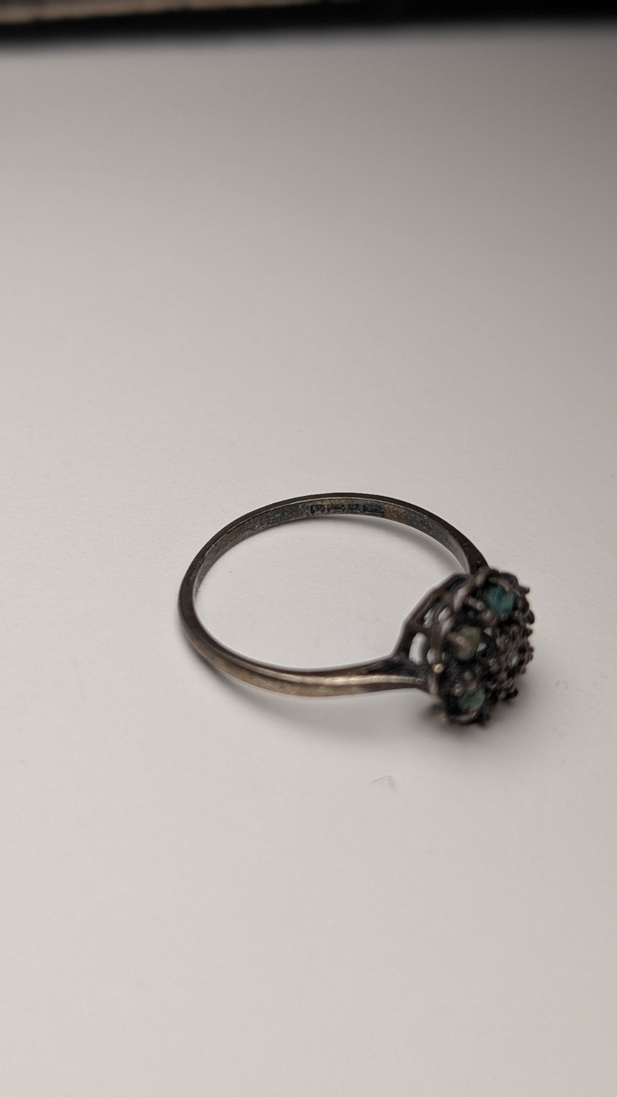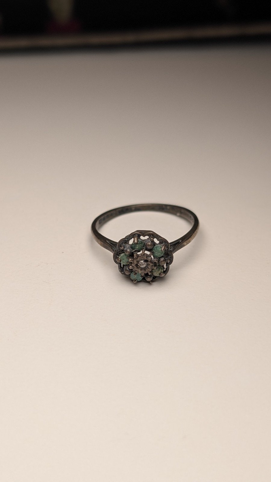 Vintage Sterling Silver 1979 Diamond & Emerald Cluster Ring | Size P 1/2 | 925