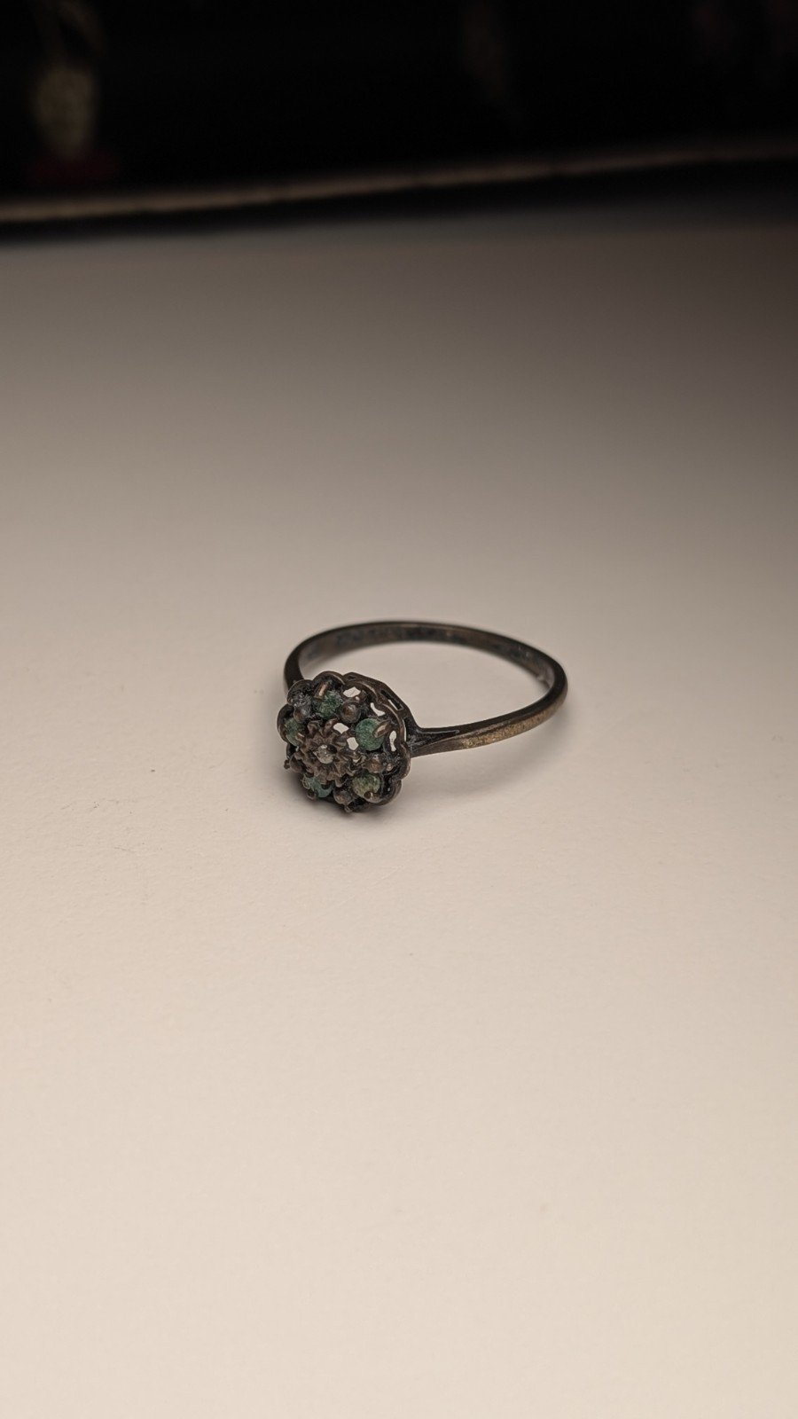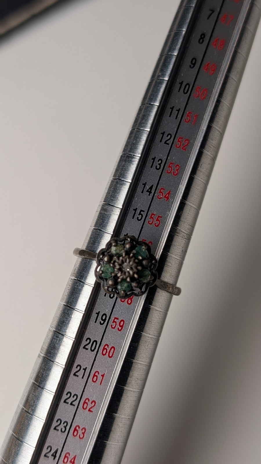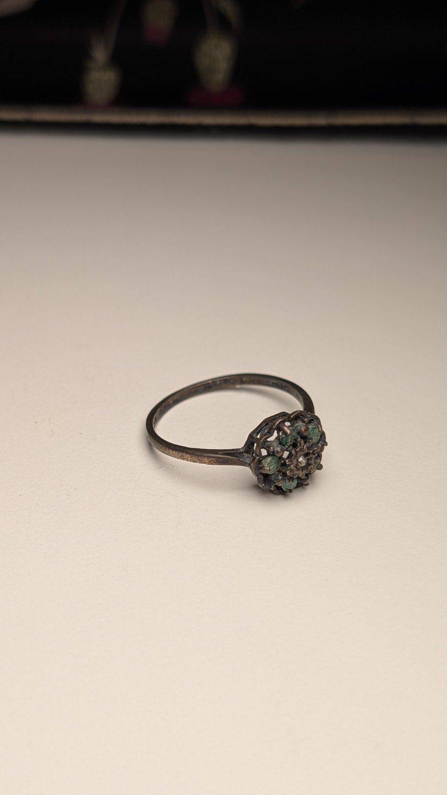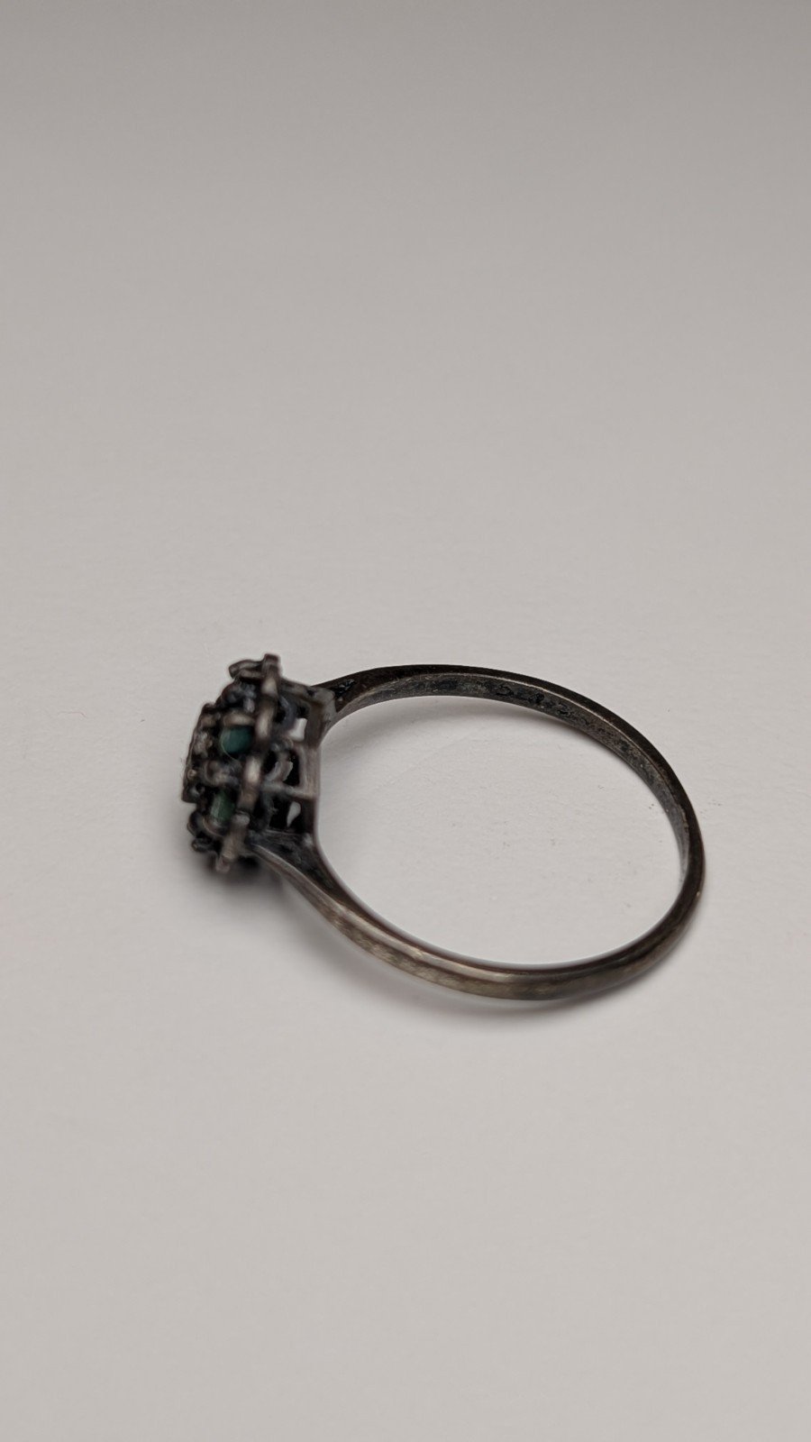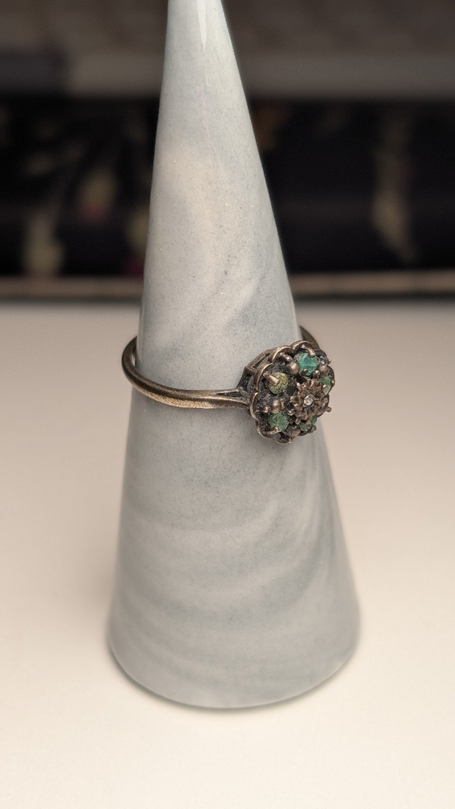 Vintage Sterling Silver 1979 Diamond & Emerald Cluster Ring | Size P 1/2 | 925