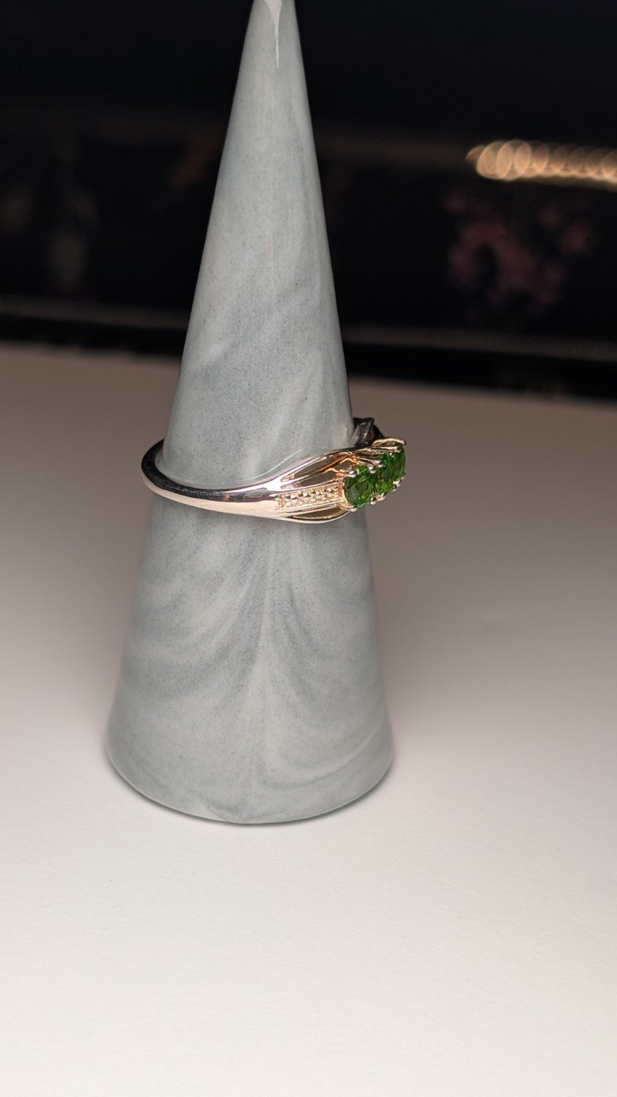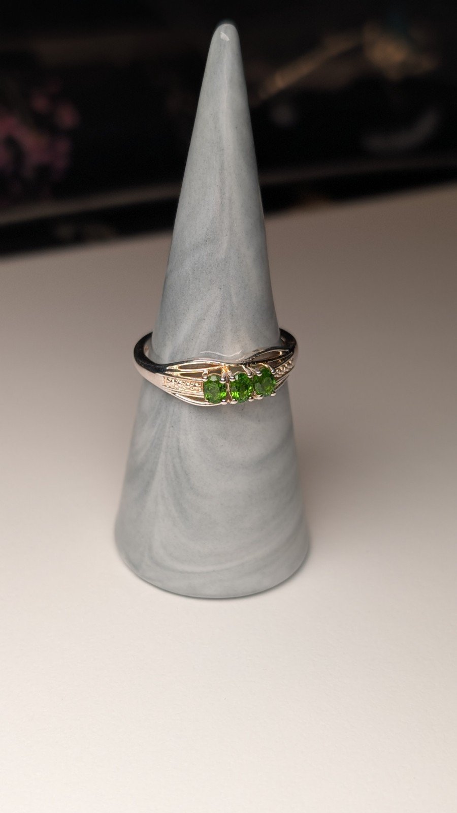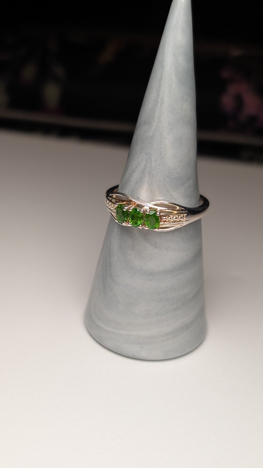 This vintage sterling silver 3 stone trilogy peridot ring is a beautiful piece of jewellery for women.
