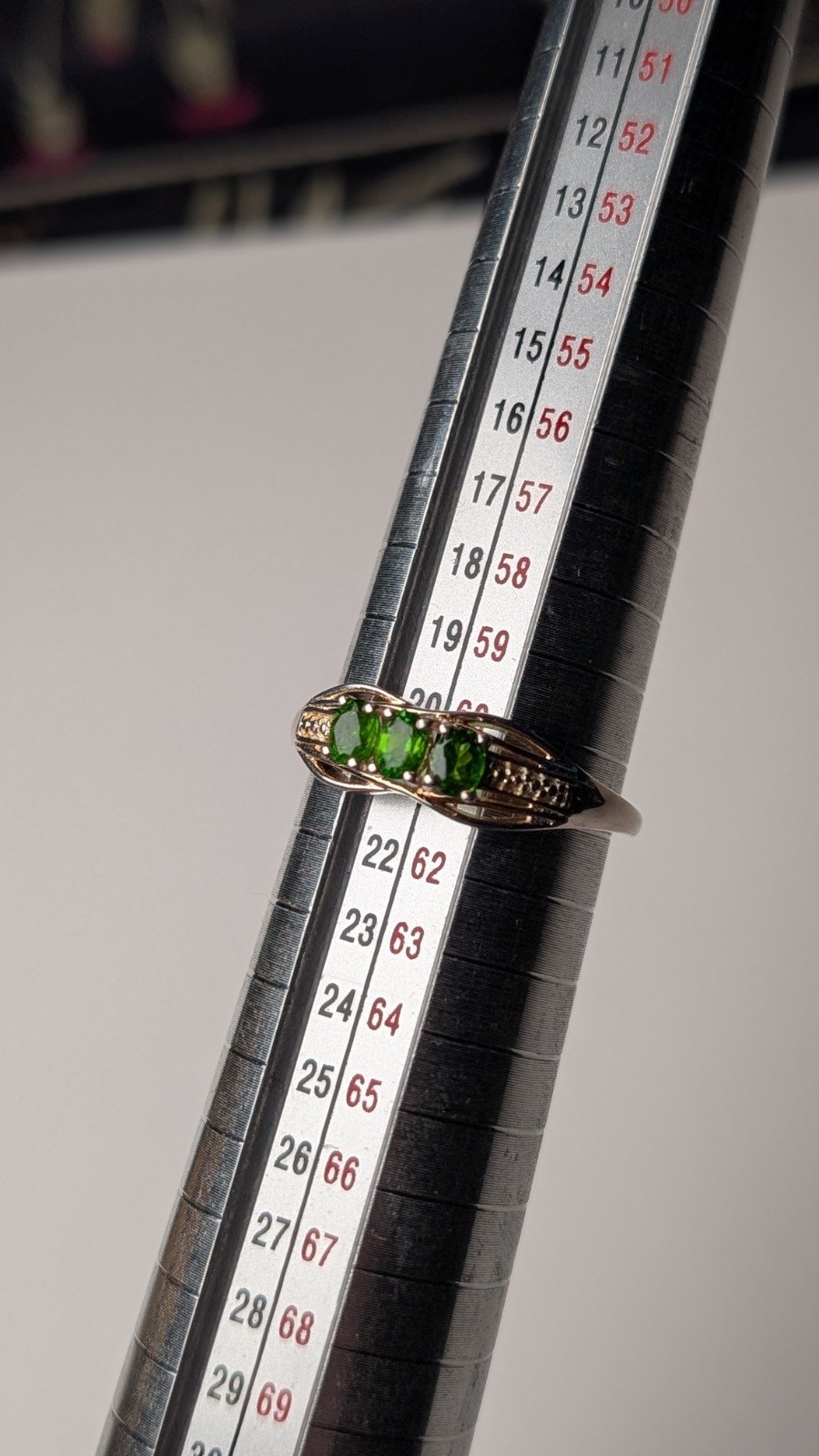 The ring size is S 1/2 and the vibrant green colour of the peridot stones adds a pop of colour to the classic silver design.