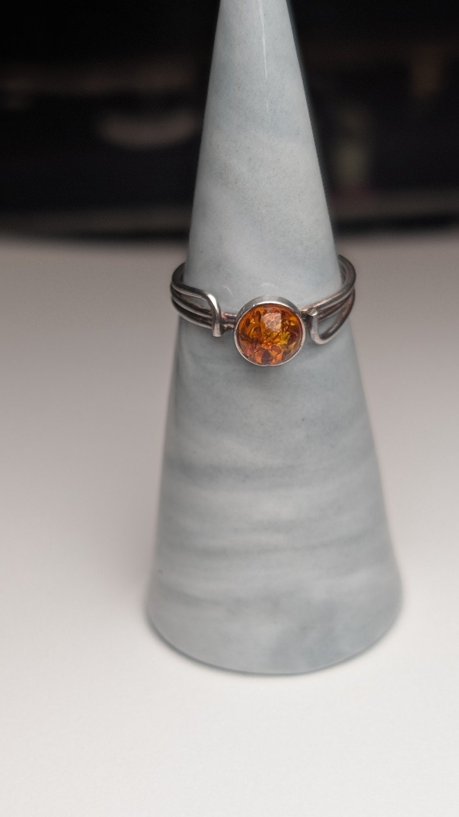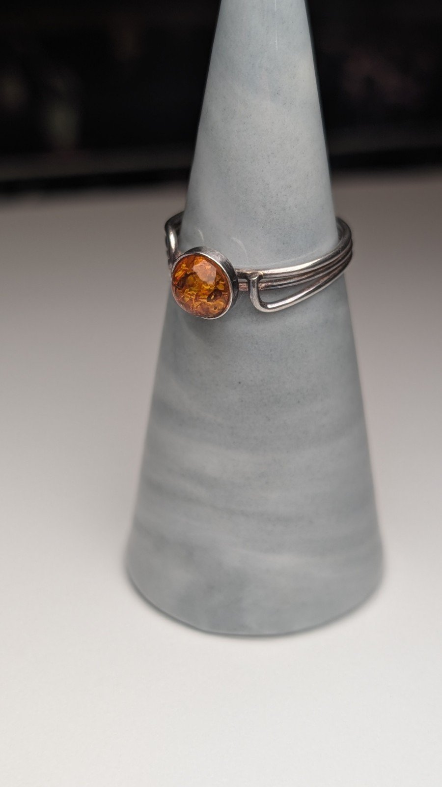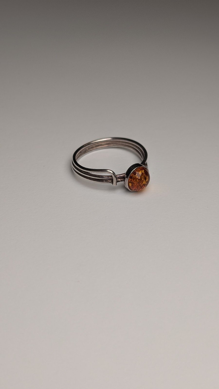 The combination of the vibrant amber stone and the elegant sterling silver metal makes this ring a striking and unique accessory for any outfit.