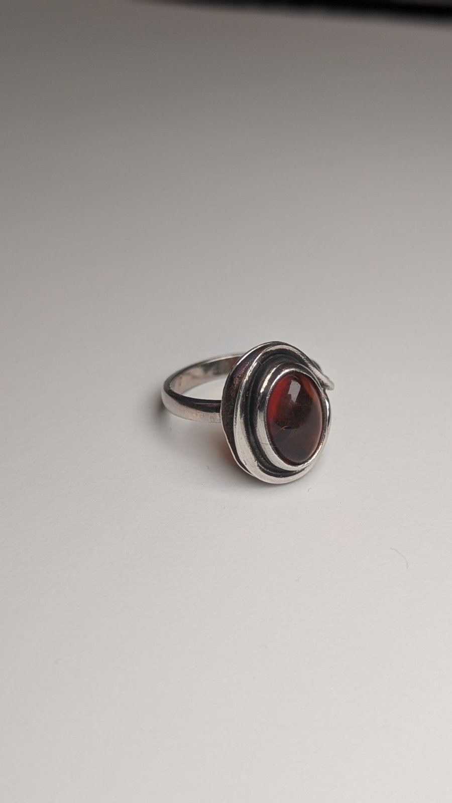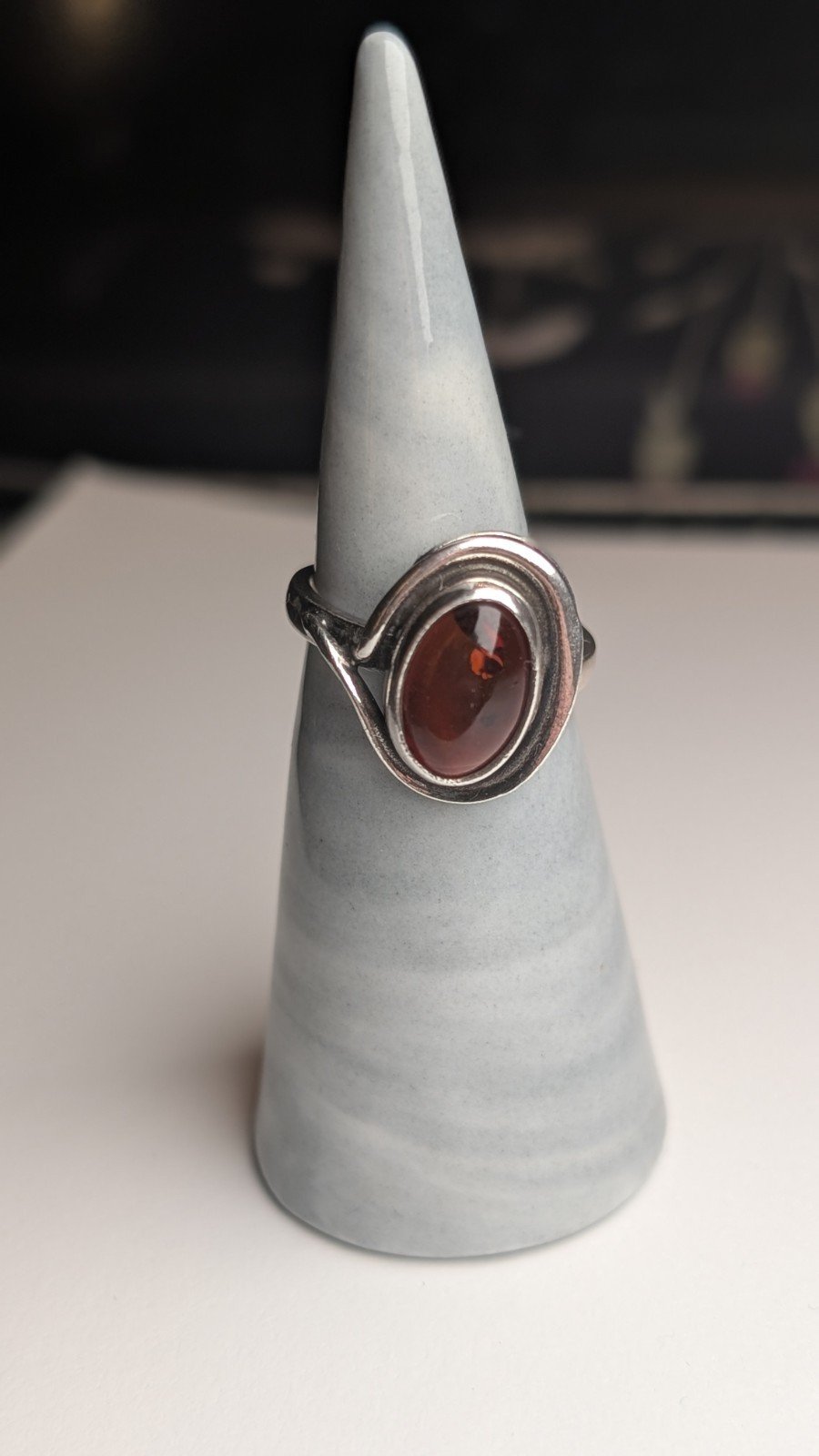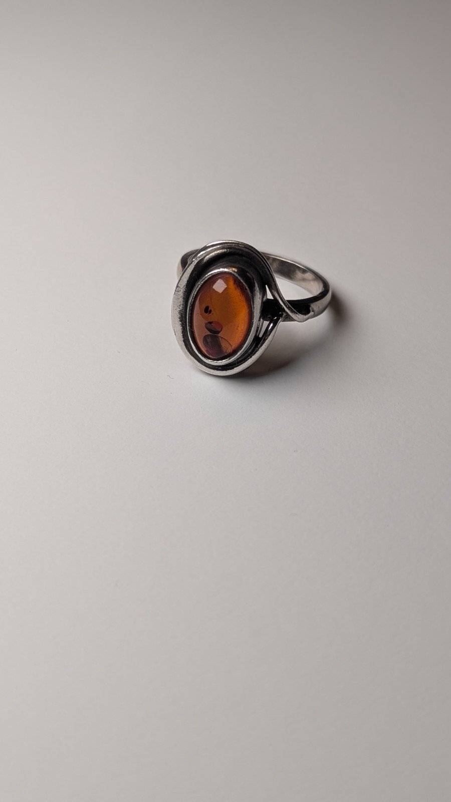 This vintage Sterling Silver Amber Gemstone Ring is a beautiful piece of jewellery, featuring a natural Amber stone set in 925 silver.