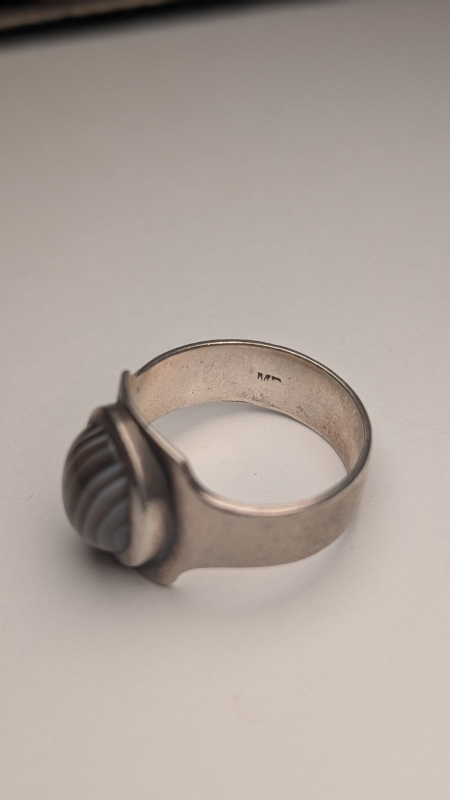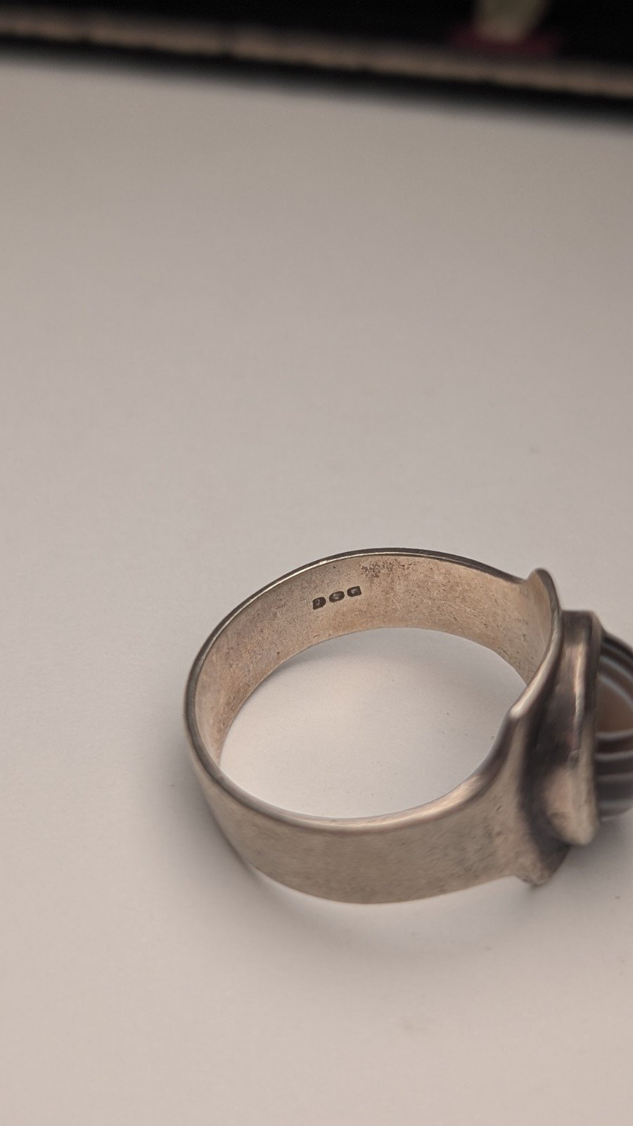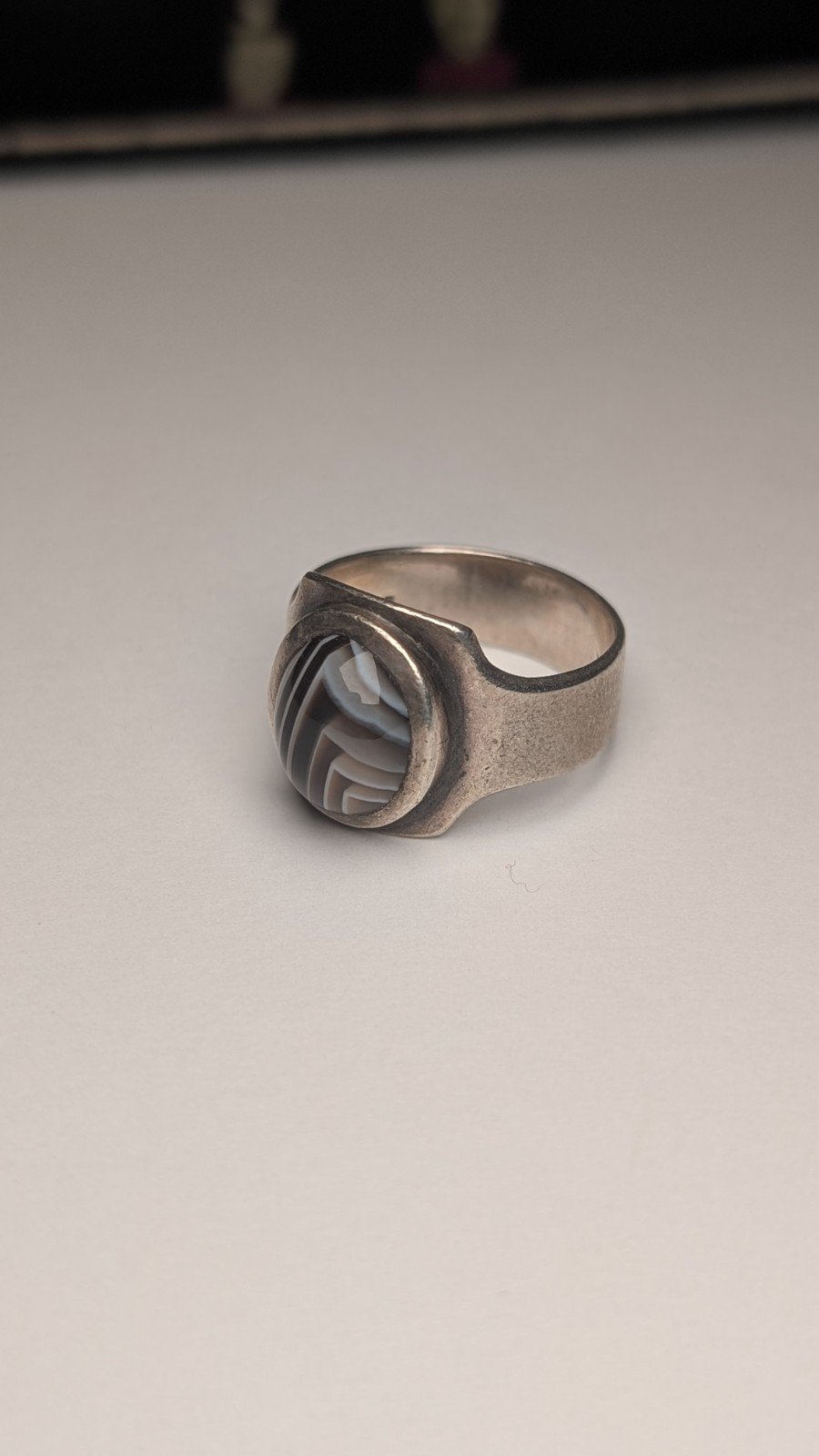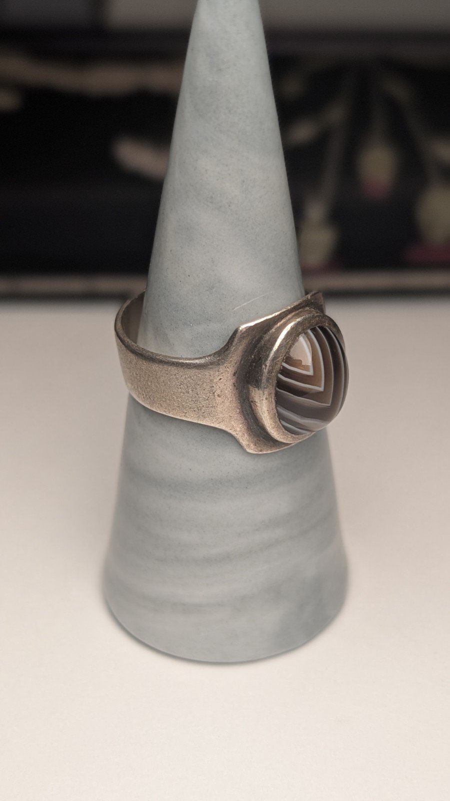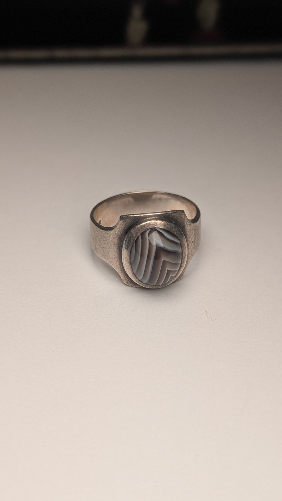 Vintage Sterling Silver Banded Agate Ring | Size T | 925 Silver