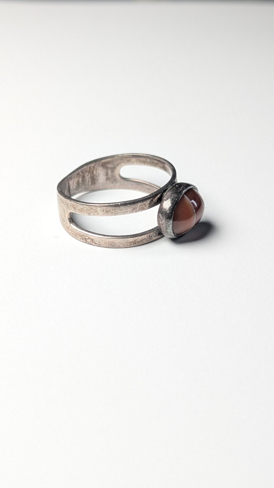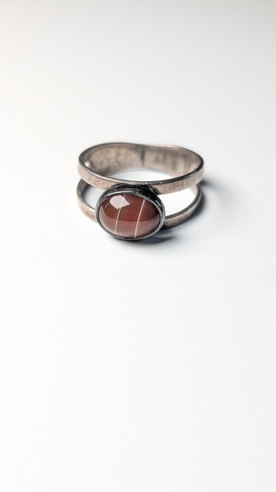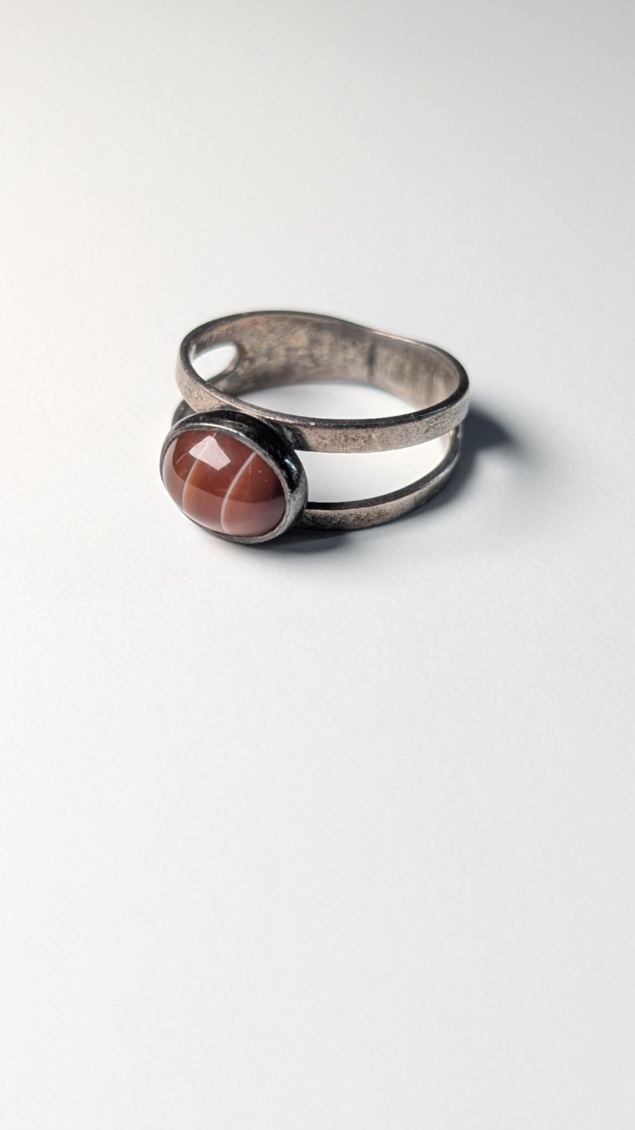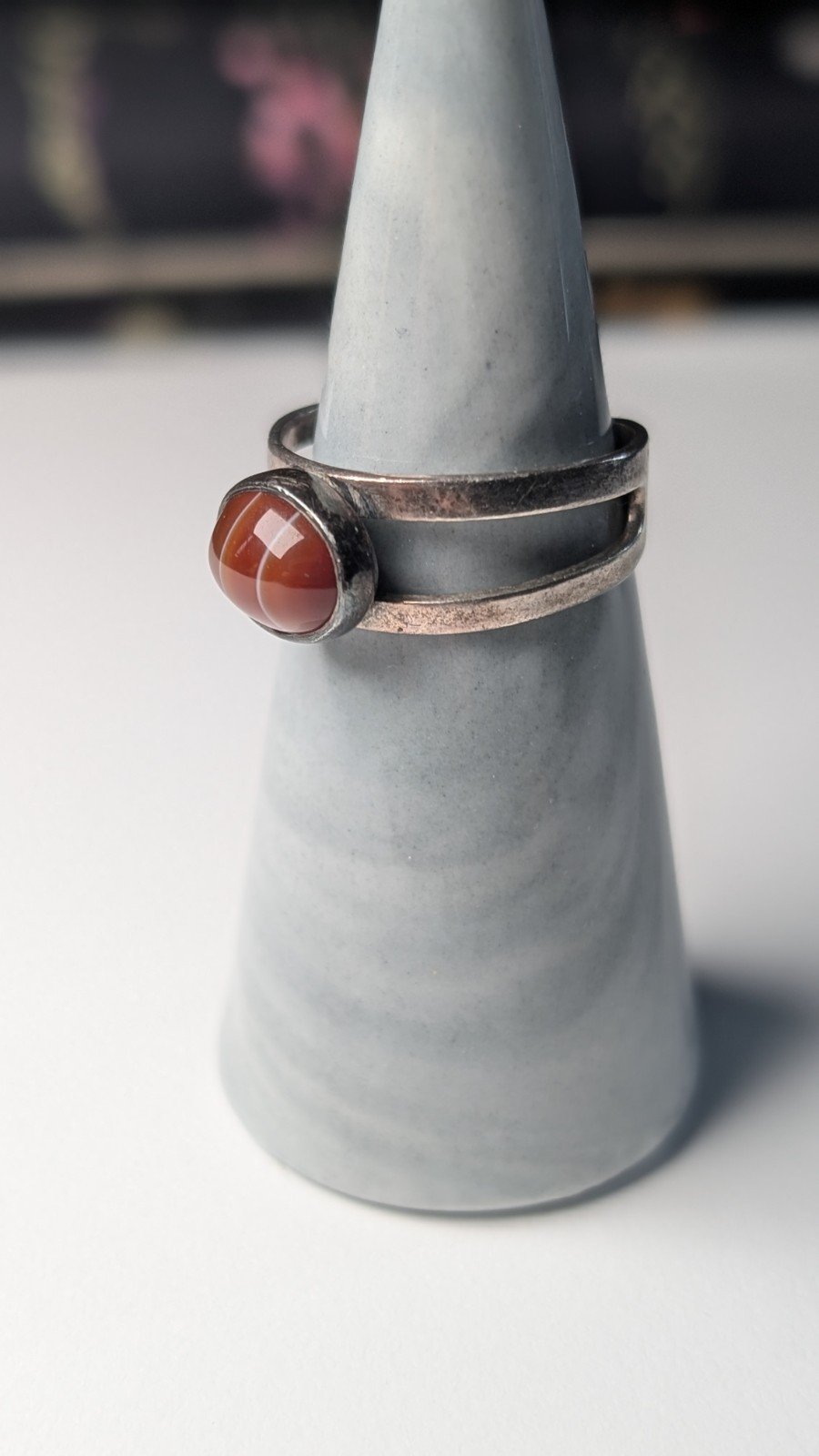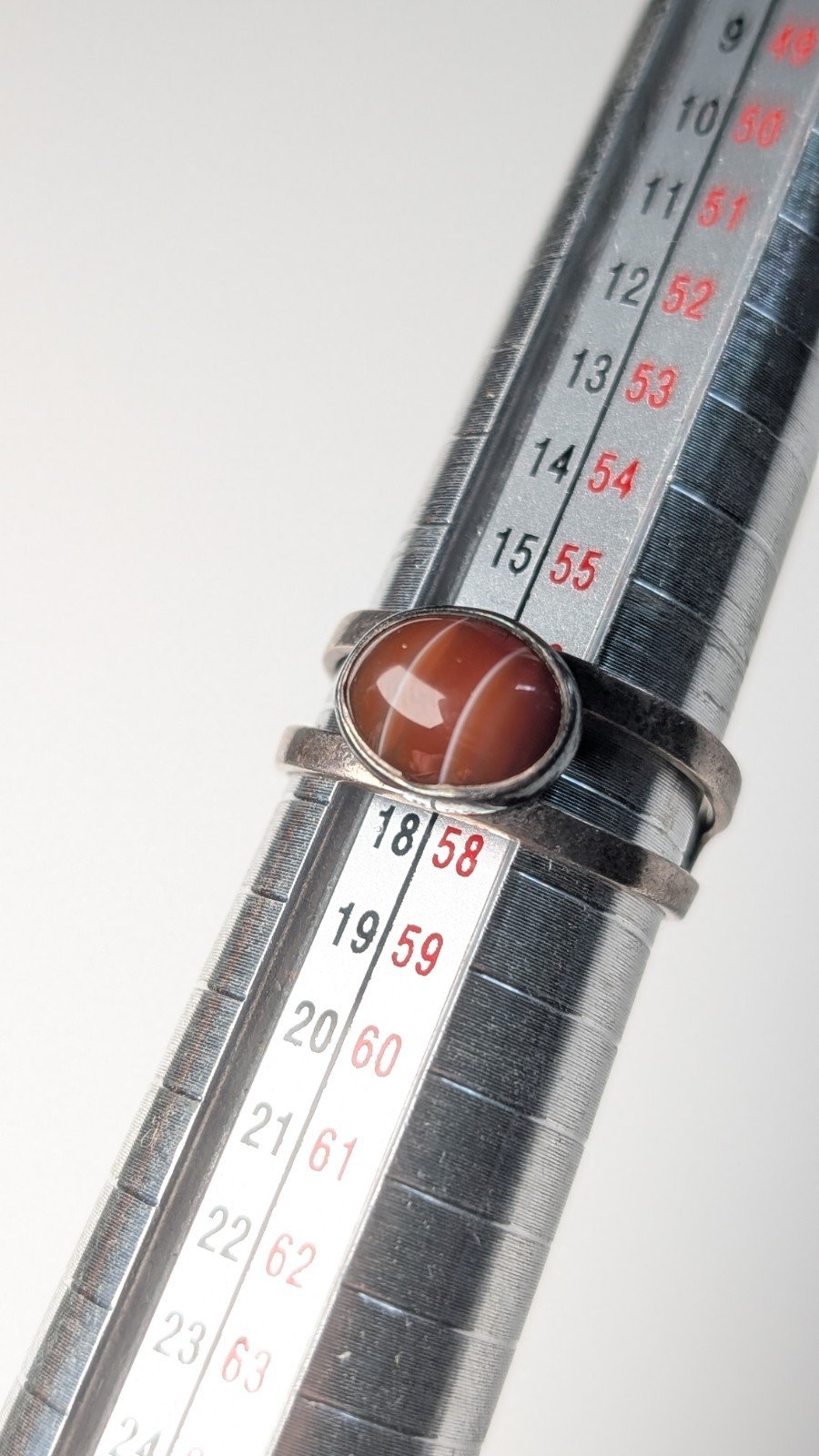 This vintage sterling silver banded red agate ring, with a ring size of P 1/2, is a classic piece of jewellery made from 925 silver.