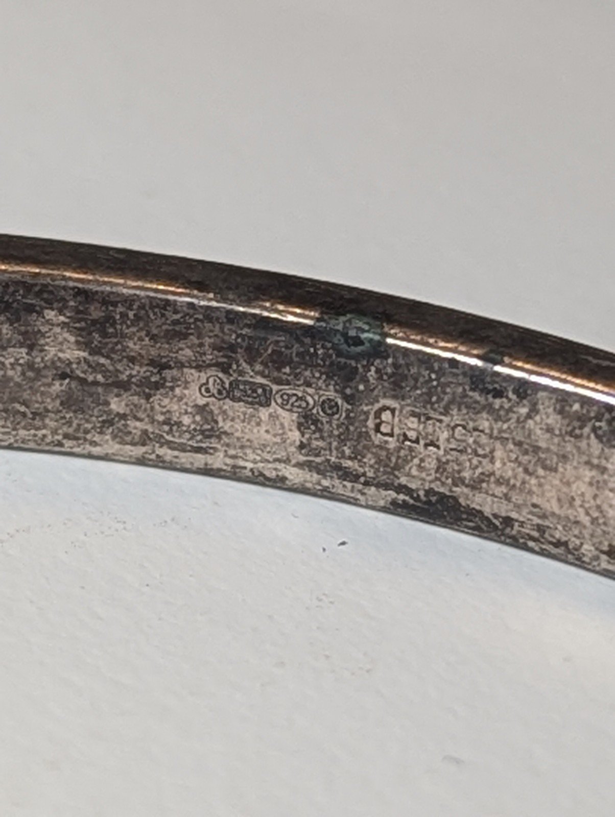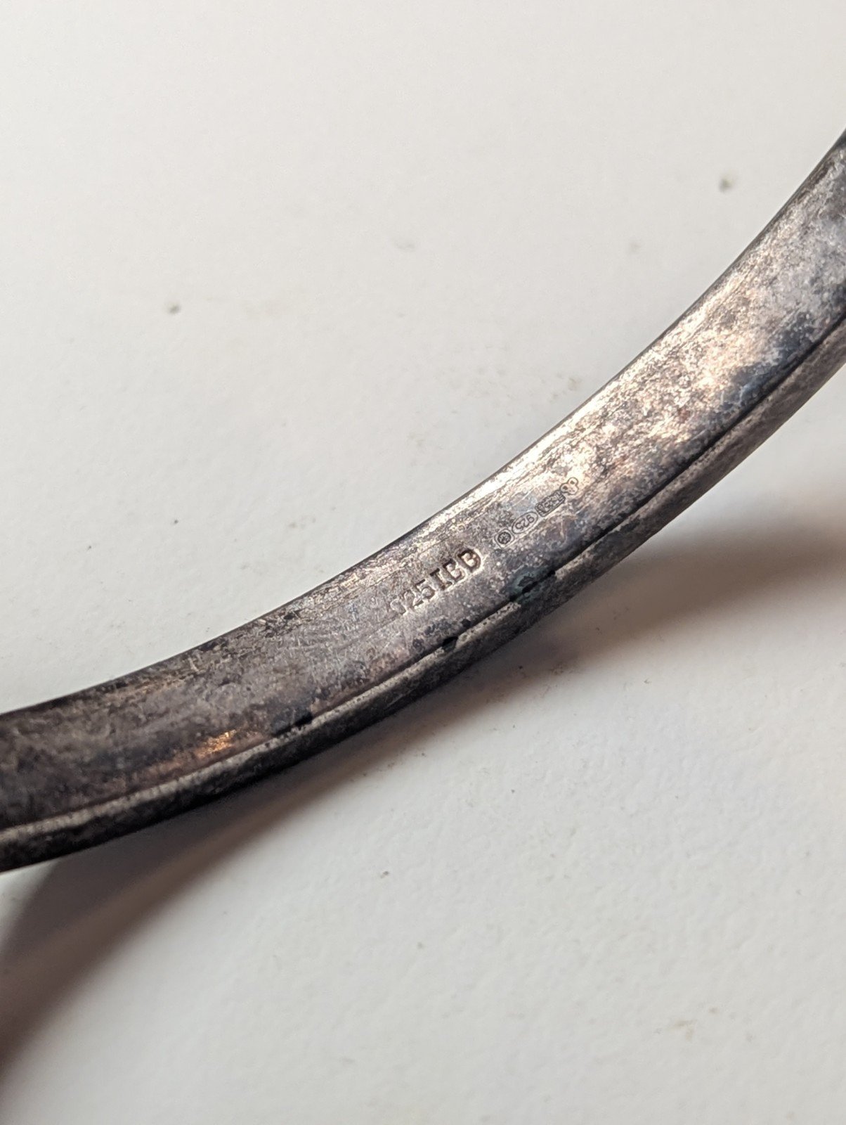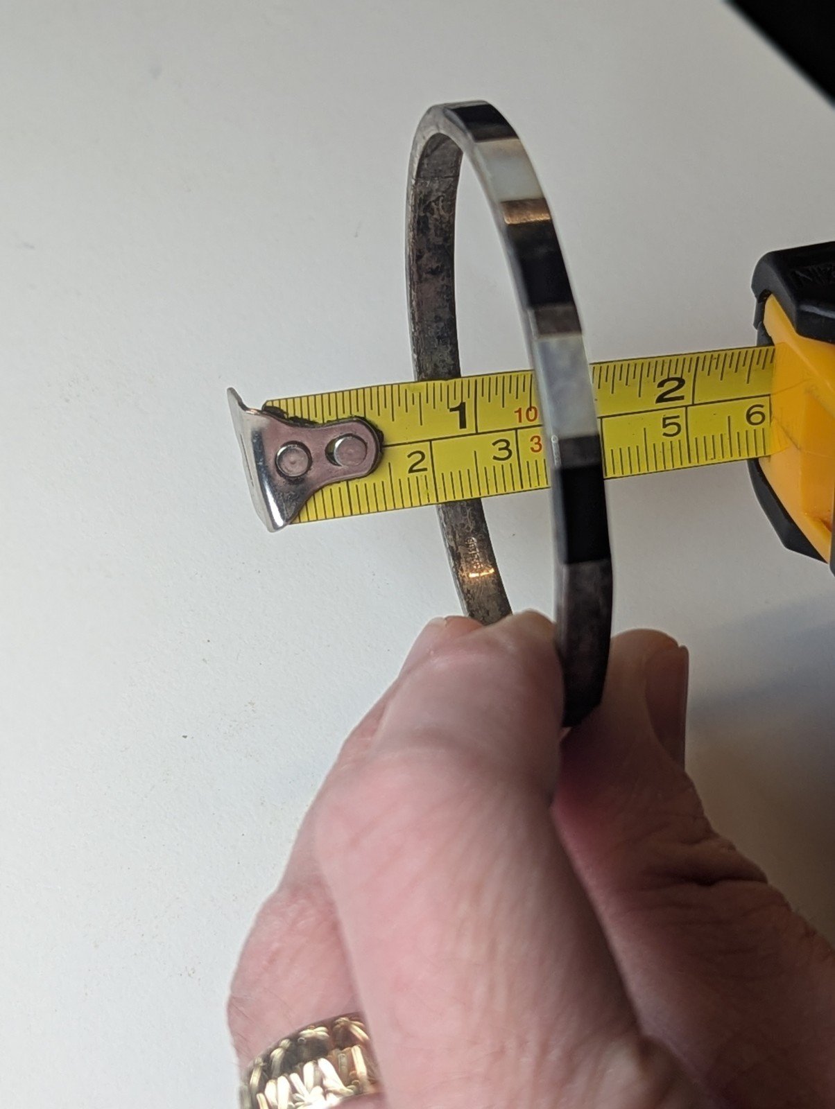 Vintage Sterling Silver Black Onyx & Mother Of Pearl Bangle | 12g | 925 Silver