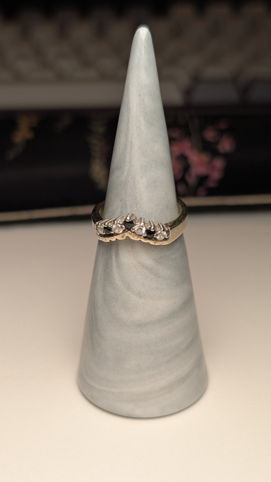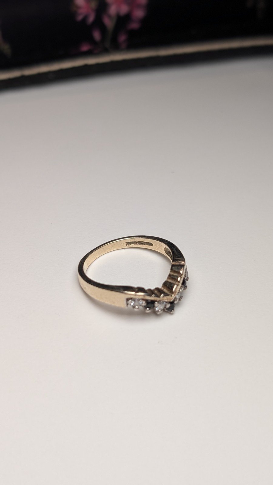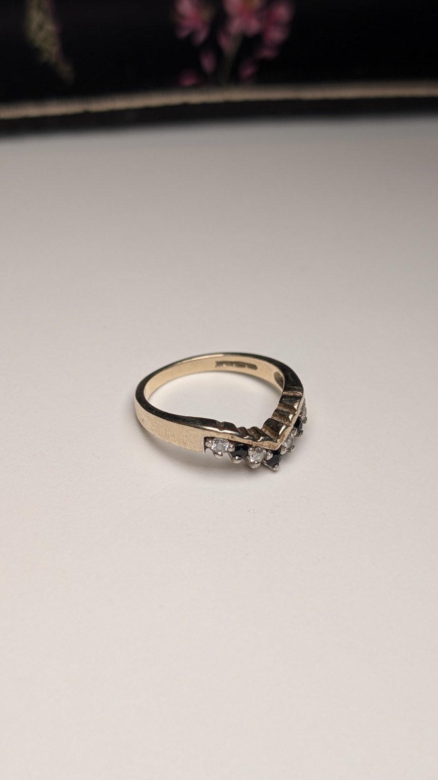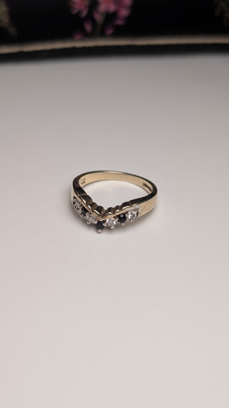 Vintage Sterling Silver Blue & Clear CZ Wishbone Chevron Ring | Size L 1/2 | 925