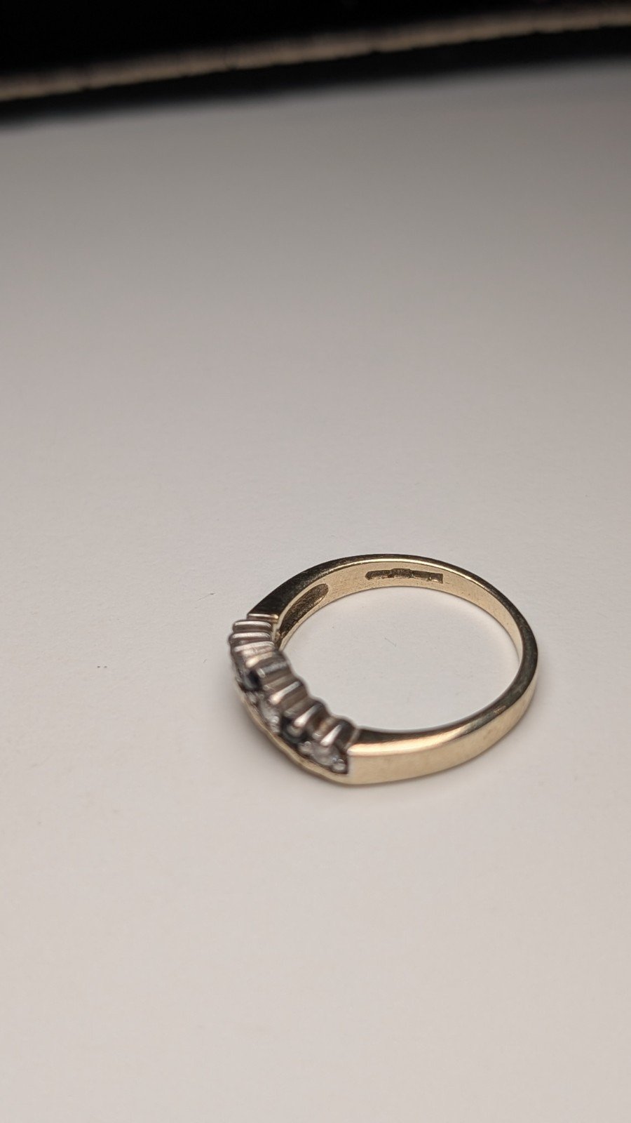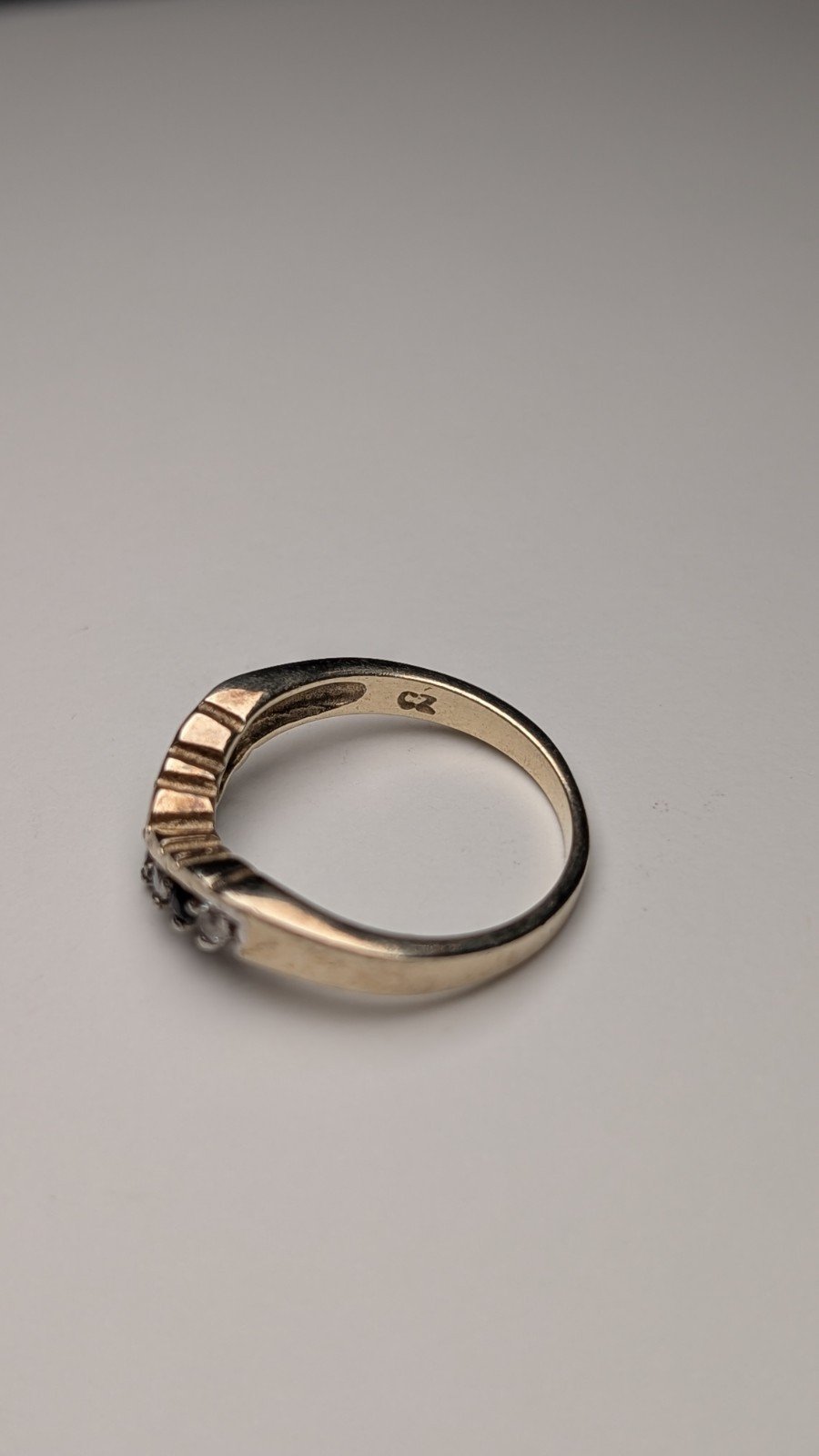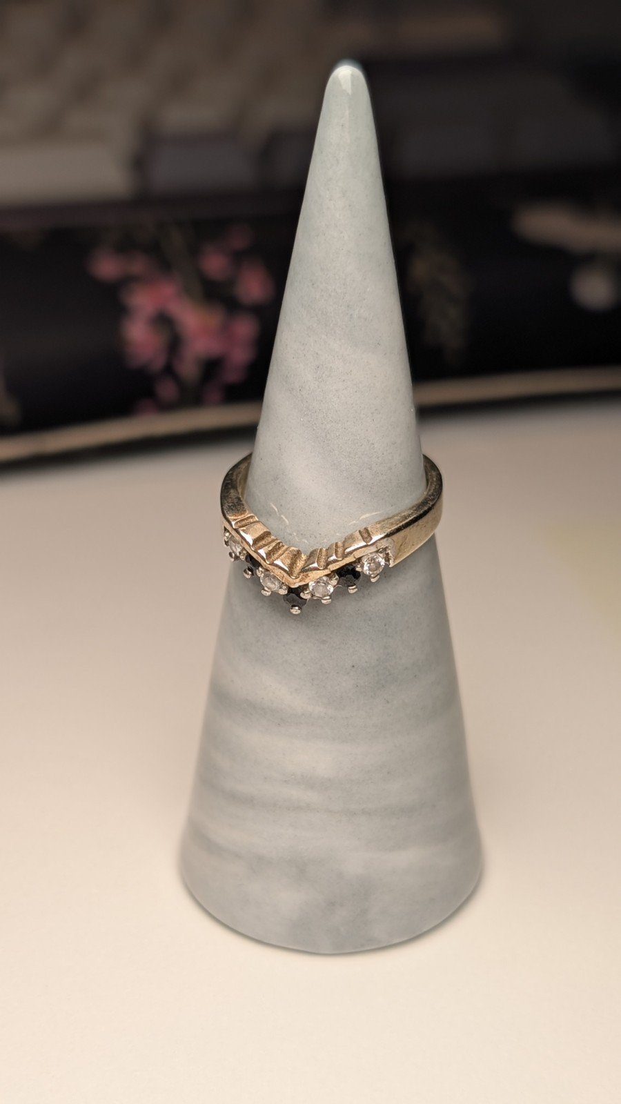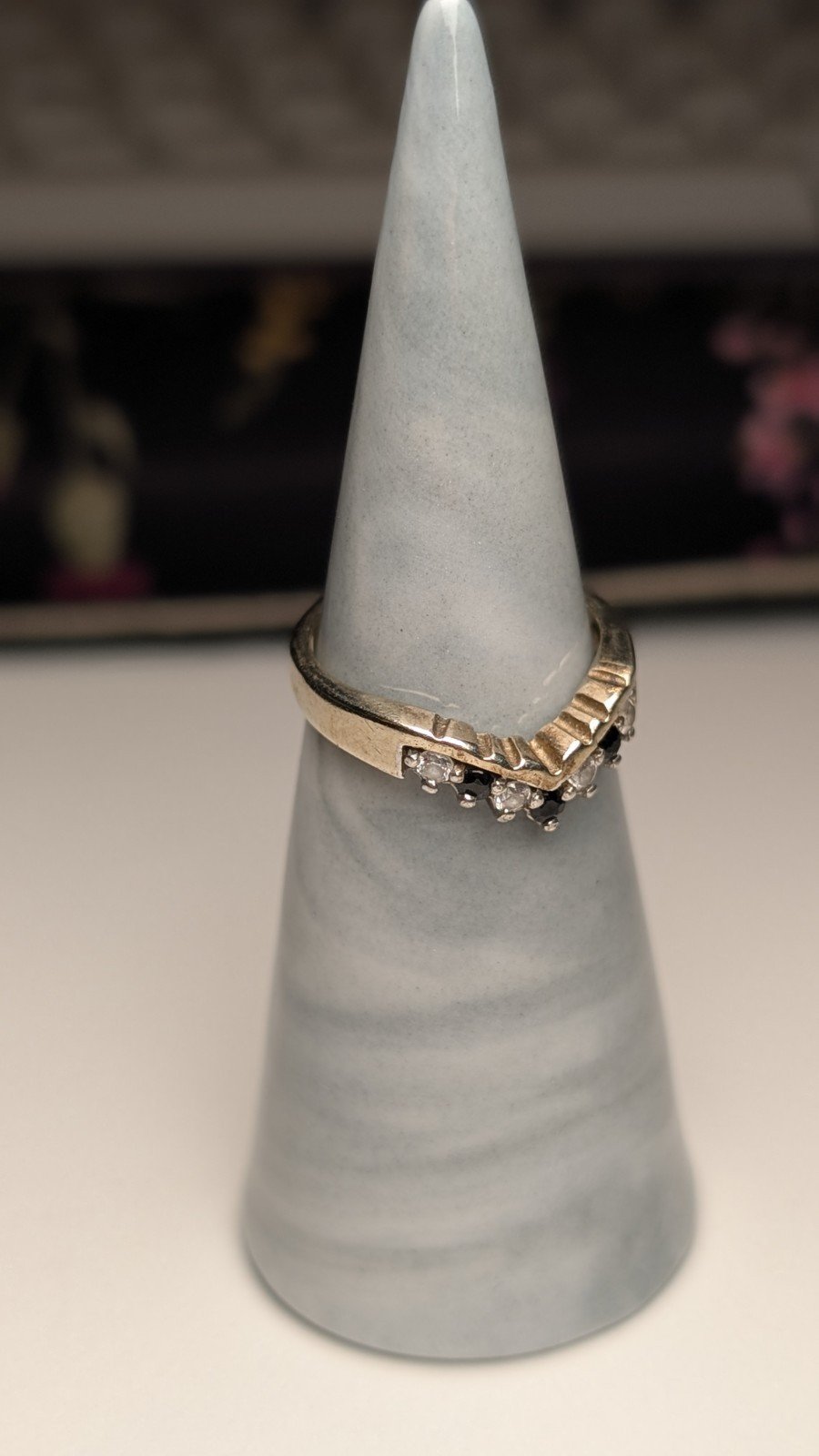 Vintage Sterling Silver Blue & Clear CZ Wishbone Chevron Ring | Size L 1/2 | 925