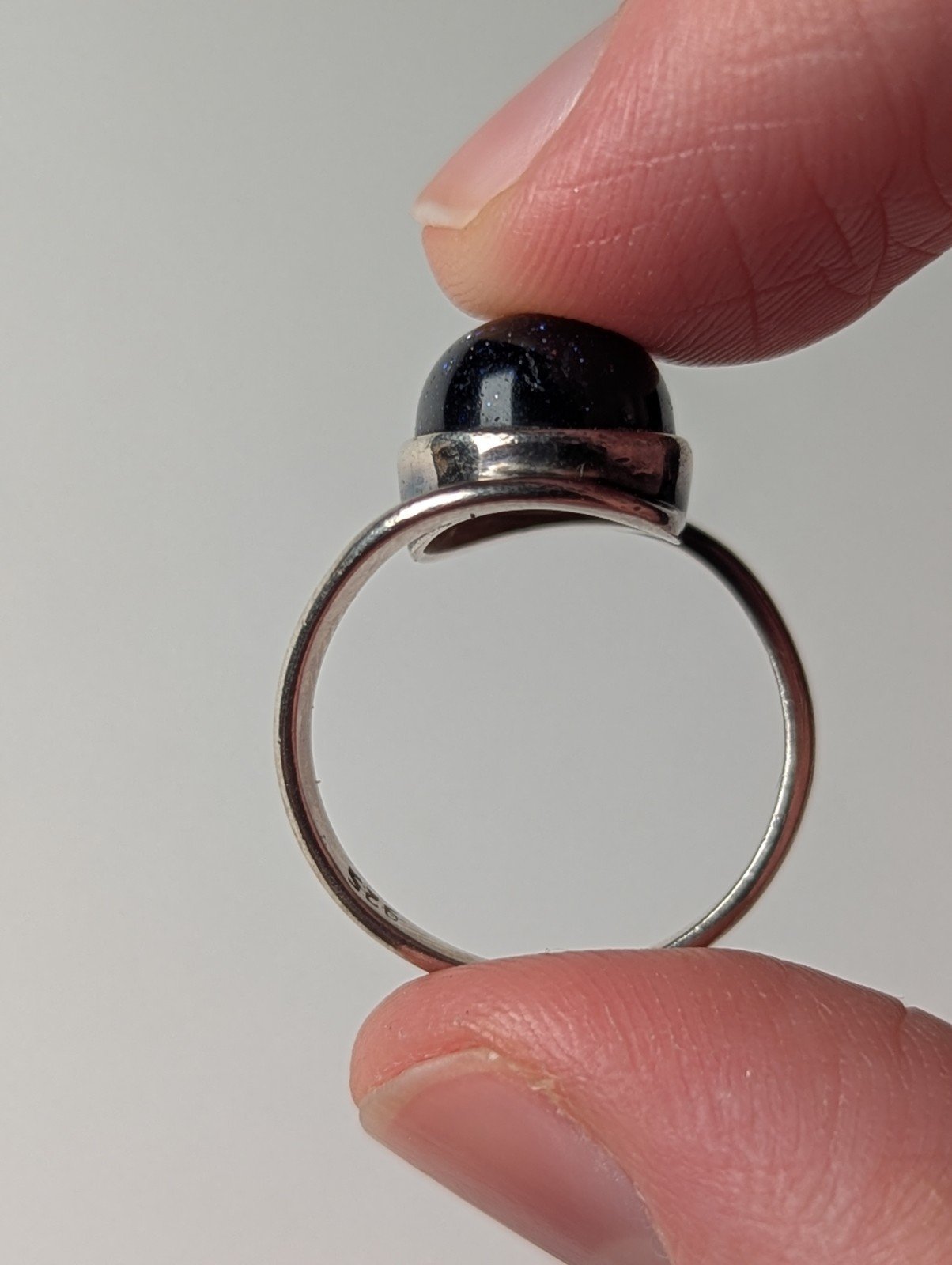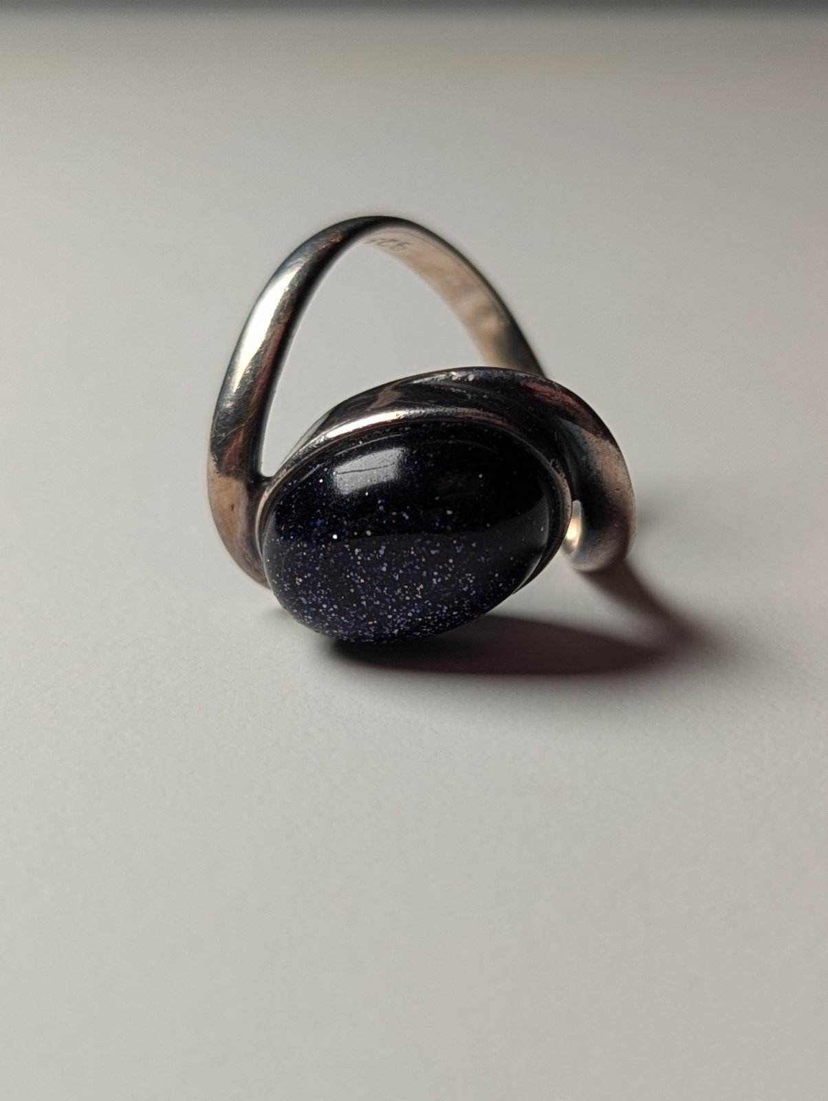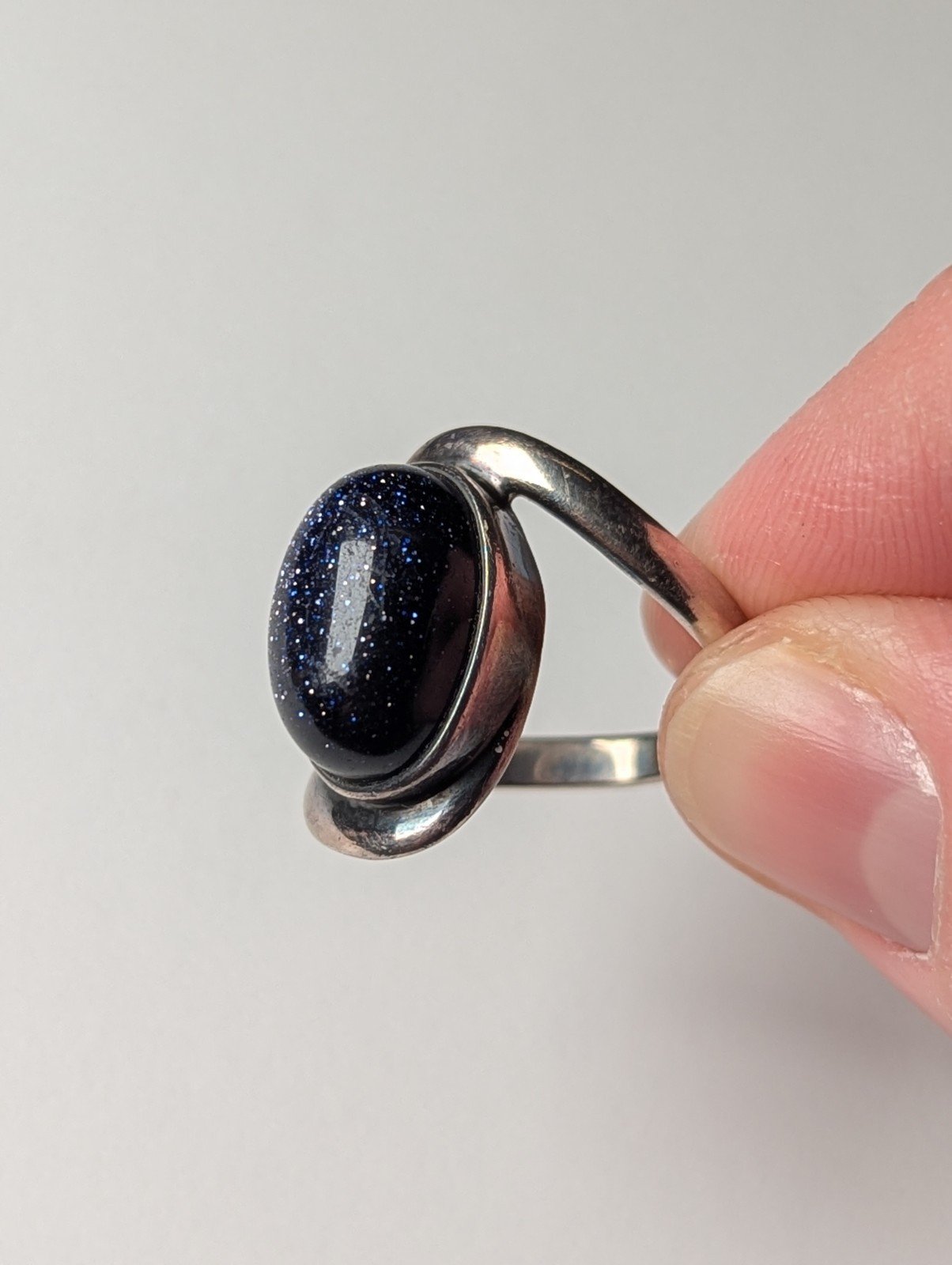 Vintage Sterling Silver Blue Goldstone Ring | Size N | 925 Silver