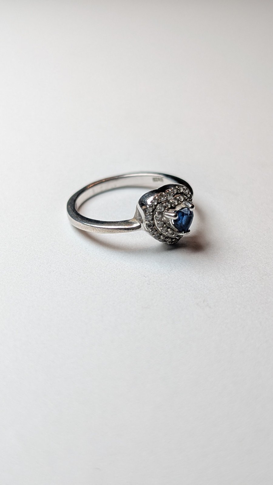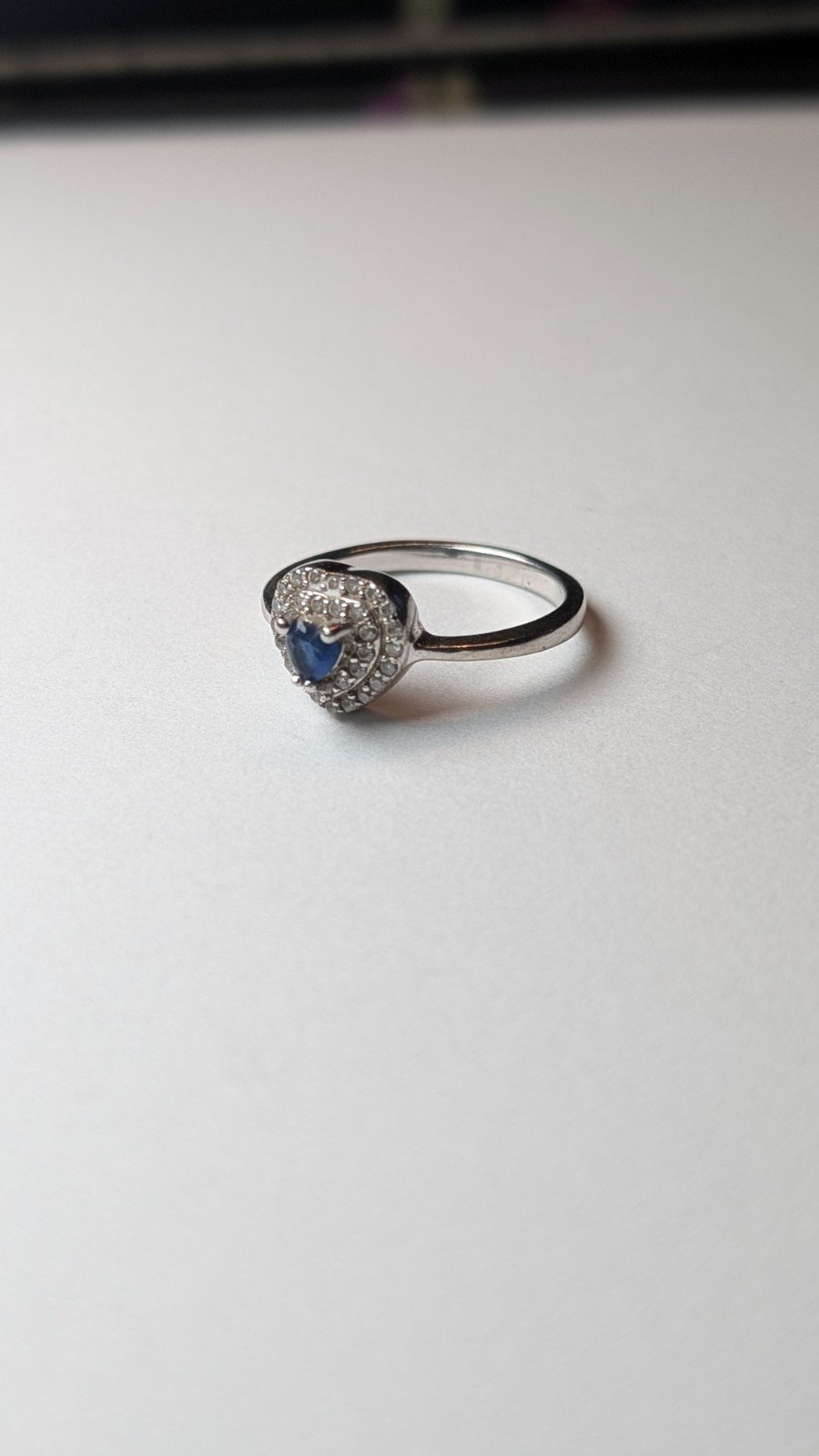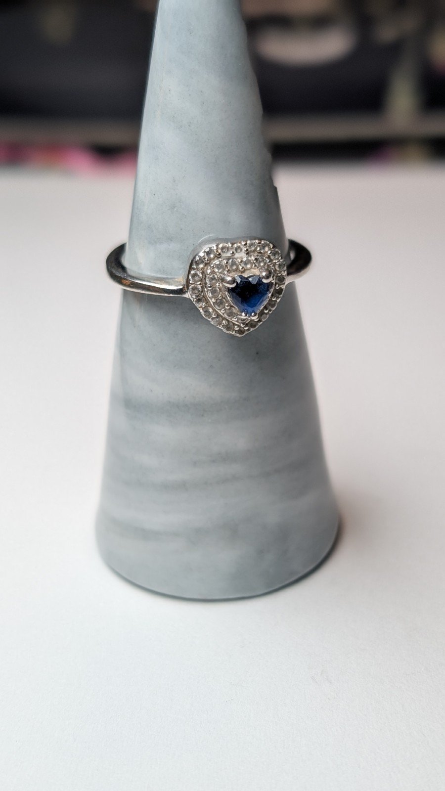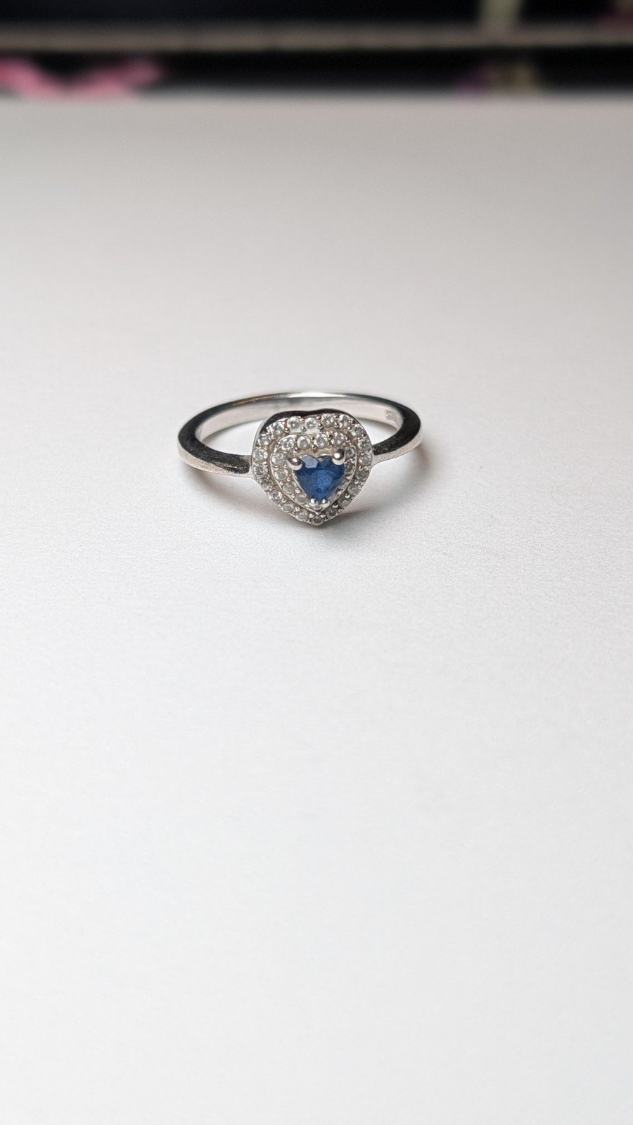 Crafted from 925 silver and hallmarked as genuine, this original ring features a charming heart shape blue Gemstone design with a cluster of white/colourless gemstones adding a touch of elegance.