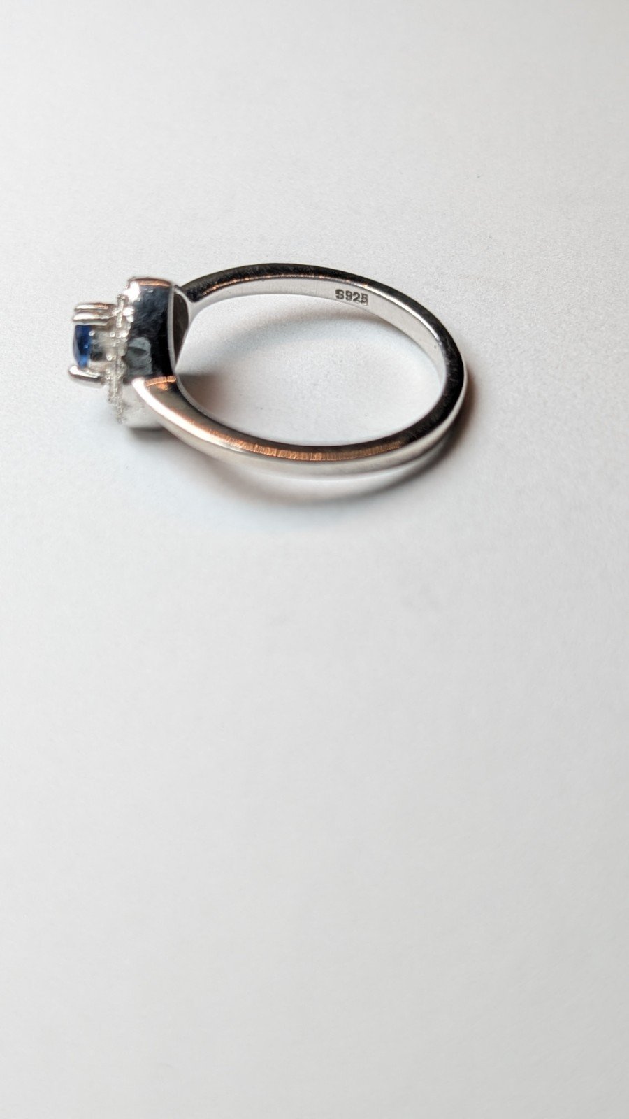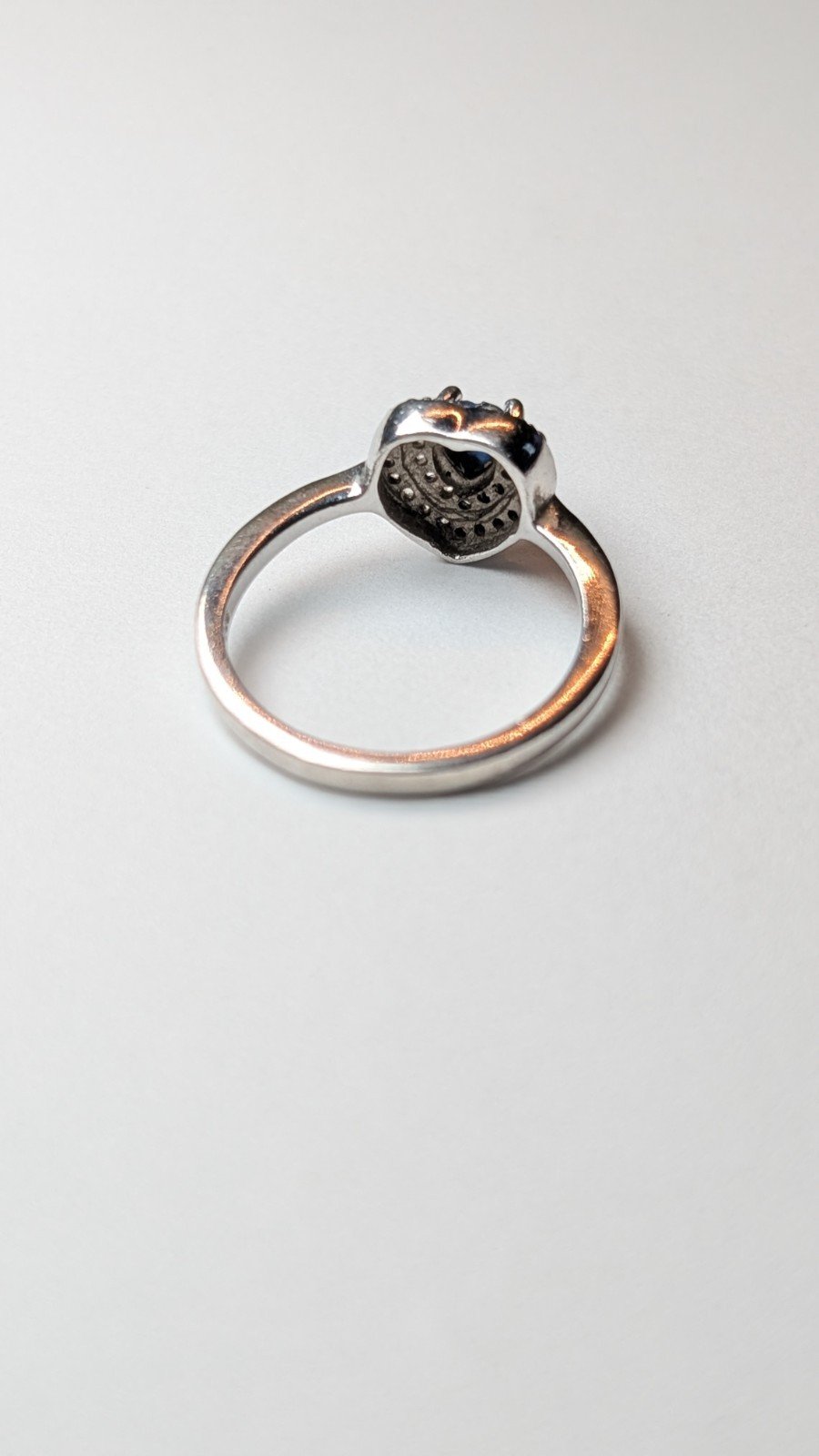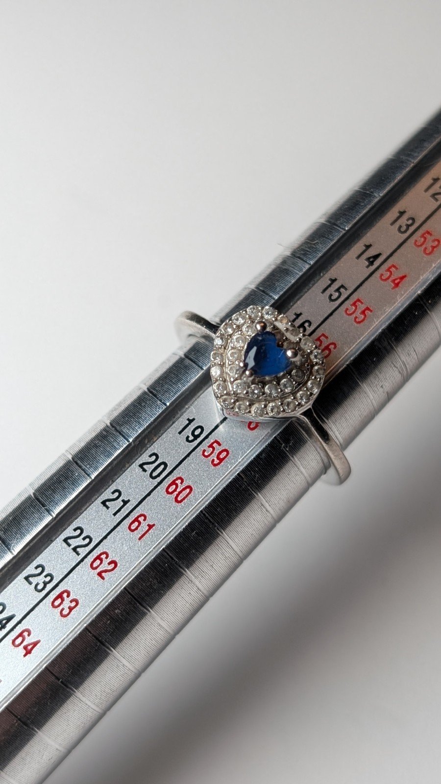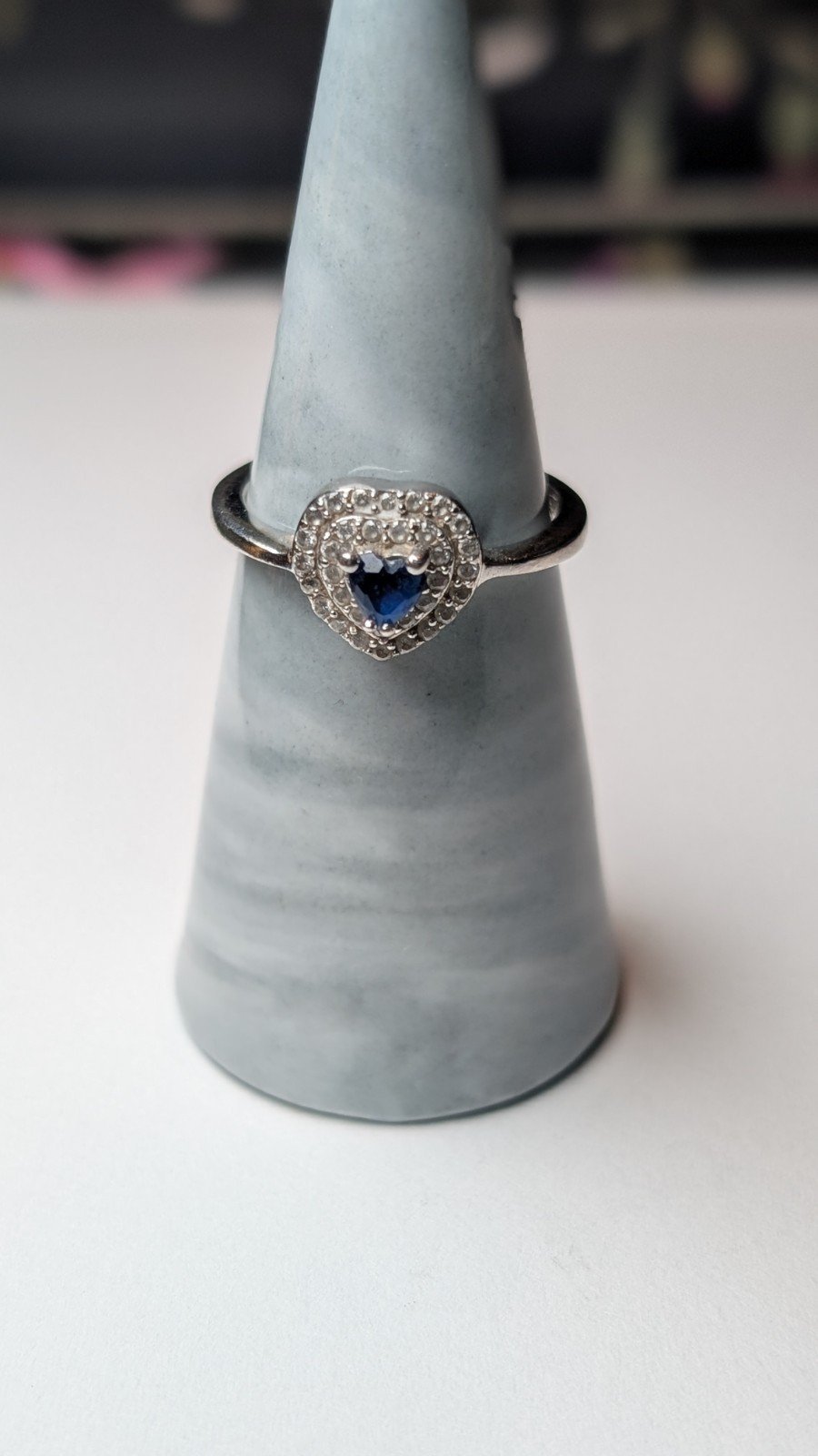 Crafted from 925 silver and hallmarked as genuine, this original ring features a charming heart shape blue Gemstone design with a cluster of white/colourless gemstones adding a touch of elegance.