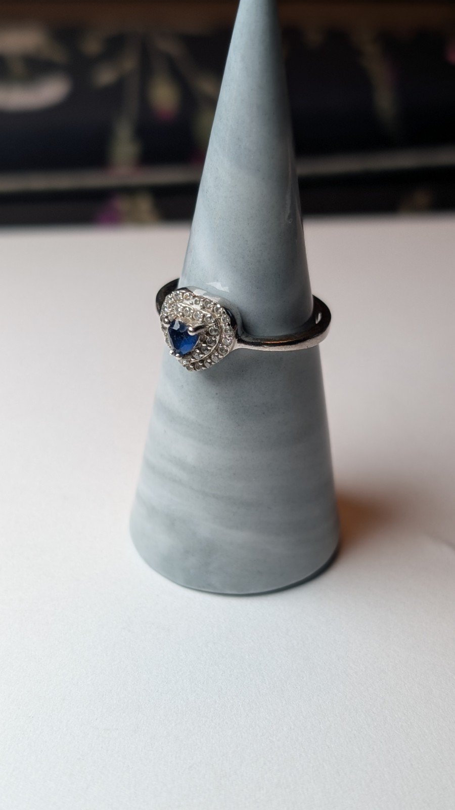 This Vintage Sterling Silver Blue Heart Gemstone Cluster Ring in size Q is a timeless piece of fine jewellery.