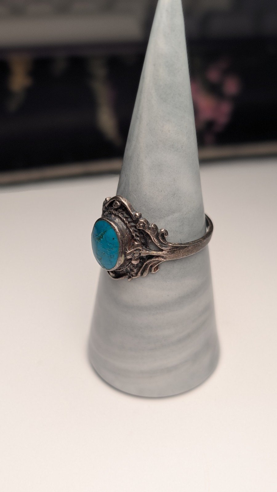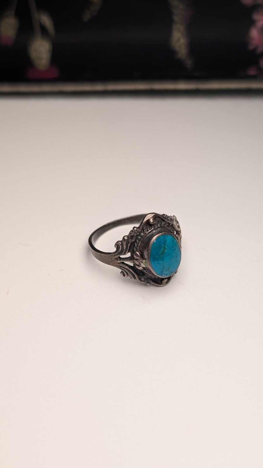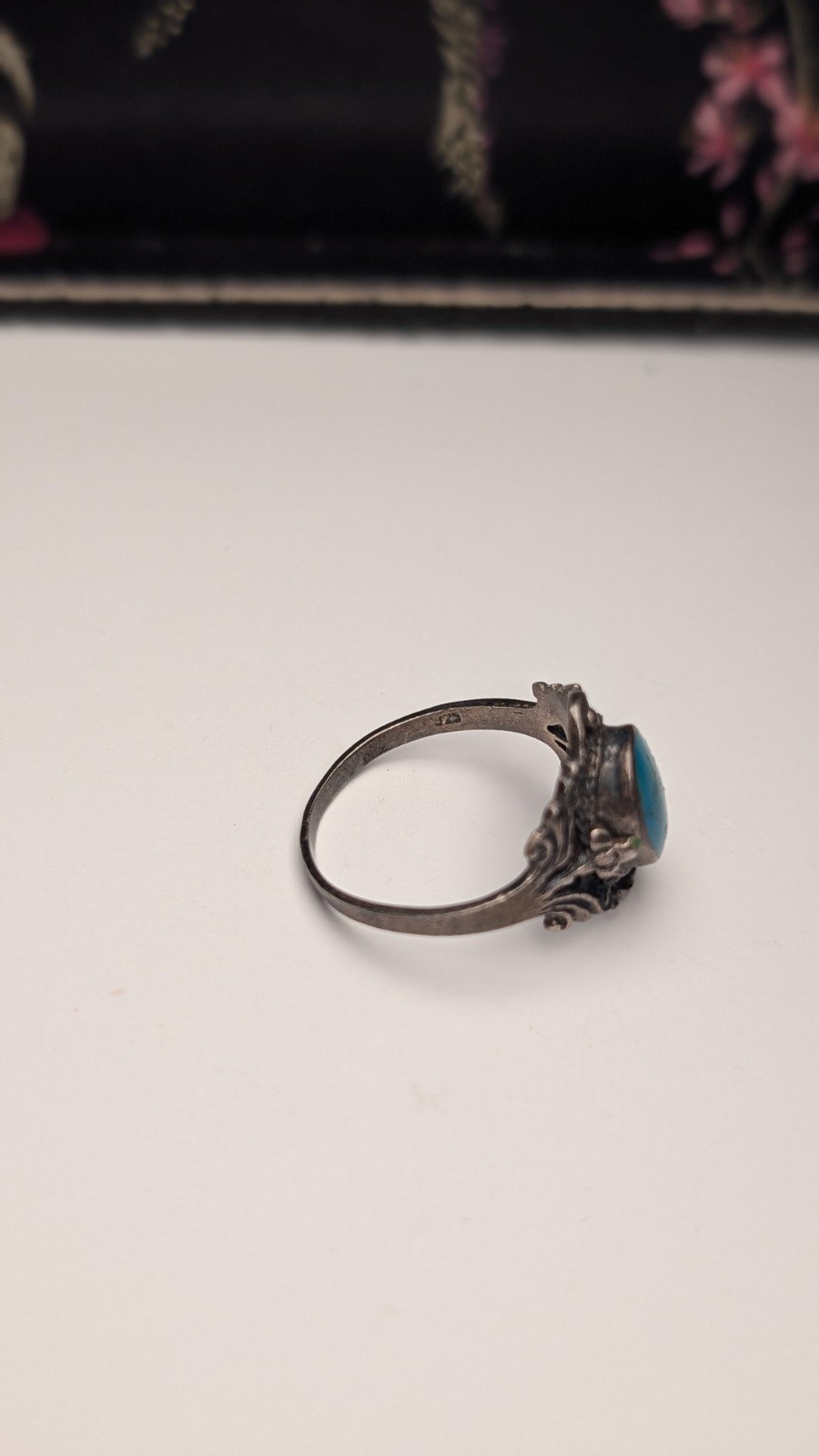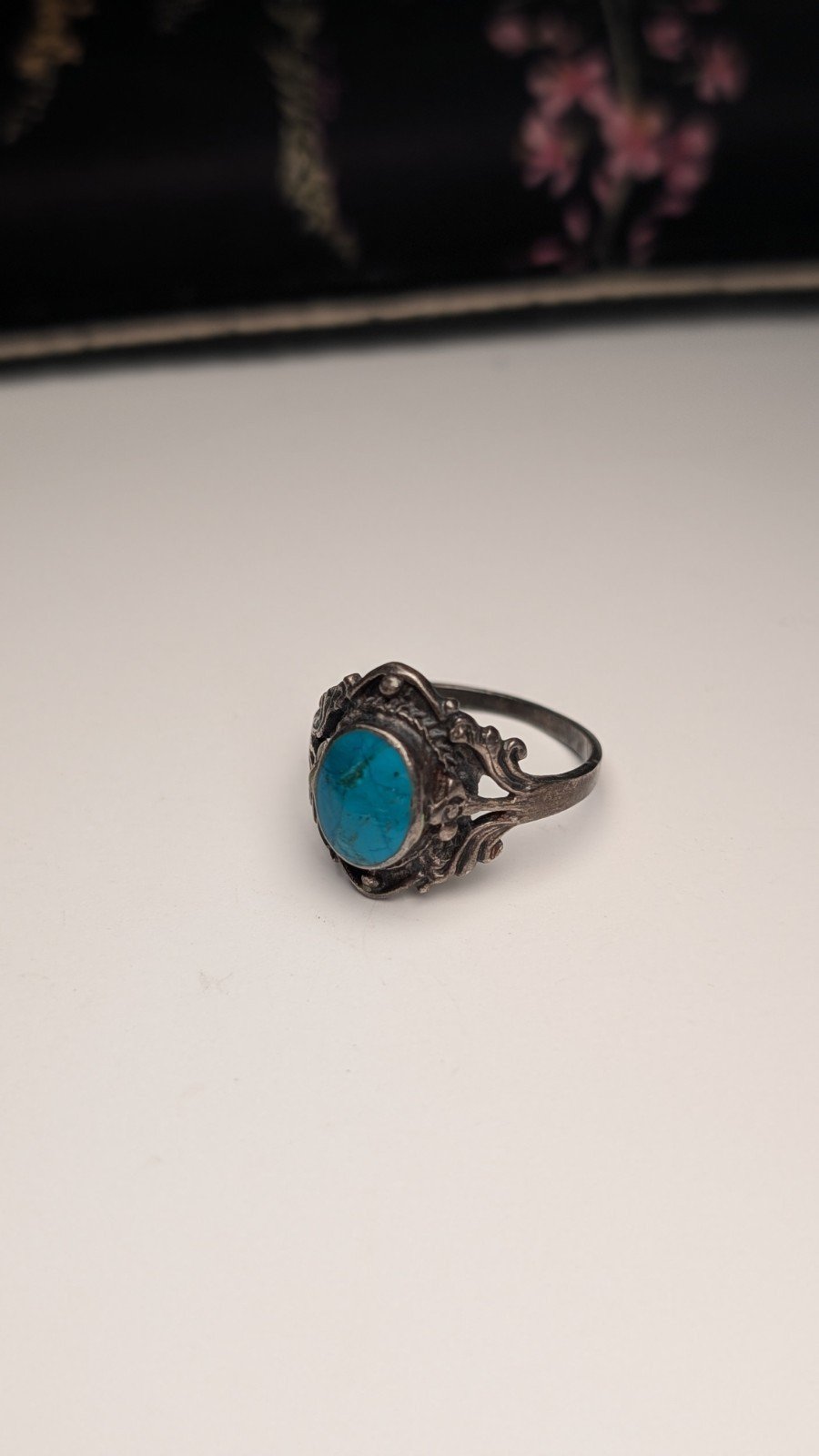 Vintage Sterling Silver Blue Turquoise Gemstone Ring | Size R 1/2 | 925 Silver