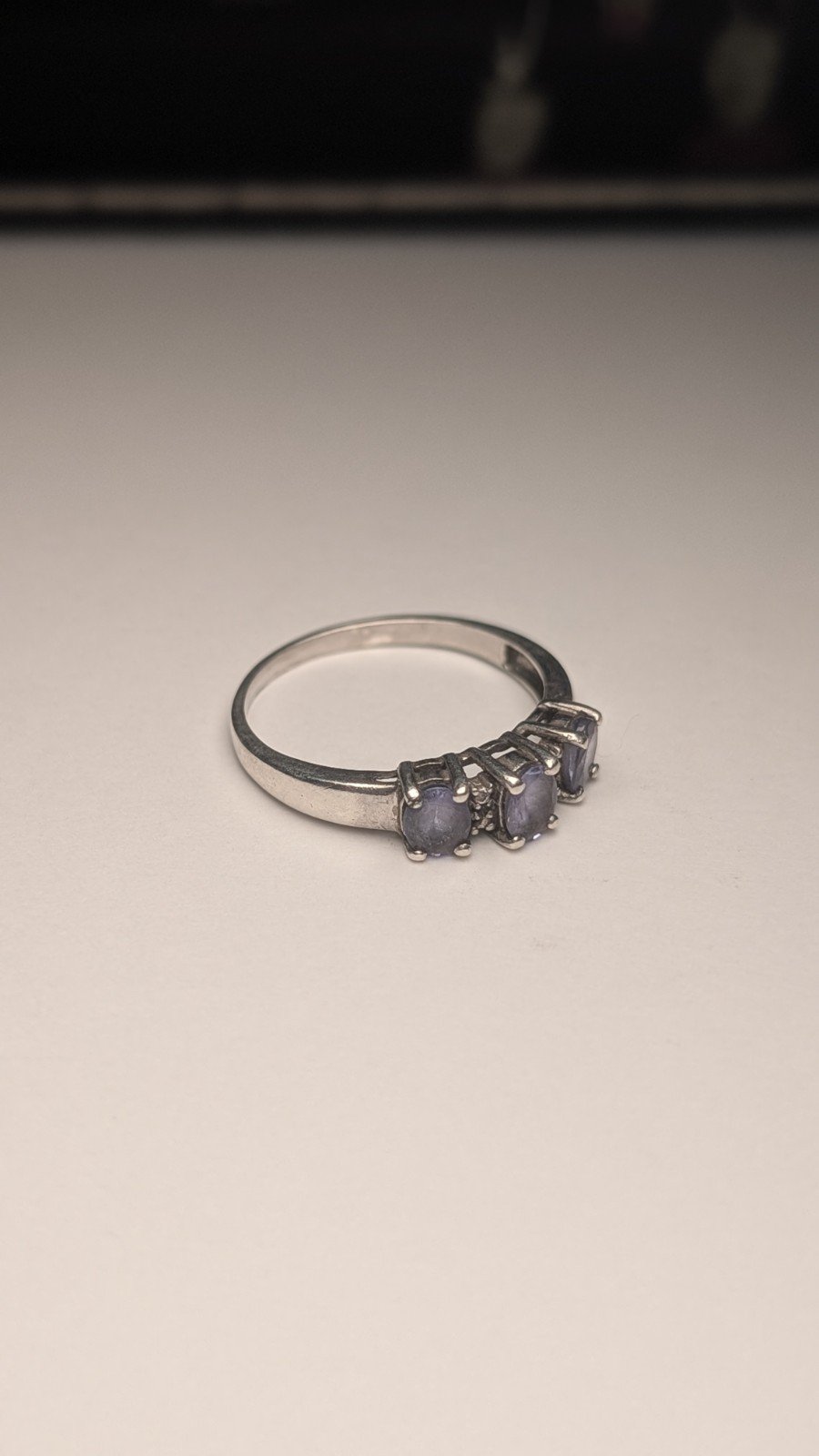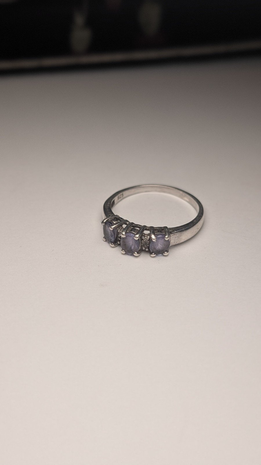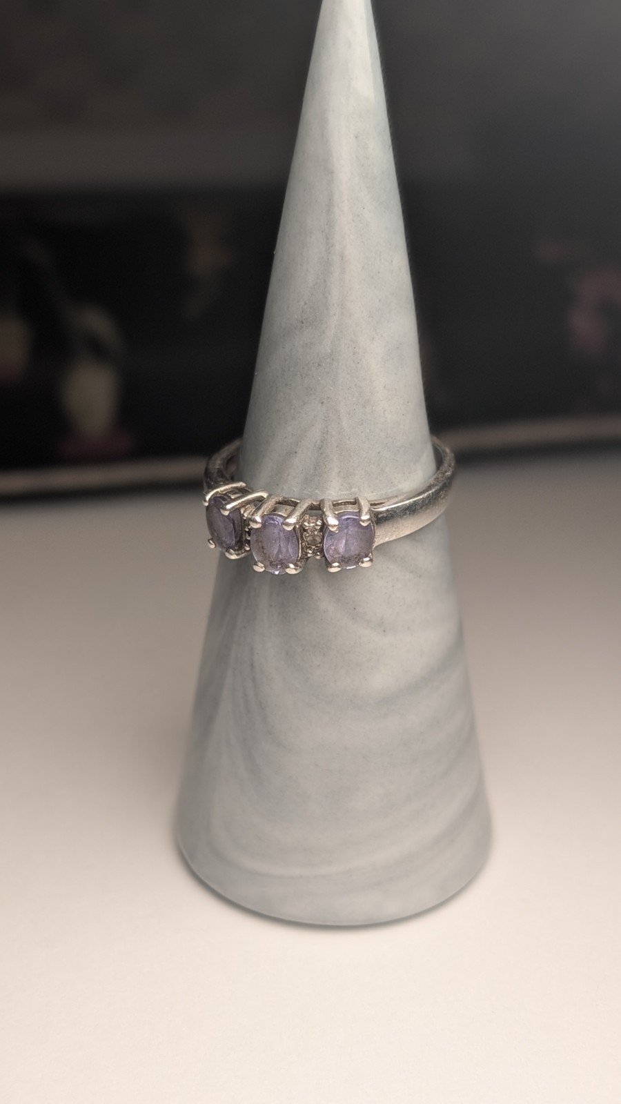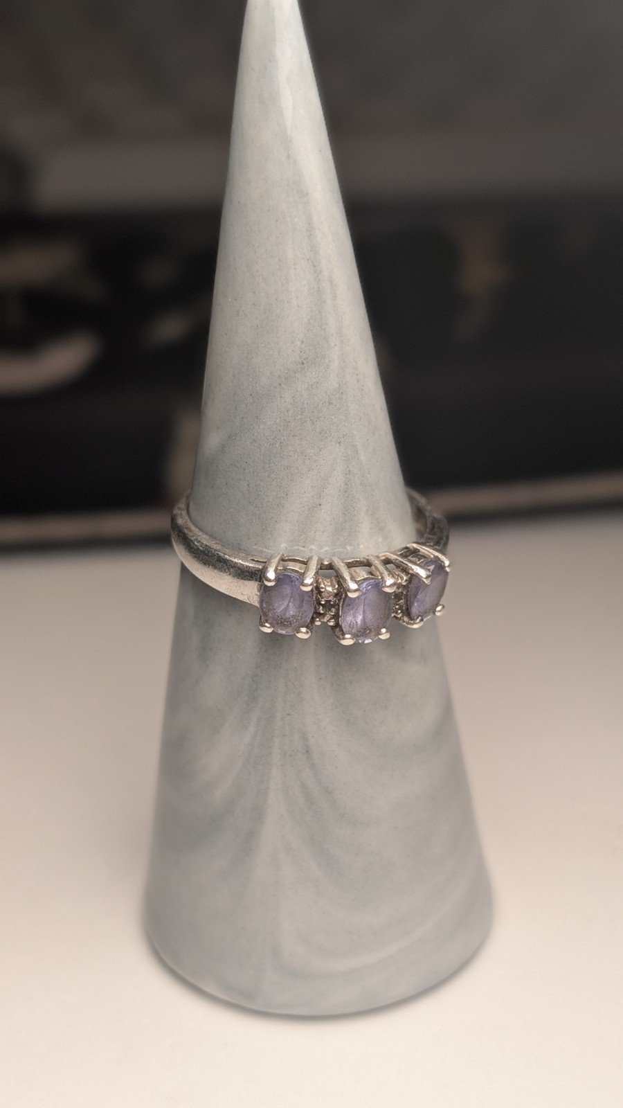 Vintage Sterling Silver Blue-Violet Iolite Three-Stone Ring | Size P | 925
