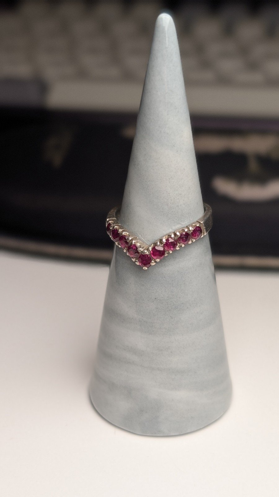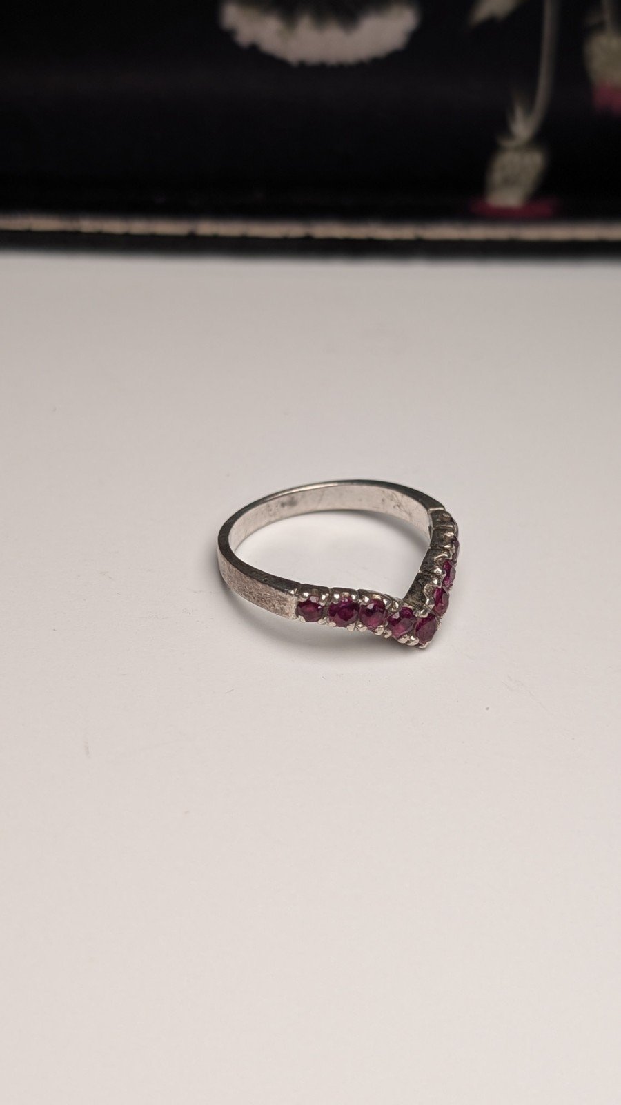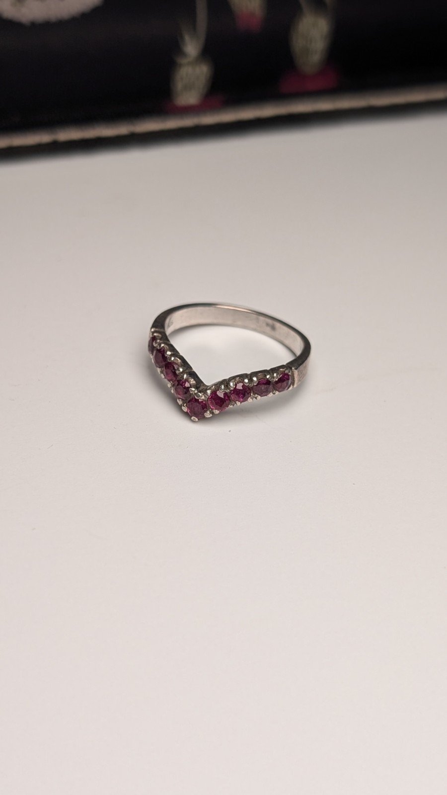 Vintage Sterling Silver Chevron Wishbone Red Ruby Ring | Size L 1/2 | 925 Silver