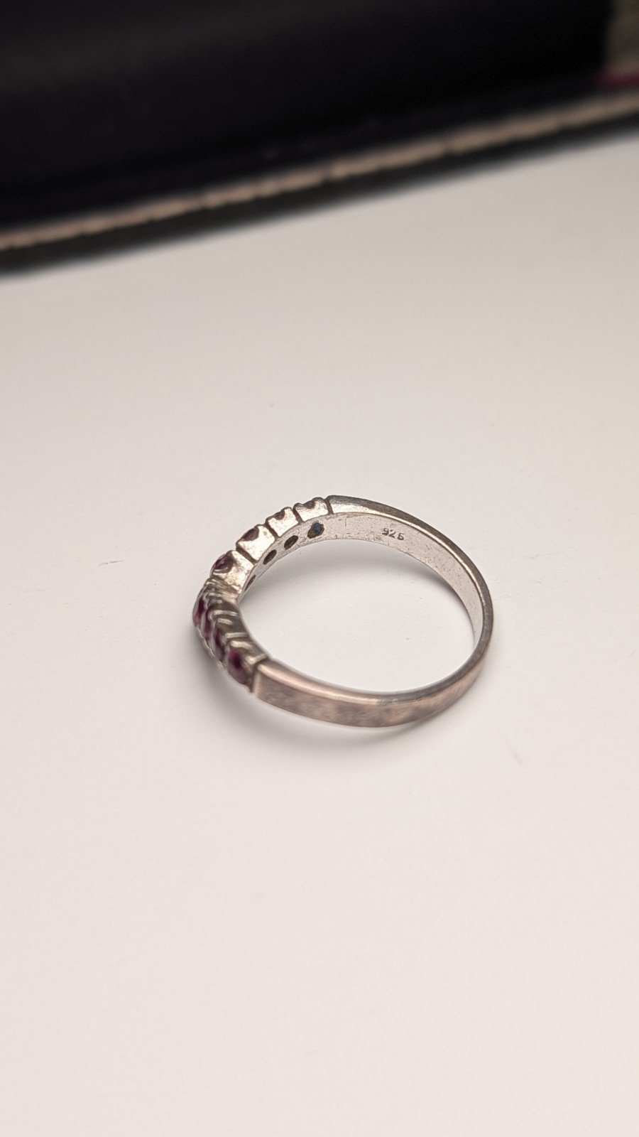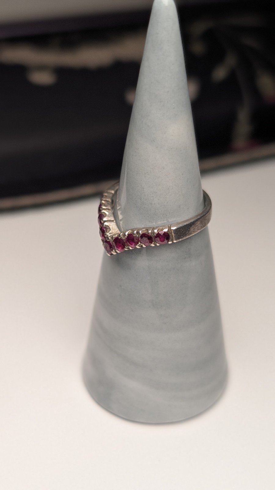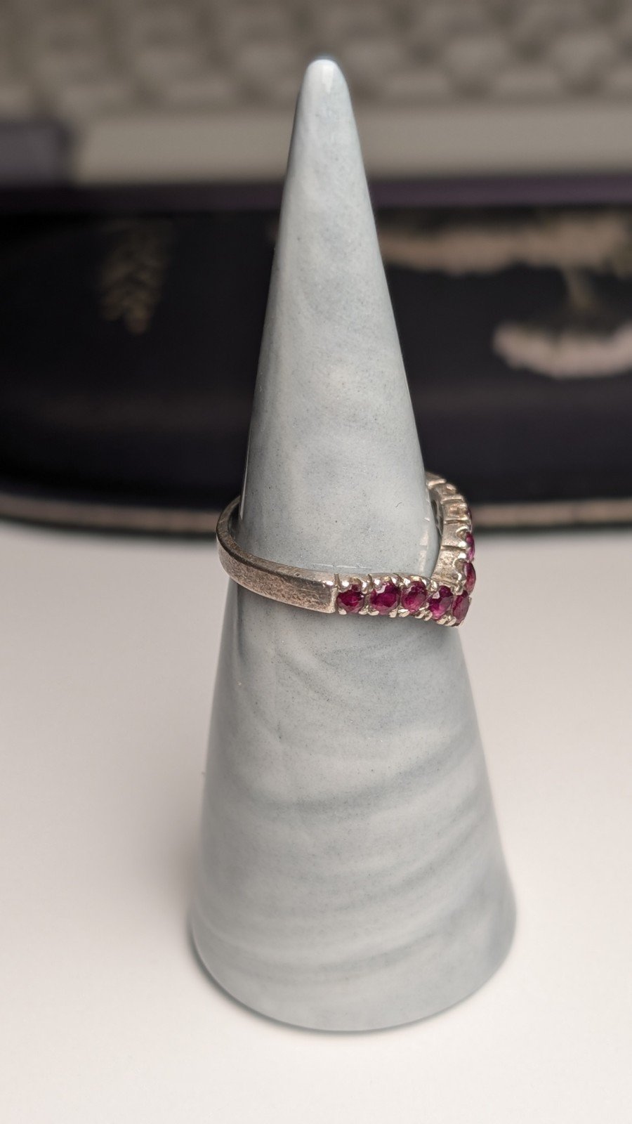 Vintage Sterling Silver Chevron Wishbone Red Ruby Ring | Size L 1/2 | 925 Silver