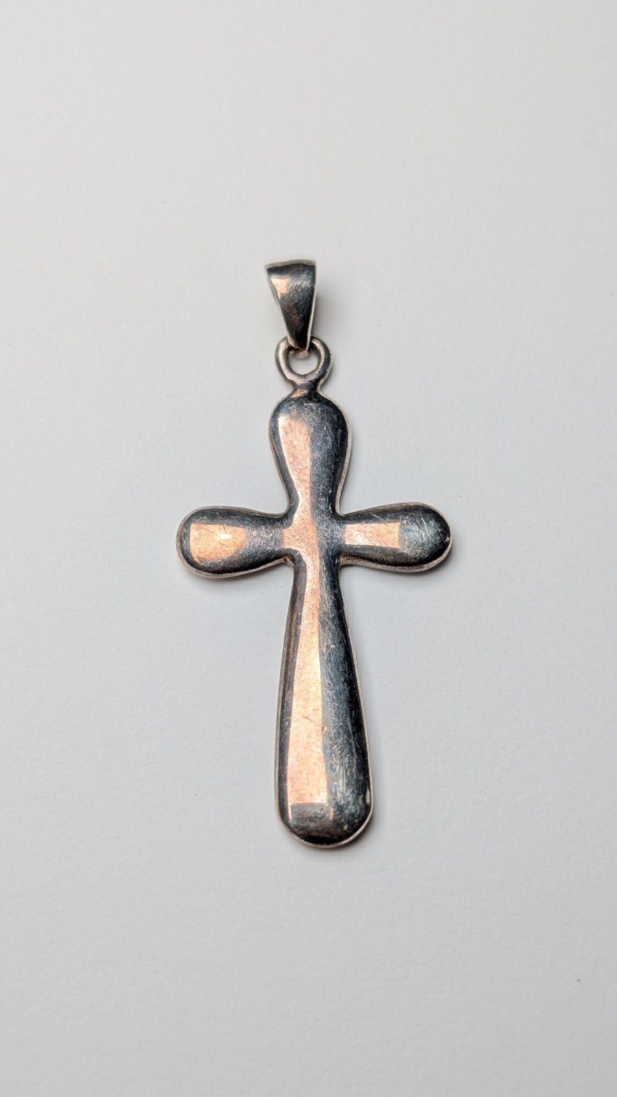 This vintage sterling silver Christian cross pendant is a beautifully crafted piece of fine jewellery. The pendant features a cross shape, making it a meaningful and classic addition to any necklace.