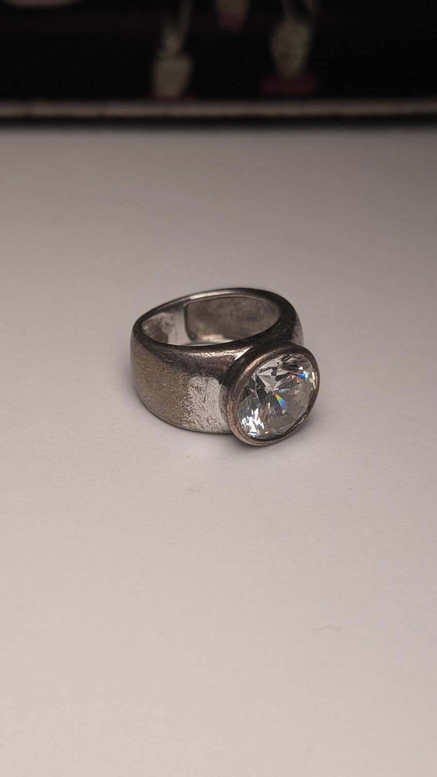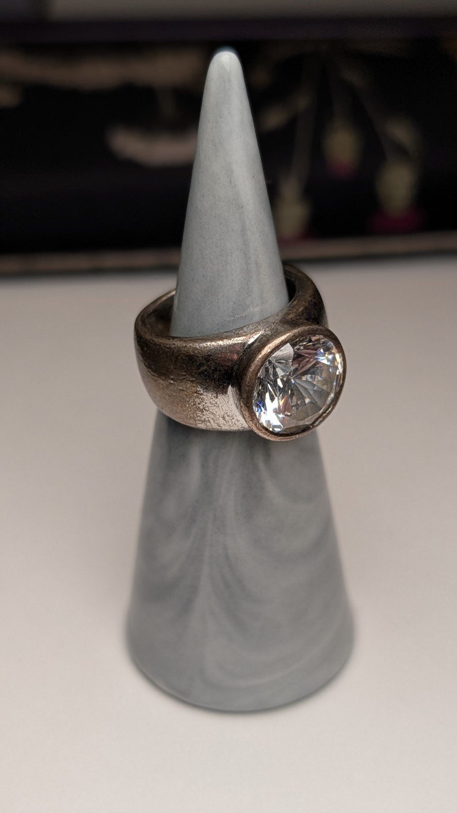 Be the first to review “Vintage Sterling Silver Chunky Clear Gemstone Ring | J 1/2 | 925 Silver”