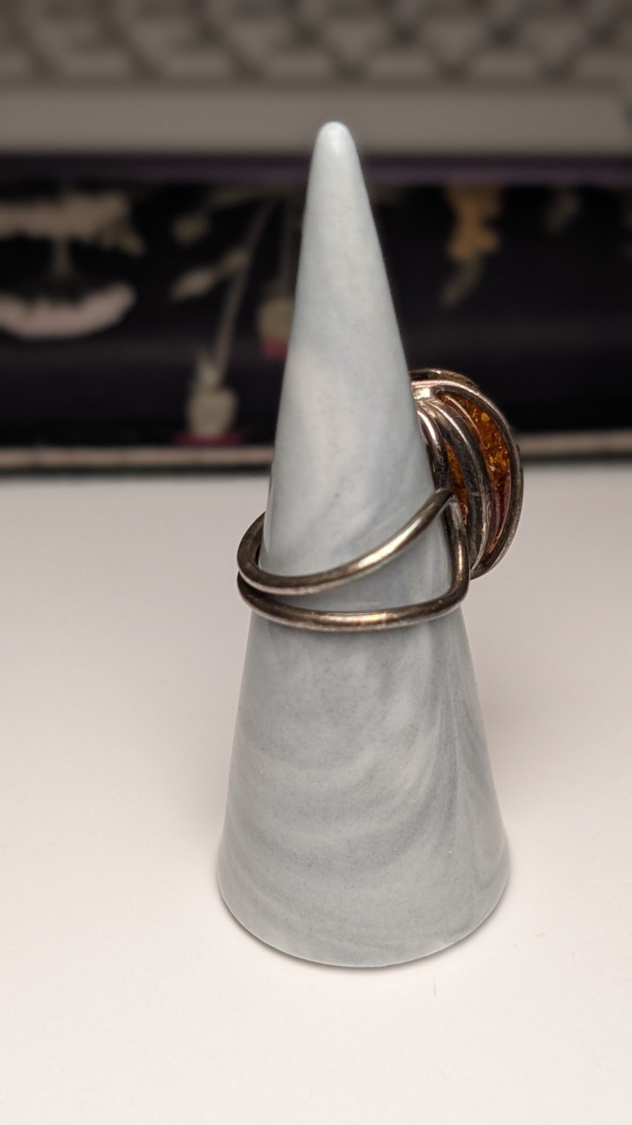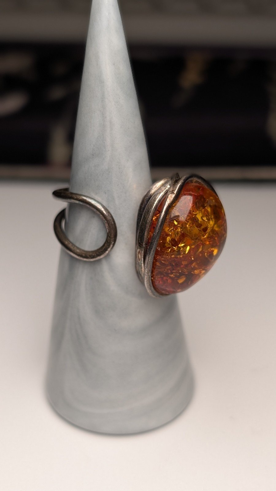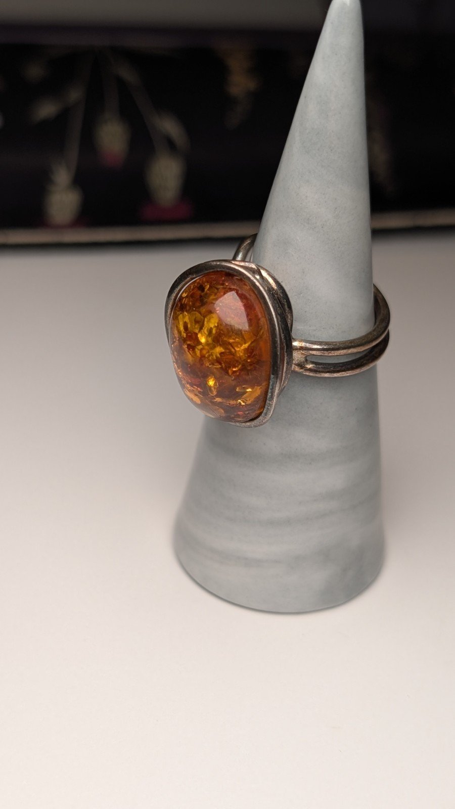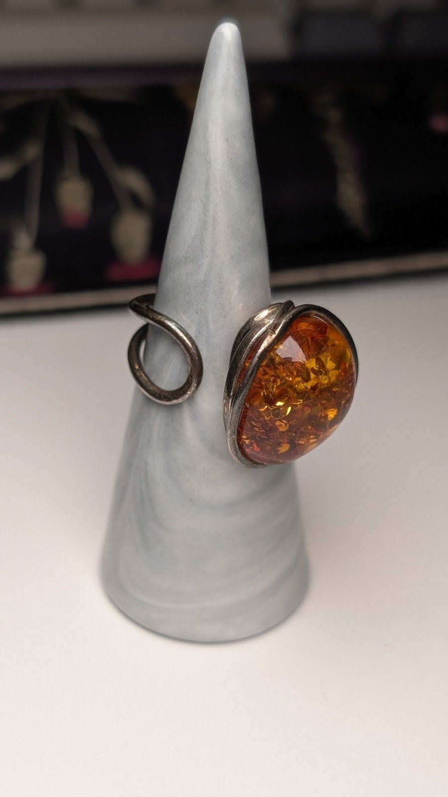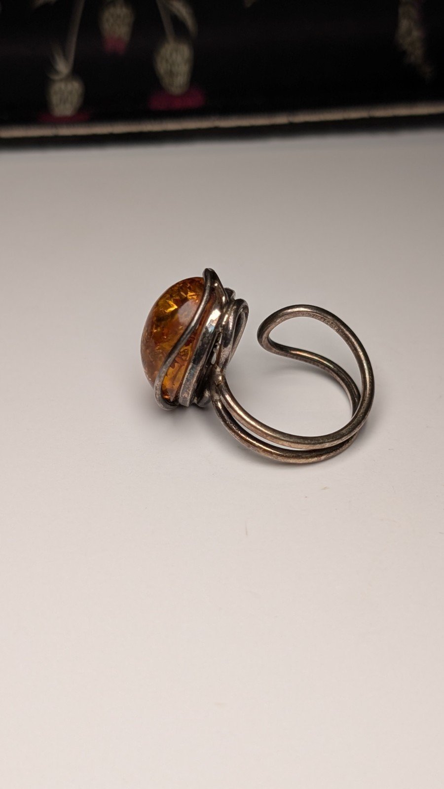 Vintage Sterling Silver Chunky Orange Amber Gemstone Ring | Size O | 925 Silver