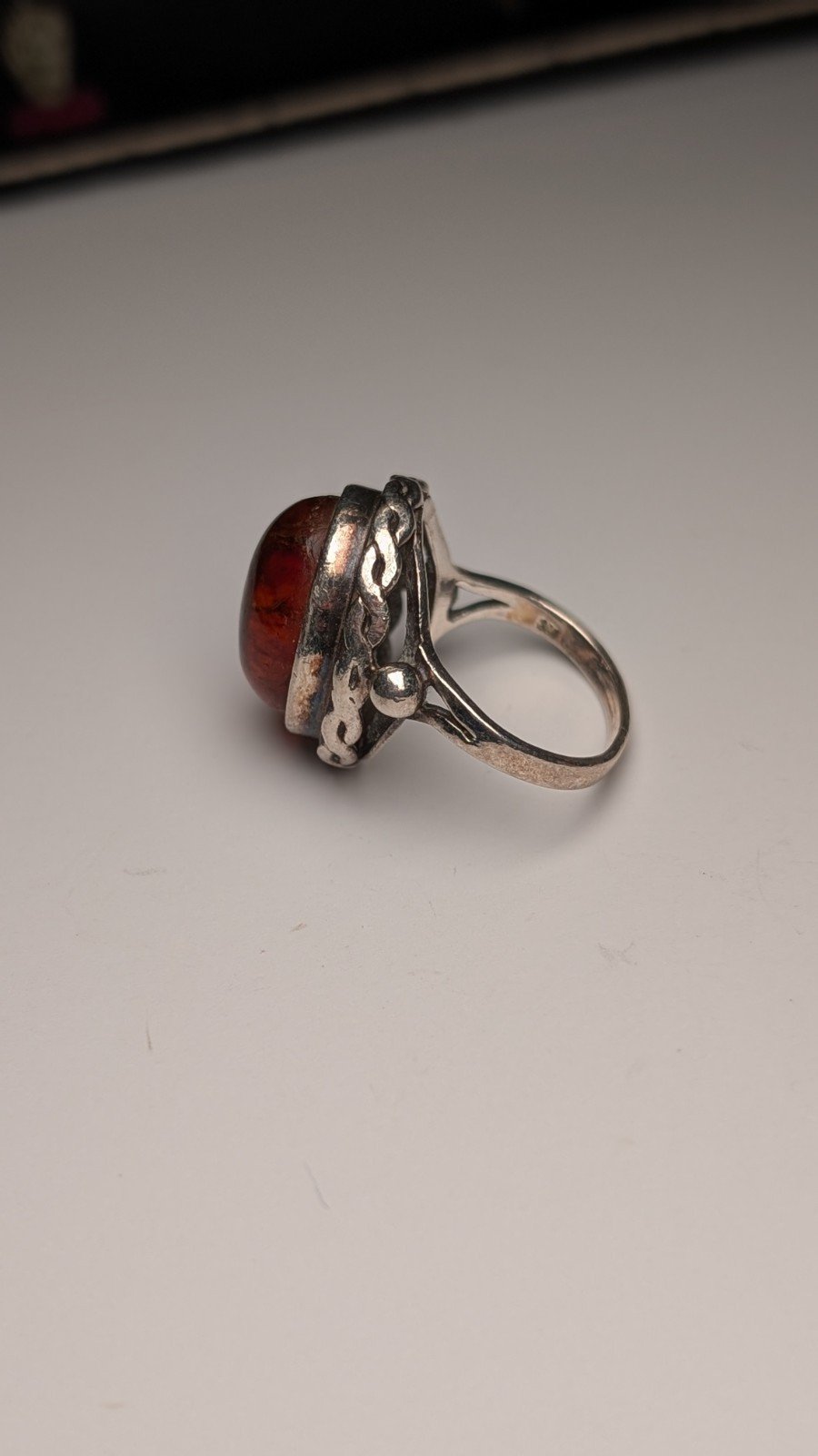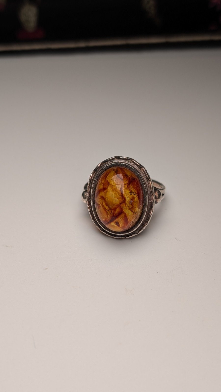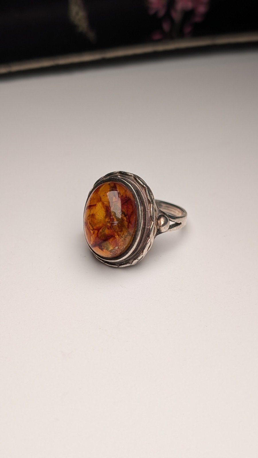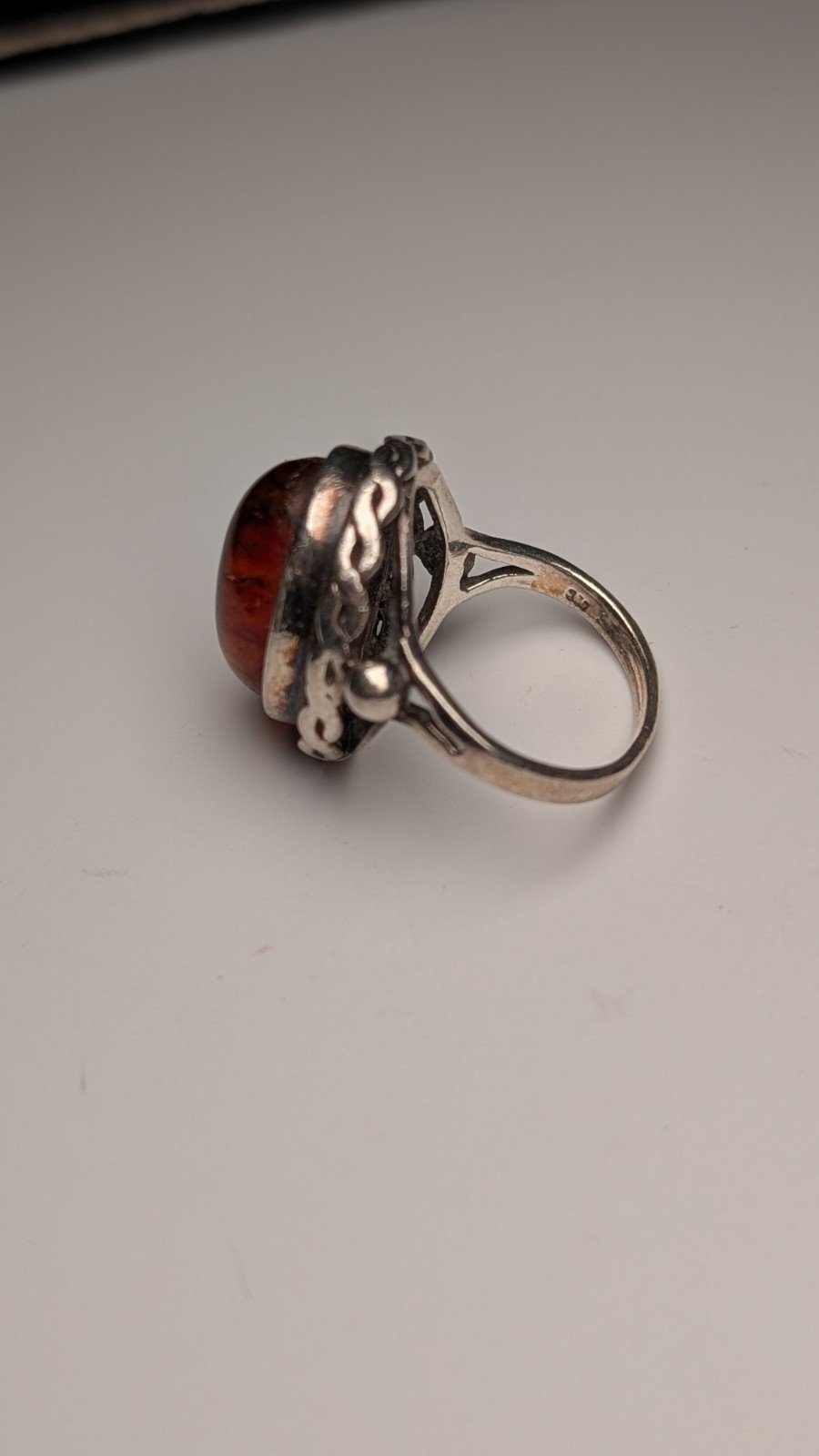 Vintage Sterling Silver Chunky Orange Amber Ring | Size N 1/2 | 925 Silver