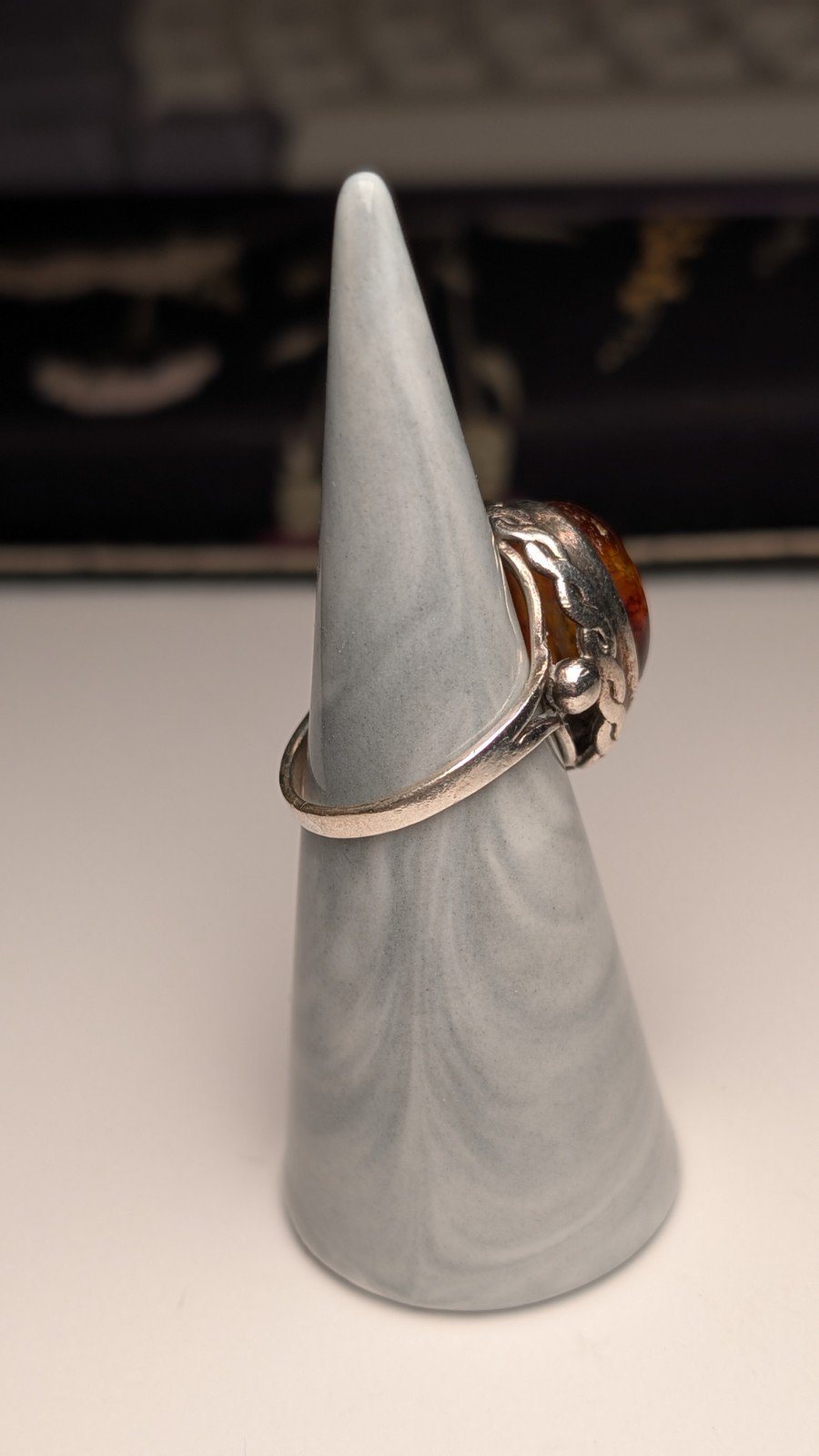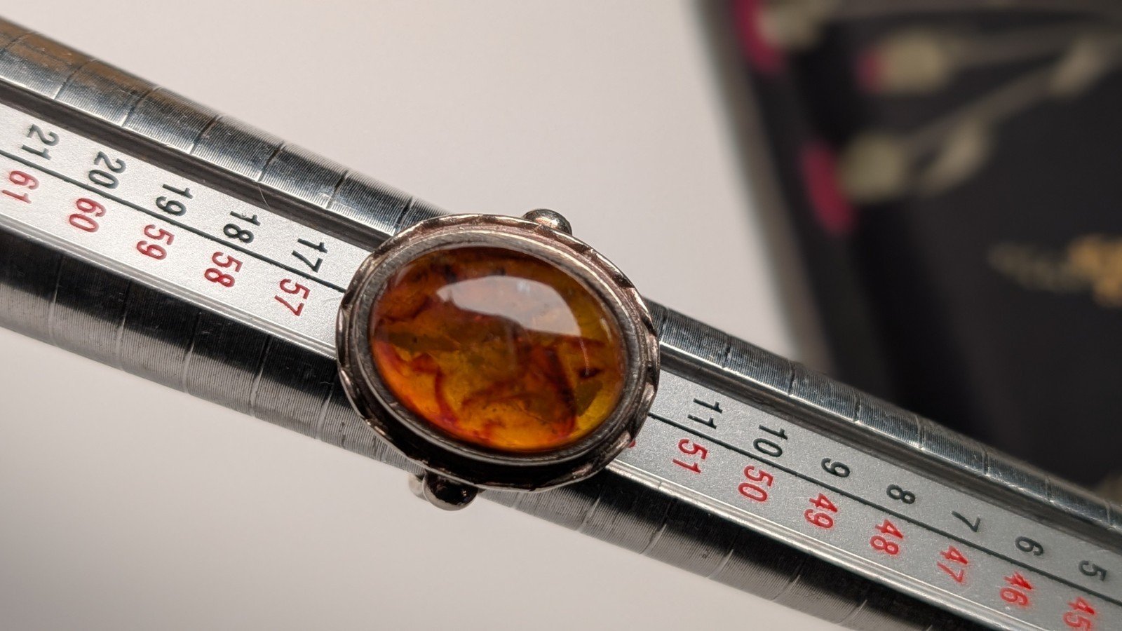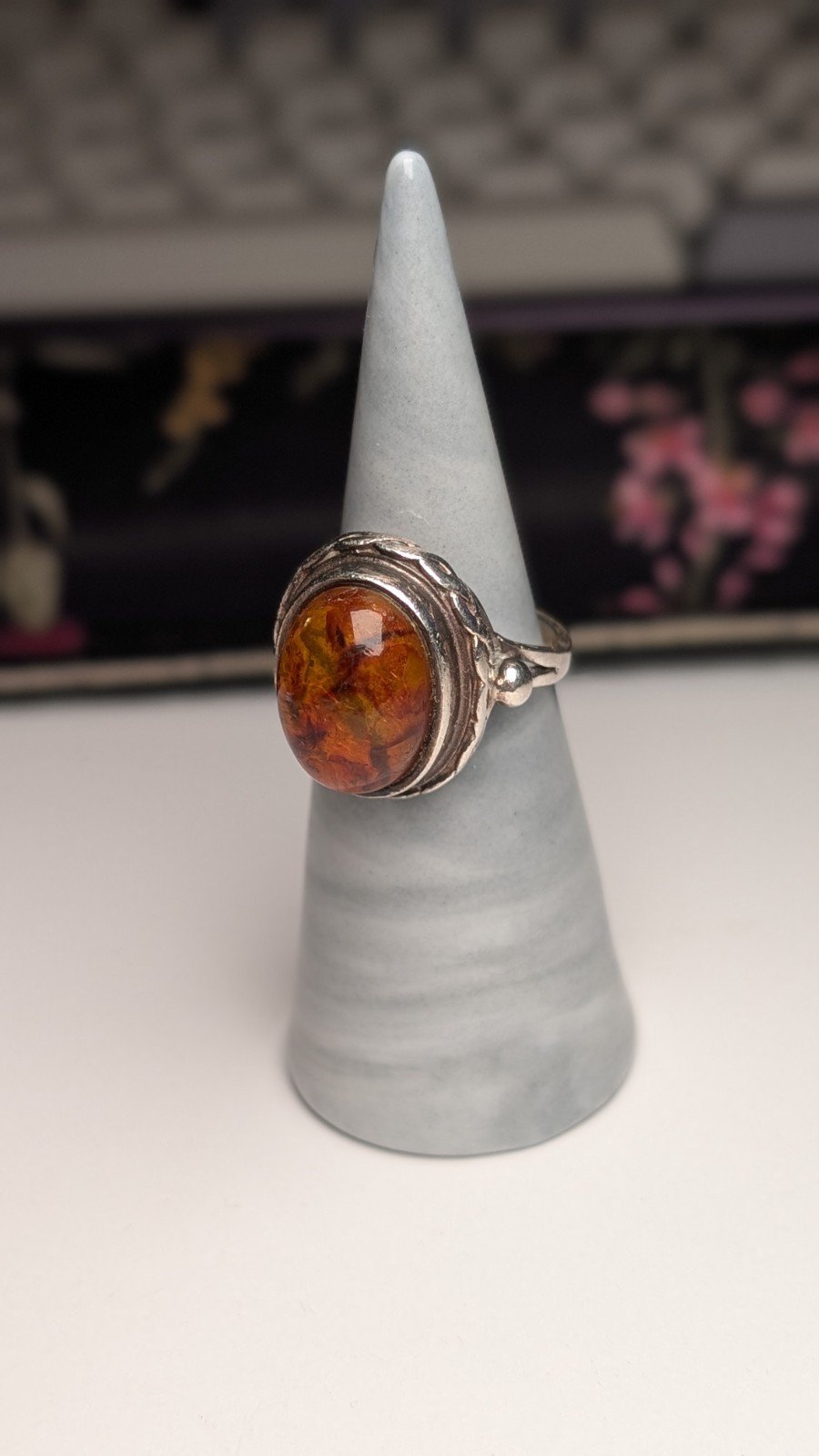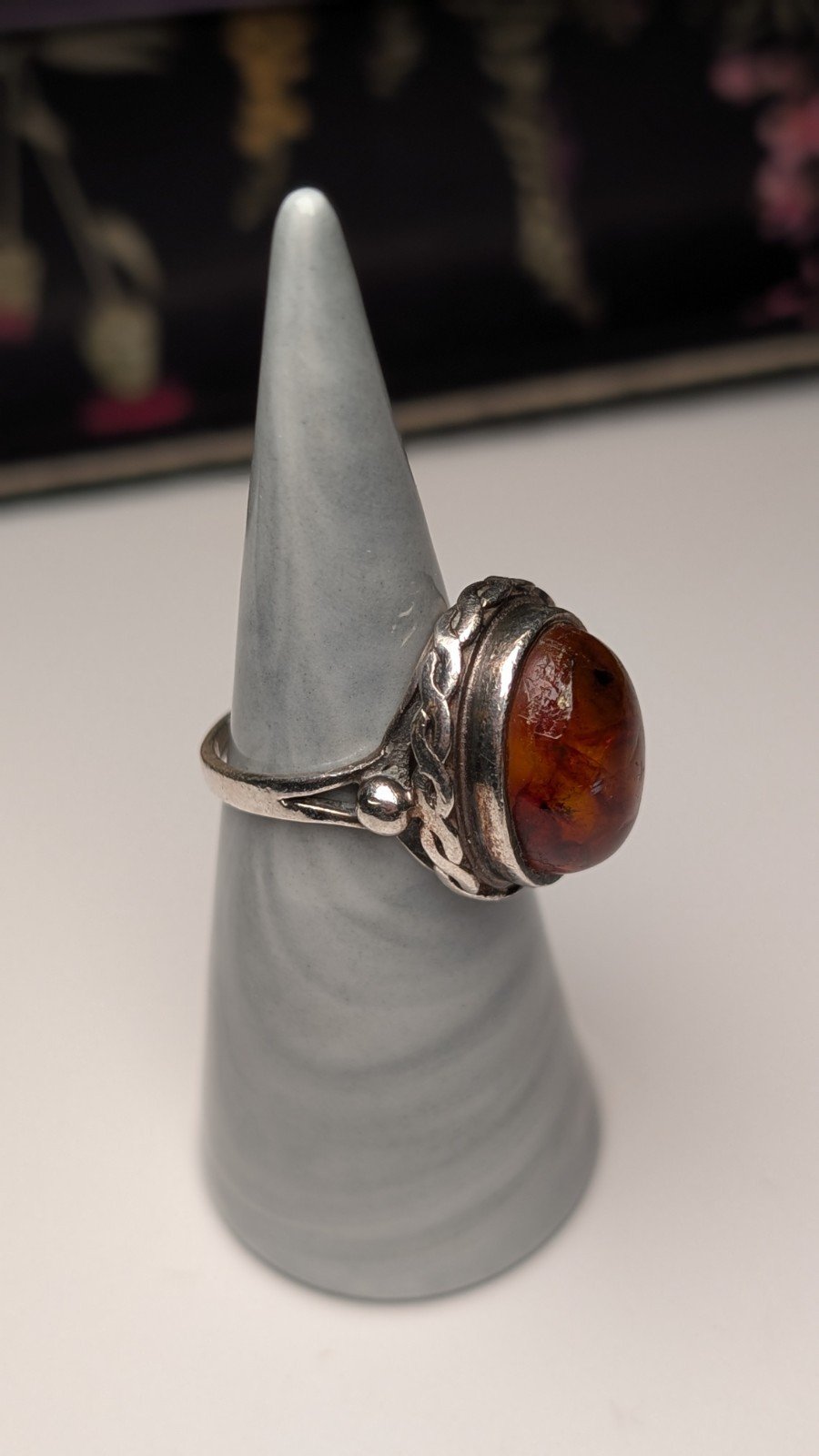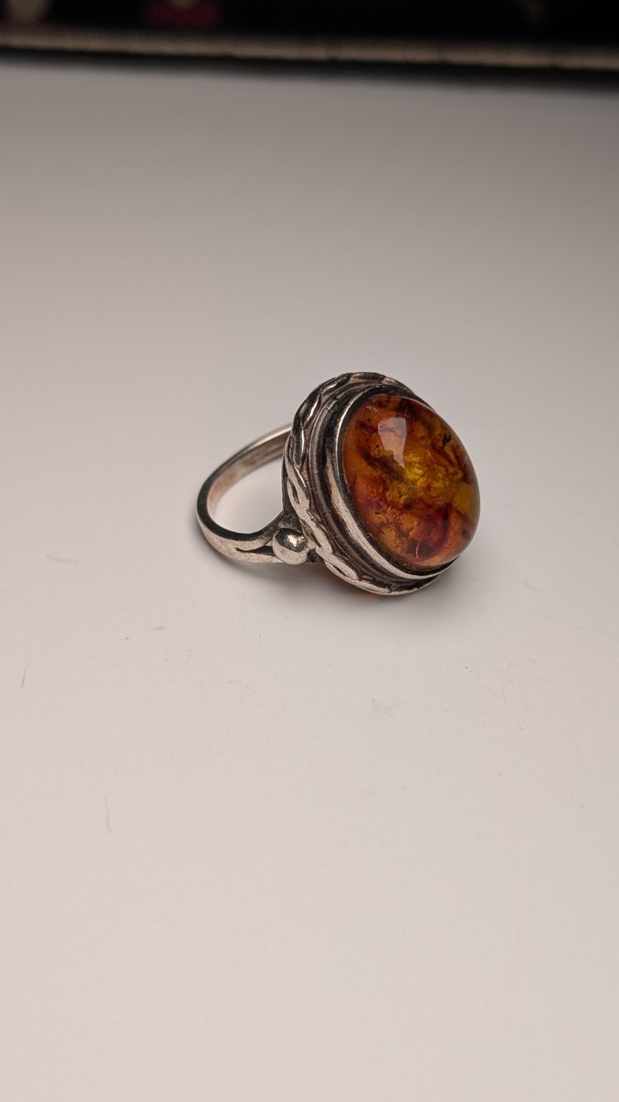Vintage Sterling Silver Chunky Orange Amber Ring | Size N 1/2 | 925 Silver